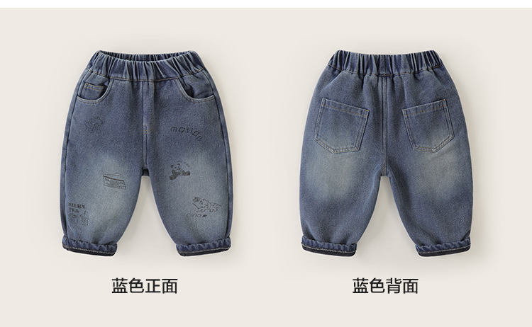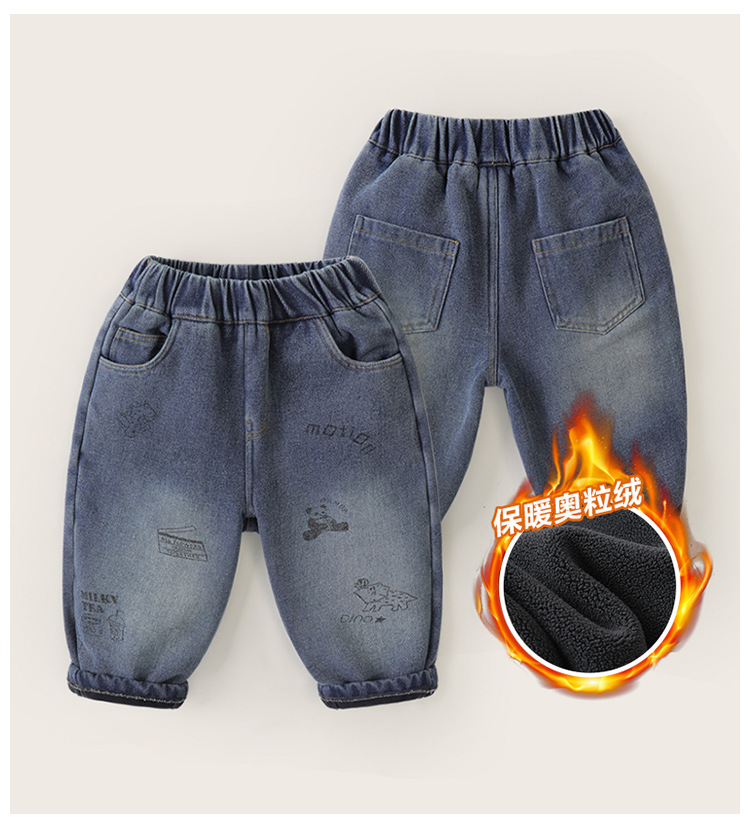 소년의 올림픽 벨벳 두꺼운 따뜻한 데님 긴 바지 겨울 가을 및 겨울 어린이 착용 아기의 면화 바지 겨울 착용스토어 가기