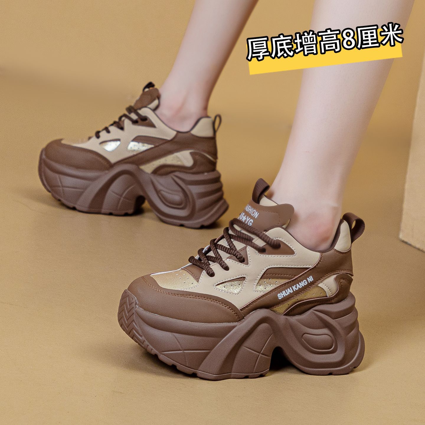 가을 2024 새로운 토레 신발 증가 두꺼운 단독 캐주얼 신발 패션 웨지 작은 싱글 신발 학생 신발 여성 신발스토어 가기