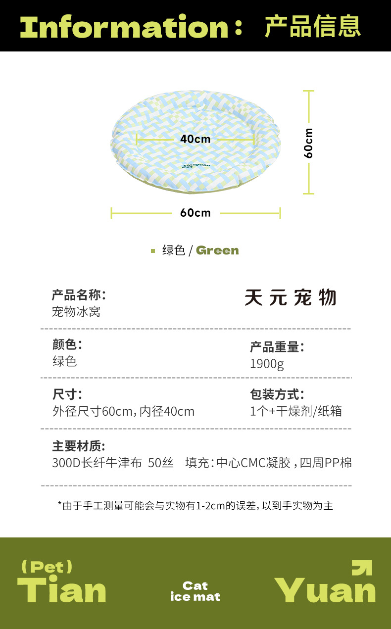 천원펫 기하학적 얼음 둥지 고양이 둥지 얼음 매트 여름 냉각 고양이 원형 둥지 수면용 냉매트 애완용품스토어 가기