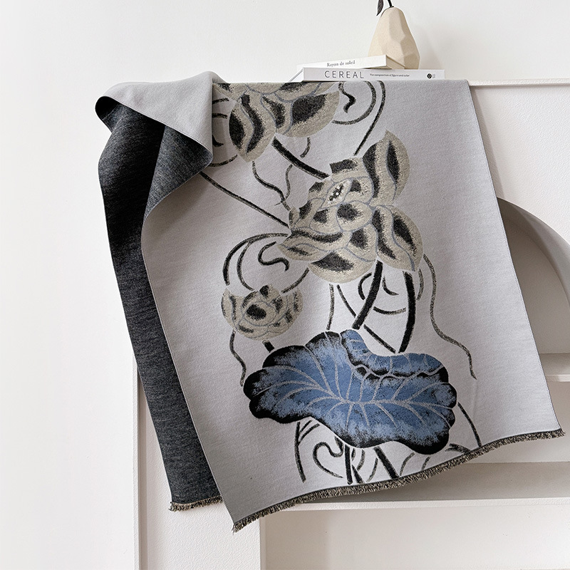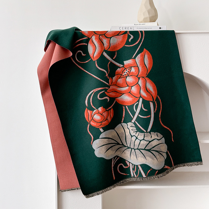 2024 새로운 캐시미어 스카프 연꽃 색상 대비 가을과 겨울 양면 캐시미어 스카프 겨울 높은 수준의 따뜻한 감각