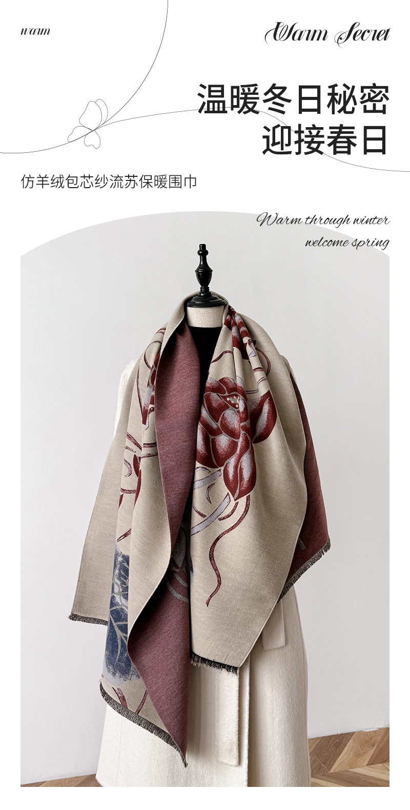 2024 새로운 캐시미어 스카프 연꽃 색상 대비 가을과 겨울 양면 캐시미어 스카프 겨울 높은 수준의 따뜻한 감각스토어 가기
