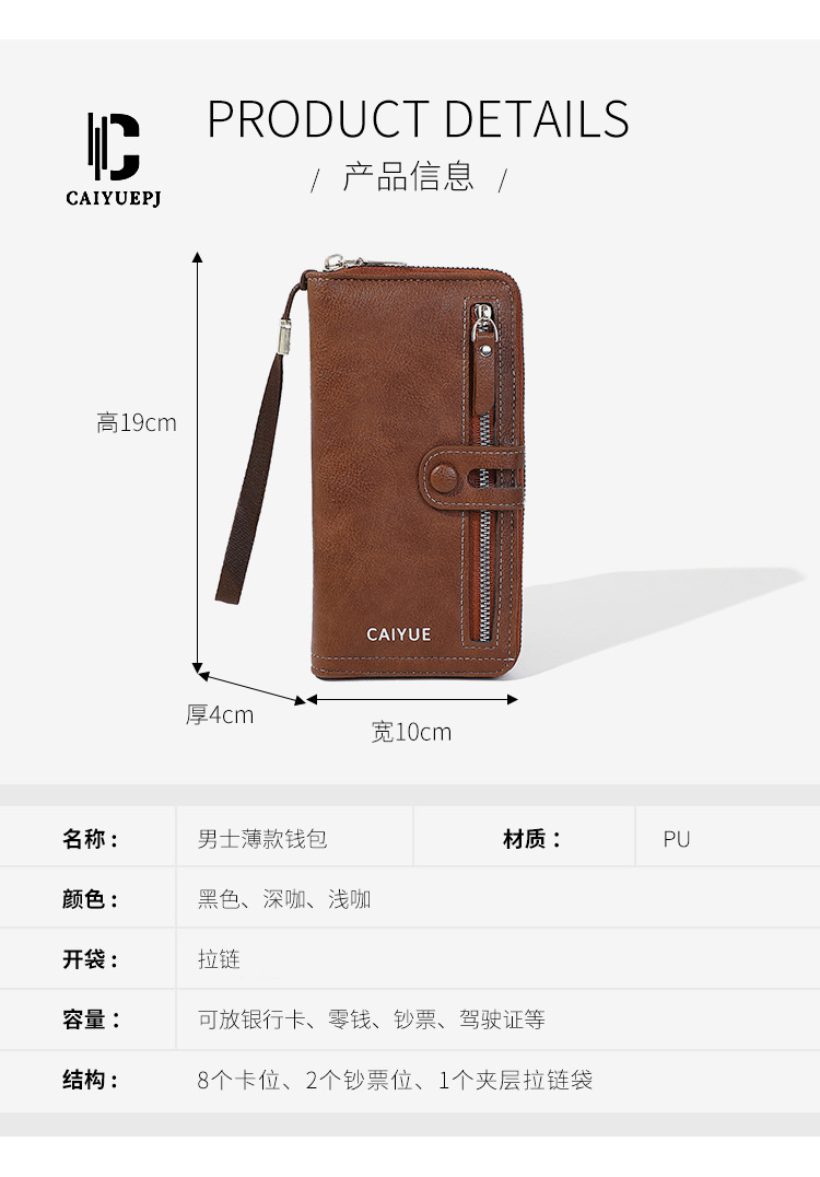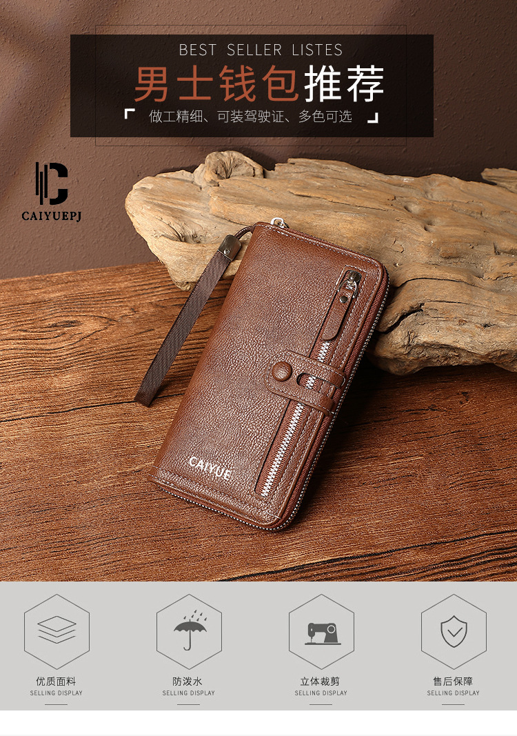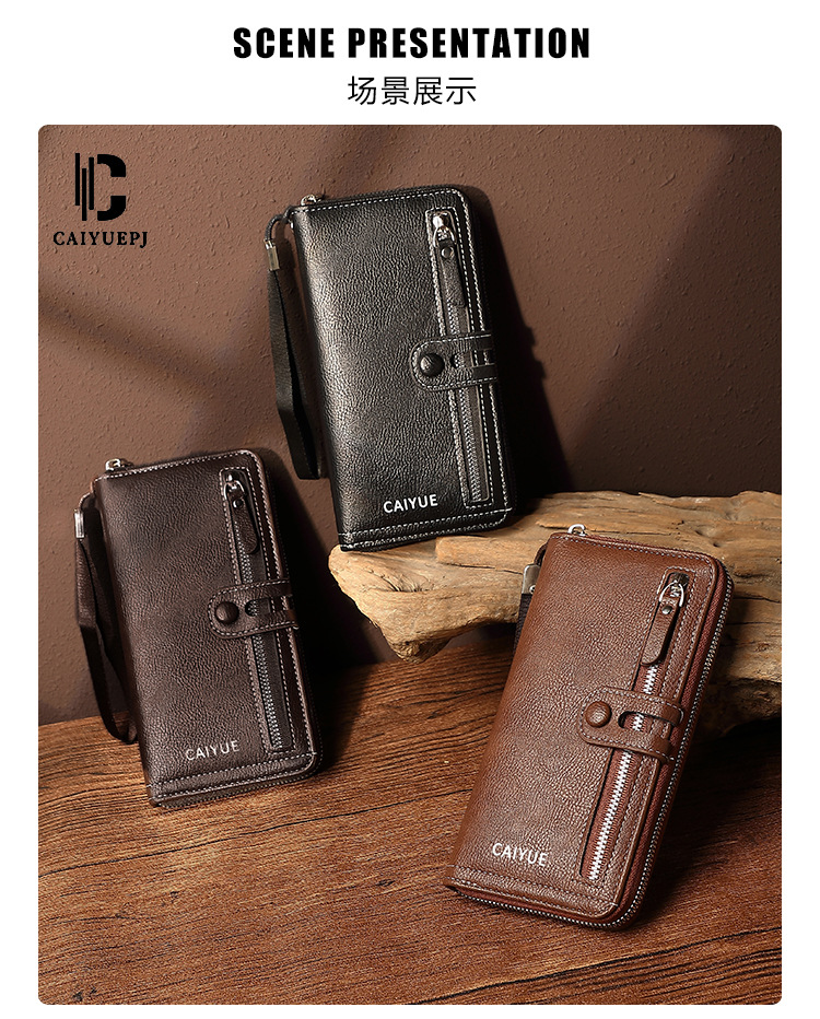 새로운 국경 긴 남성 지갑 멀티 카드 캐주얼 지퍼 지갑 청소년 대용량 클러치 동전 지갑