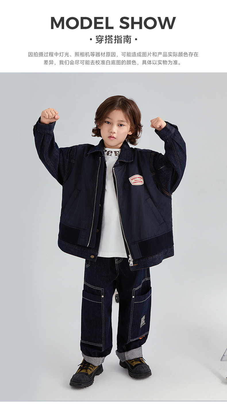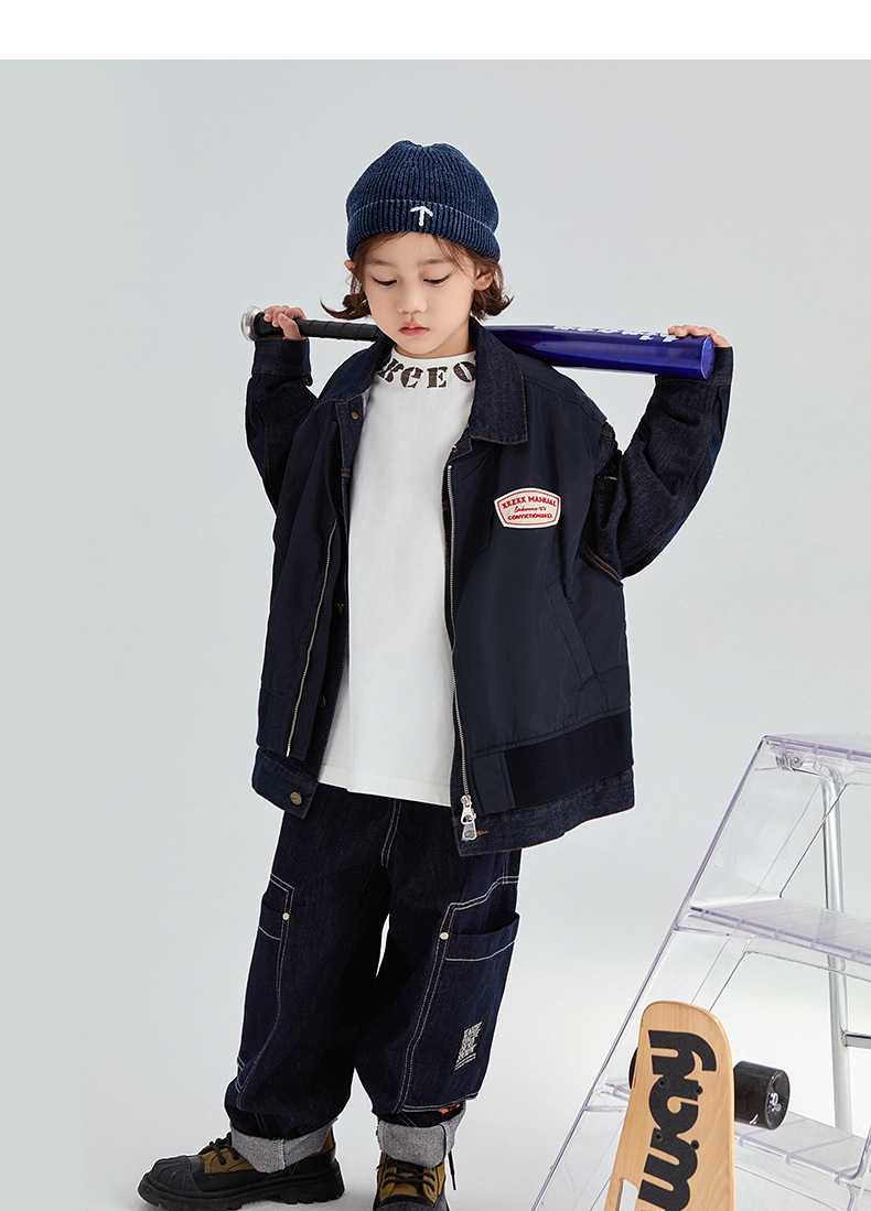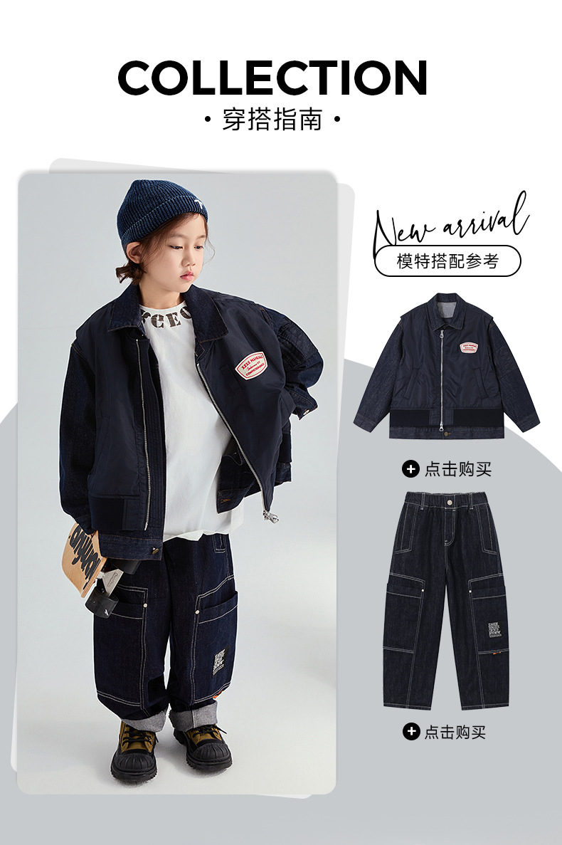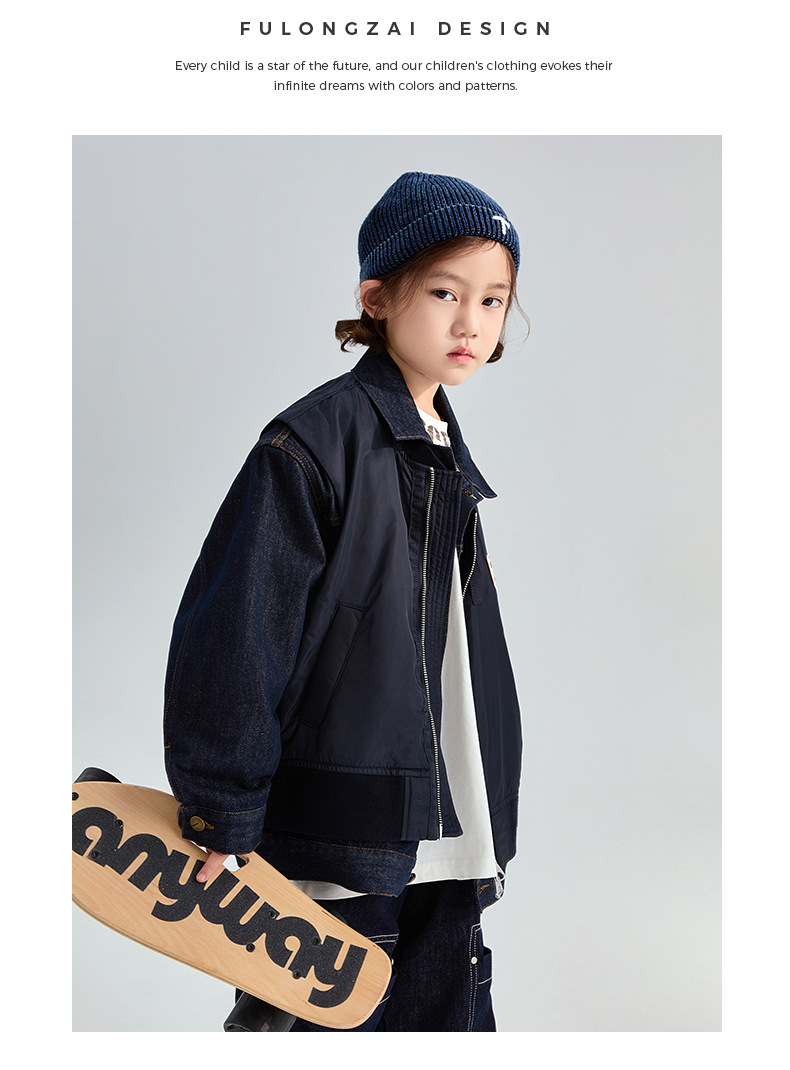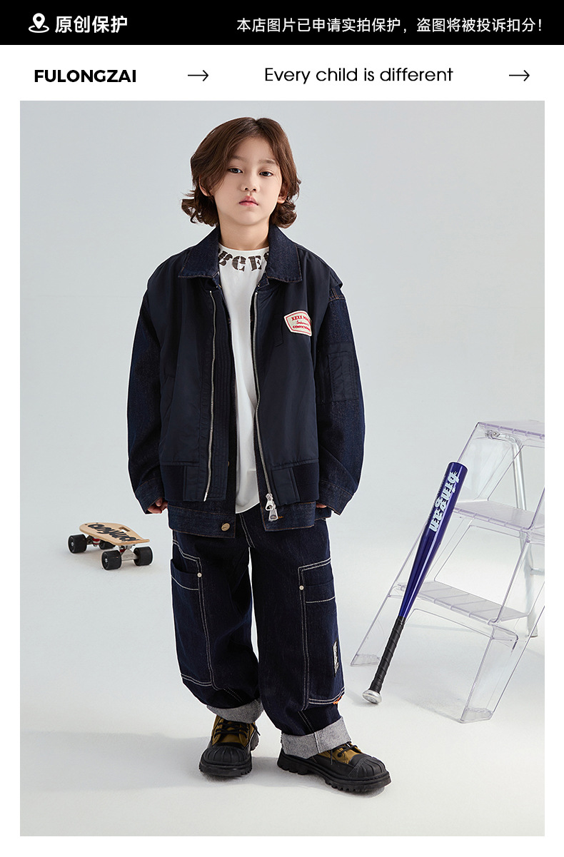 FULONGZAI 부모-어린이 아동복 2024 가을 및 겨울 소년과 소녀 새로운 대형 어린이 느슨한 어린이 데님 코트스토어 가기