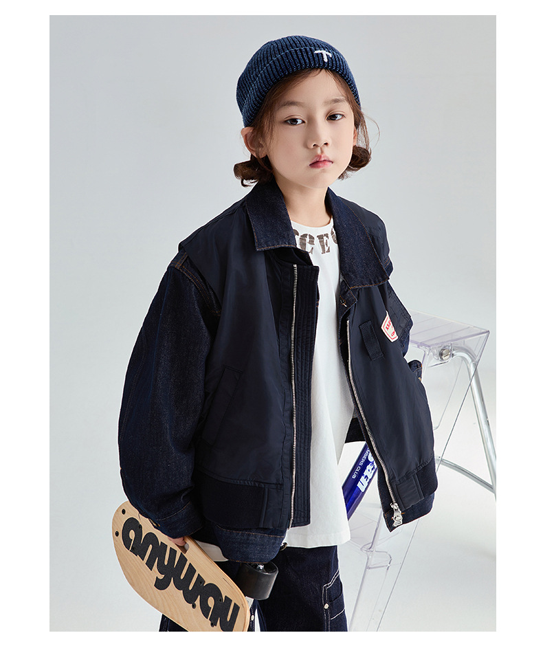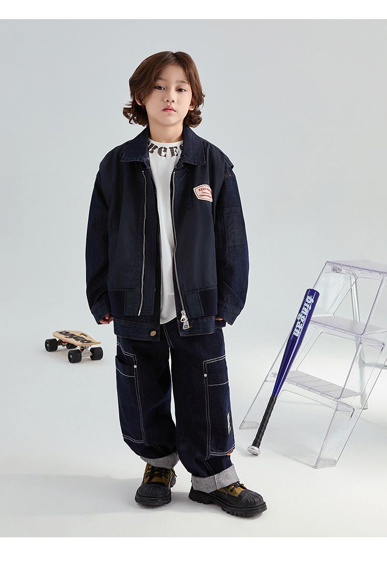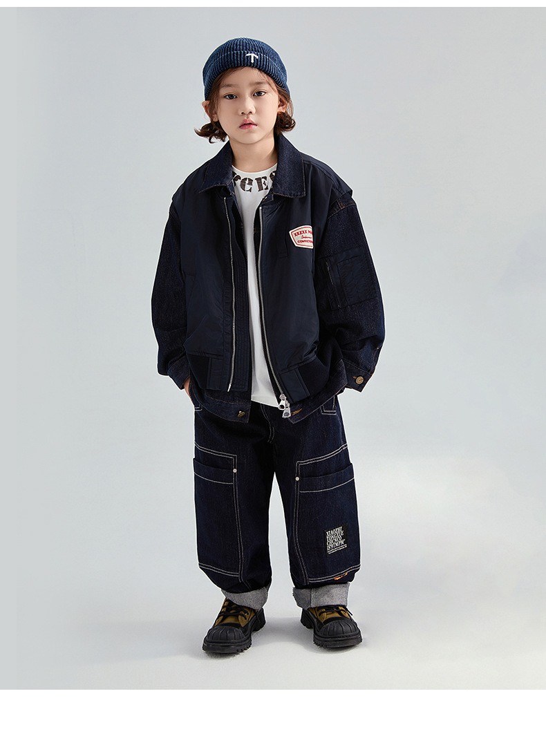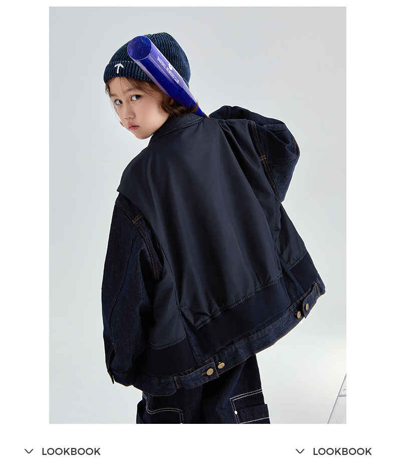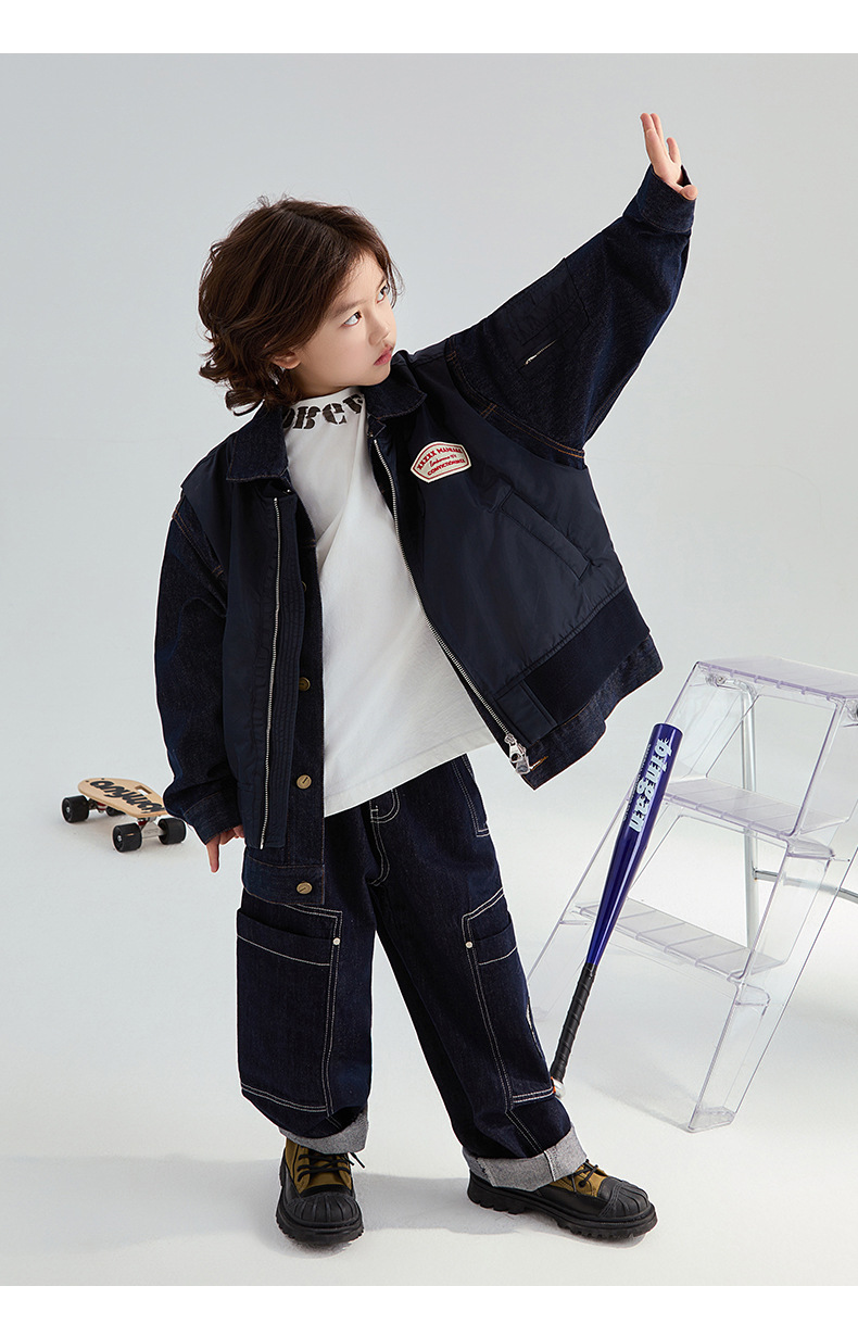 FULONGZAI 부모-어린이 아동복 2024 가을 및 겨울 소년과 소녀 새로운 대형 어린이 느슨한 어린이 데님 코트스토어 가기