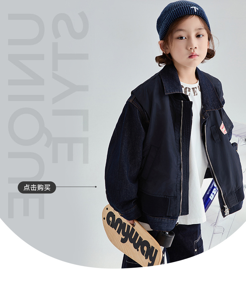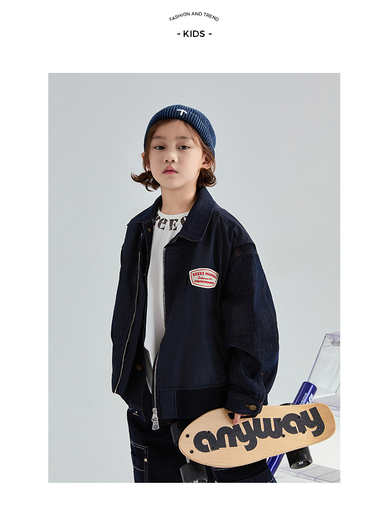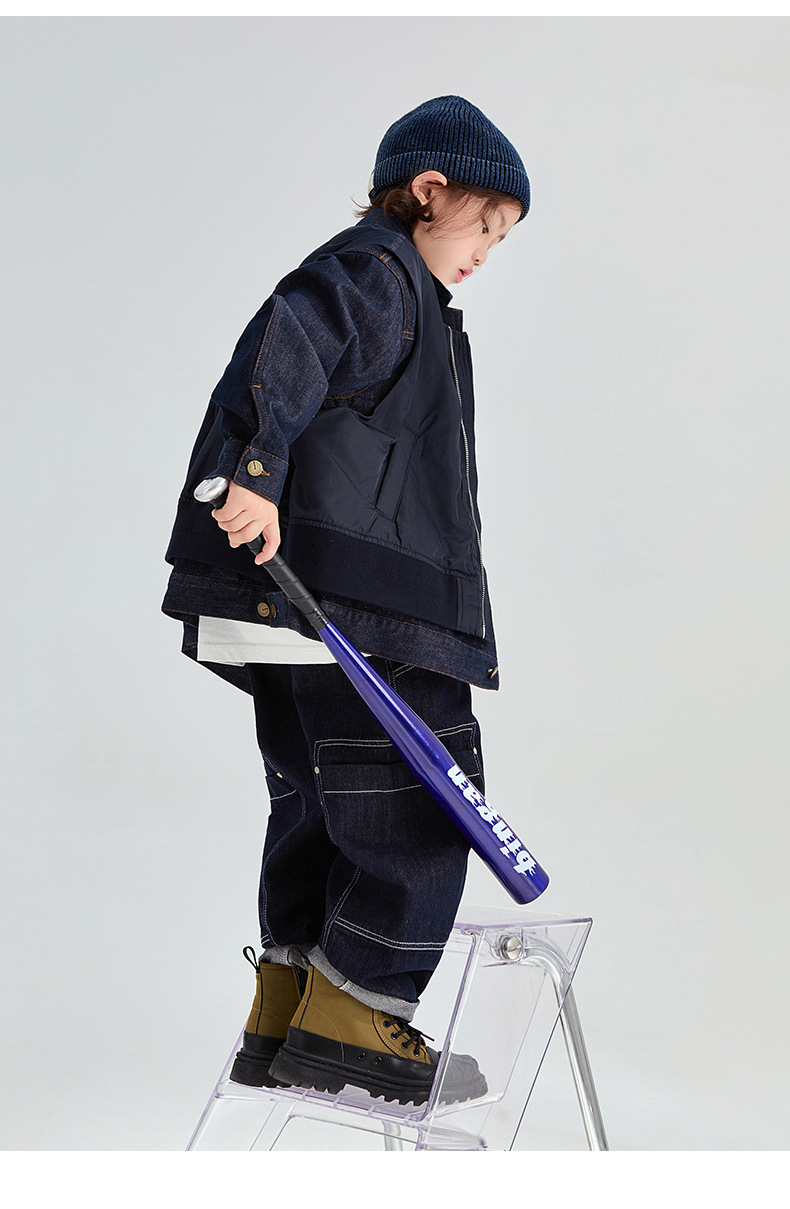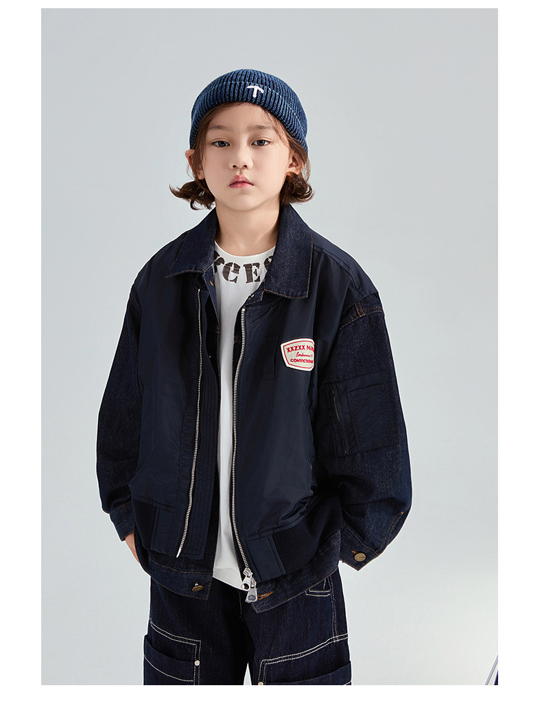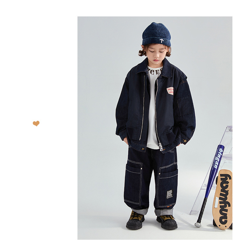 FULONGZAI 부모-어린이 아동복 2024 가을 및 겨울 소년과 소녀 새로운 대형 어린이 느슨한 어린이 데님 코트스토어 가기