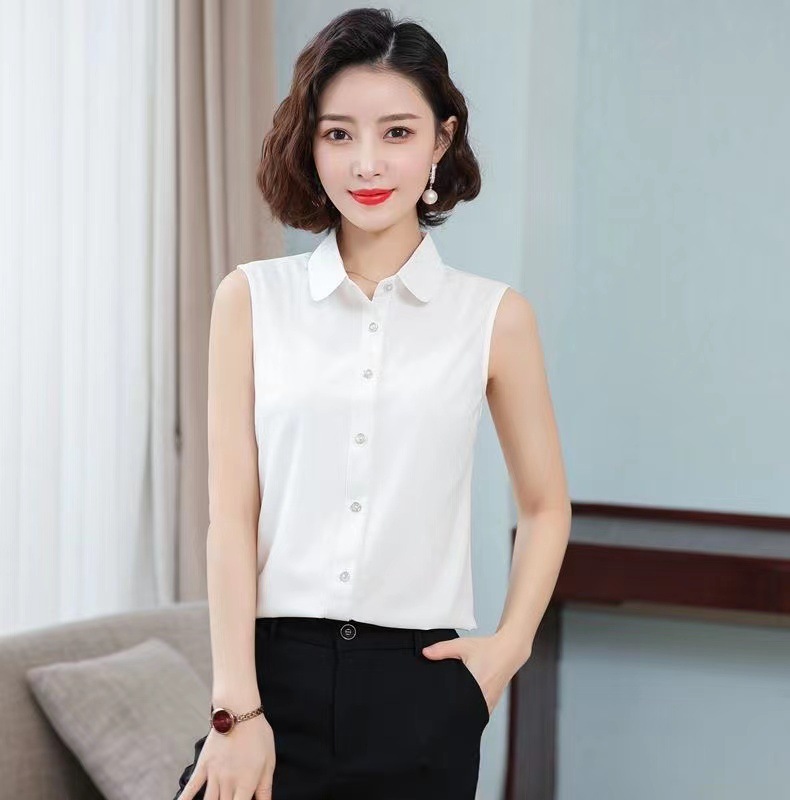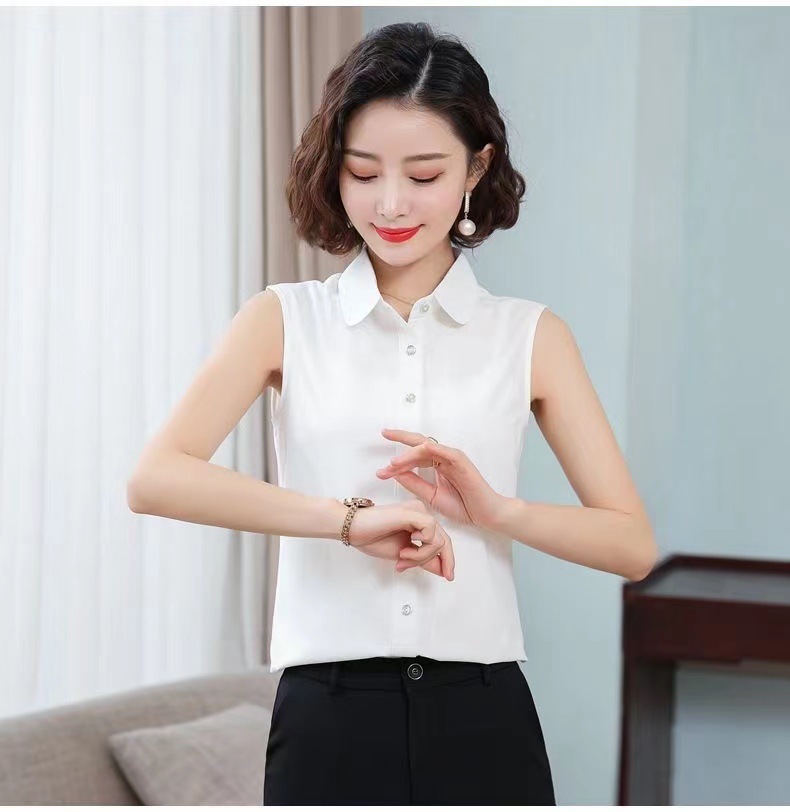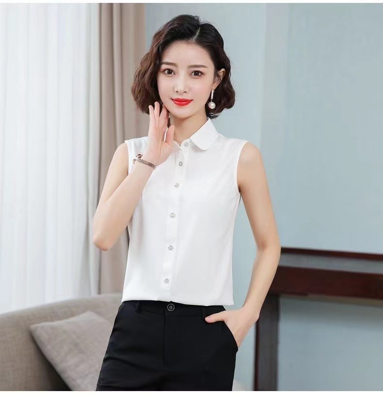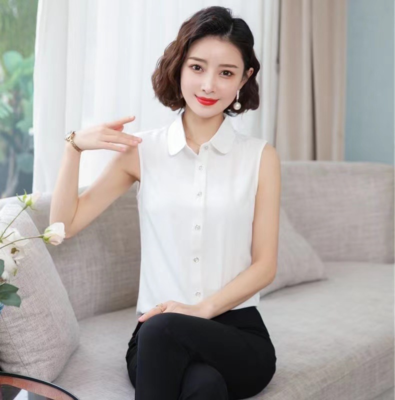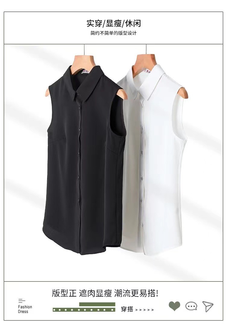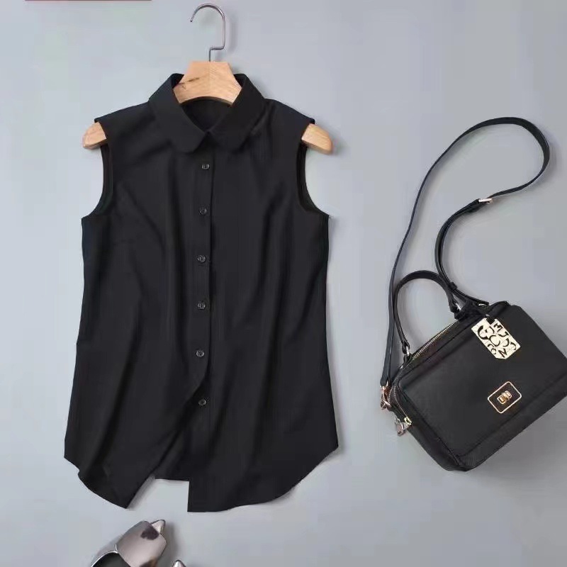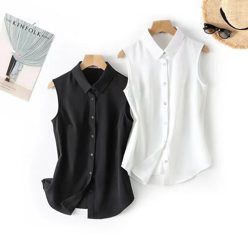흑백 민소매 셔츠 칼라 여성의 봄, 여름, 가을, 겨울 내부 최고 프로베이스 조끼 쉬폰 셔츠스토어 가기
