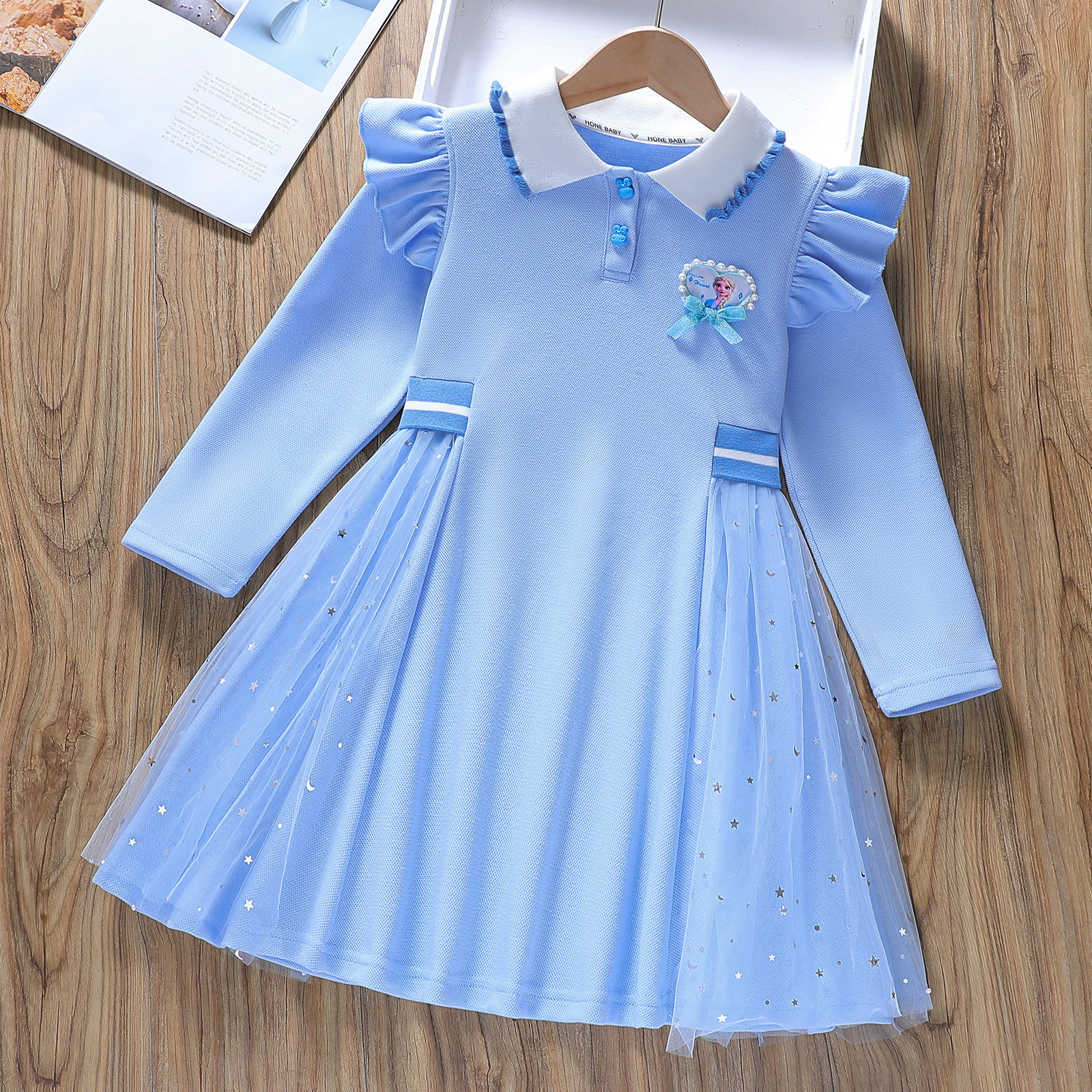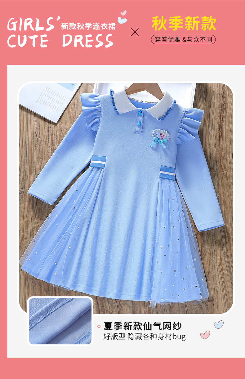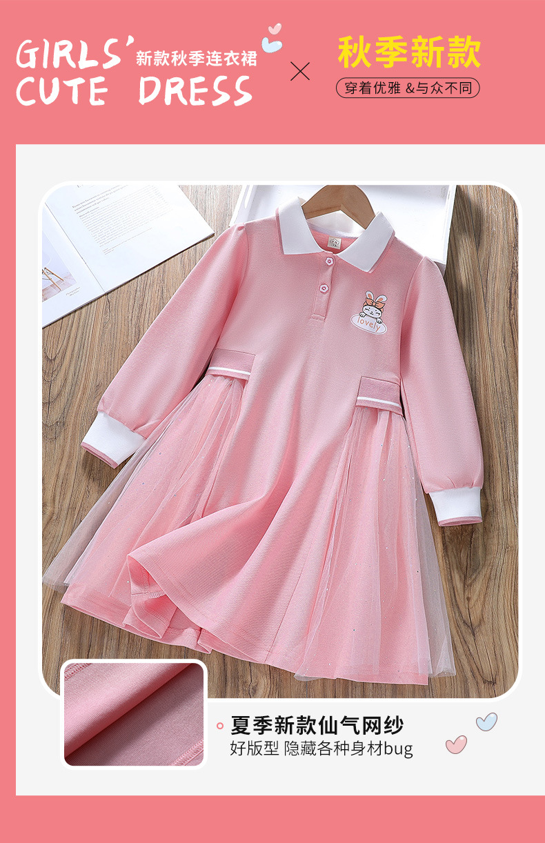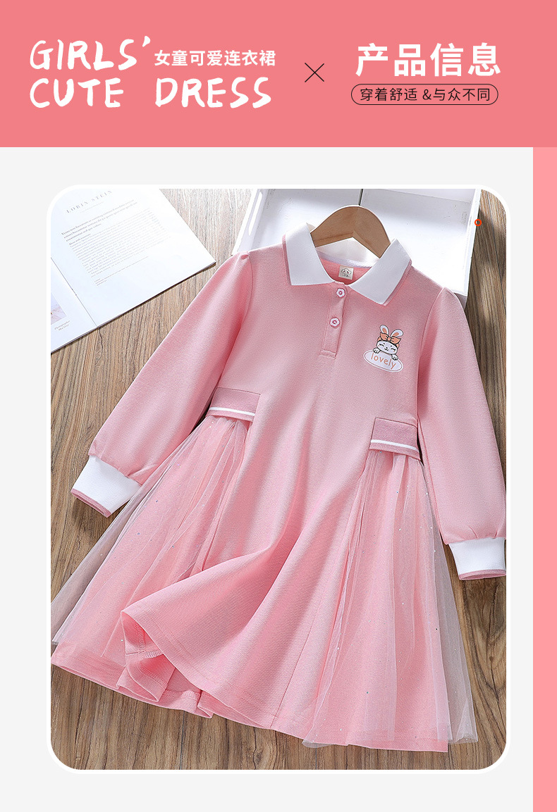 소녀의 봄과 가을 대학 스타일 원피스 어린이 긴 소매 공주 원피스 2024 새로운 아기 서양 스타일 아이샤 폴로 원피스스토어 가기