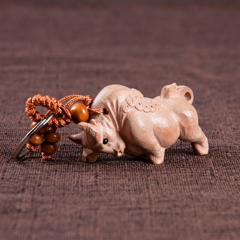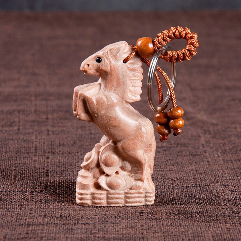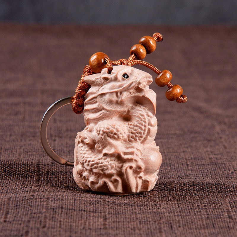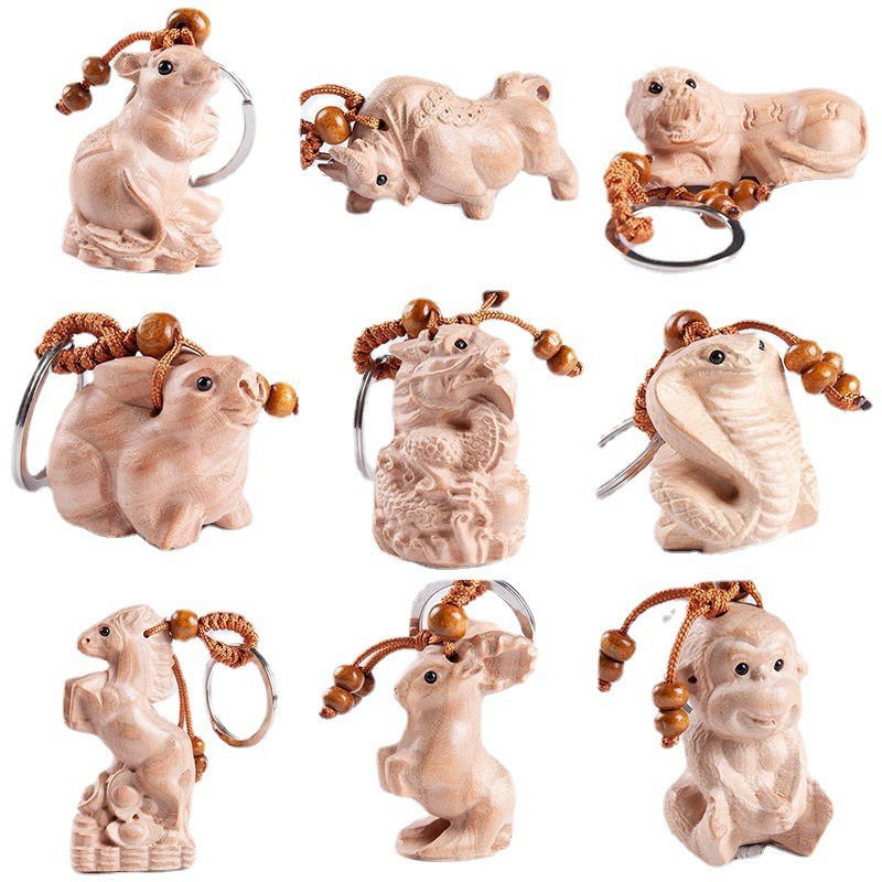 도매 마호가니 로그 조디악 키 체인 펜던트 바디 보호 조디악 경치 좋은 공예 키 체인스토어 가기