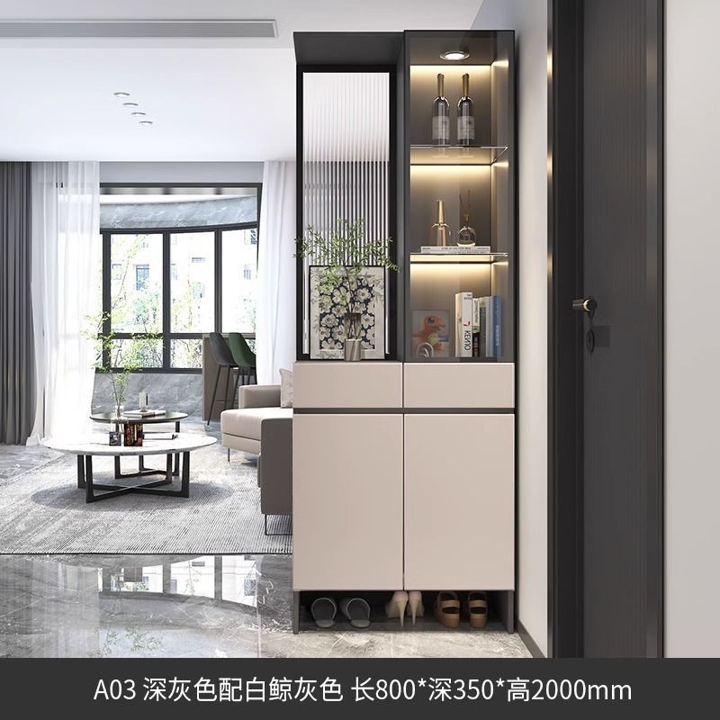 입구 캐비닛 신발 캐비닛 통합 빛 고급 창홍 유리 스크린 캐비닛 현대 간단한 거실 파티션 캐비닛 와인 캐비닛