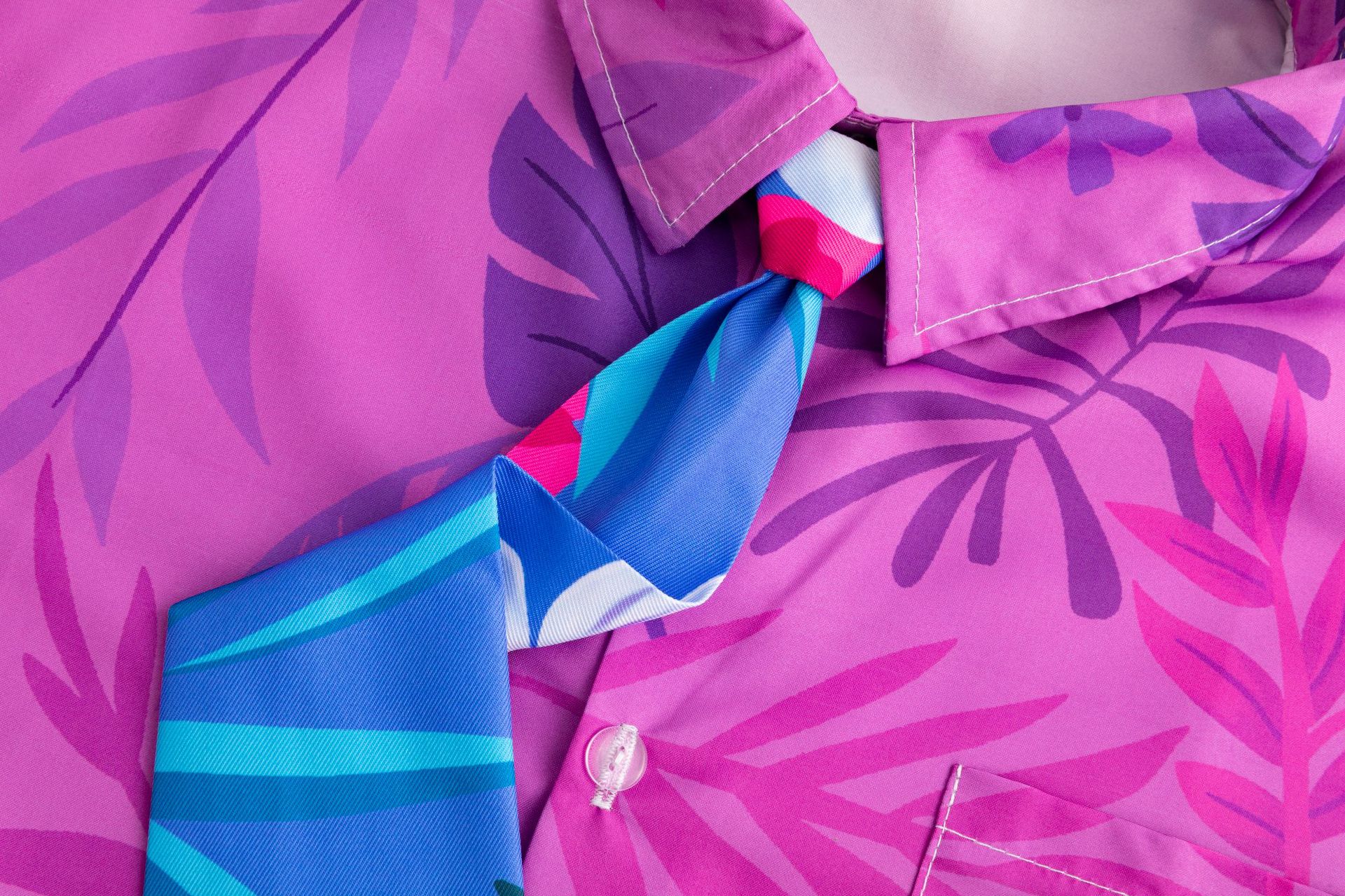 • 반팔 보라색 닉 셔츠 + 넥타이 없음