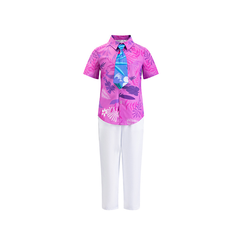 • 반팔 보라색 닉 셔츠 + 넥타이 없음 + 바지