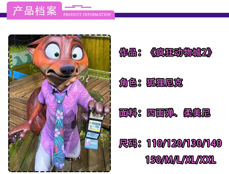 Zootopia 2 Nick Fox 옷 키즈 폭스 닉 모자 성인 셔츠 코스프레 공연 세트스토어 가기