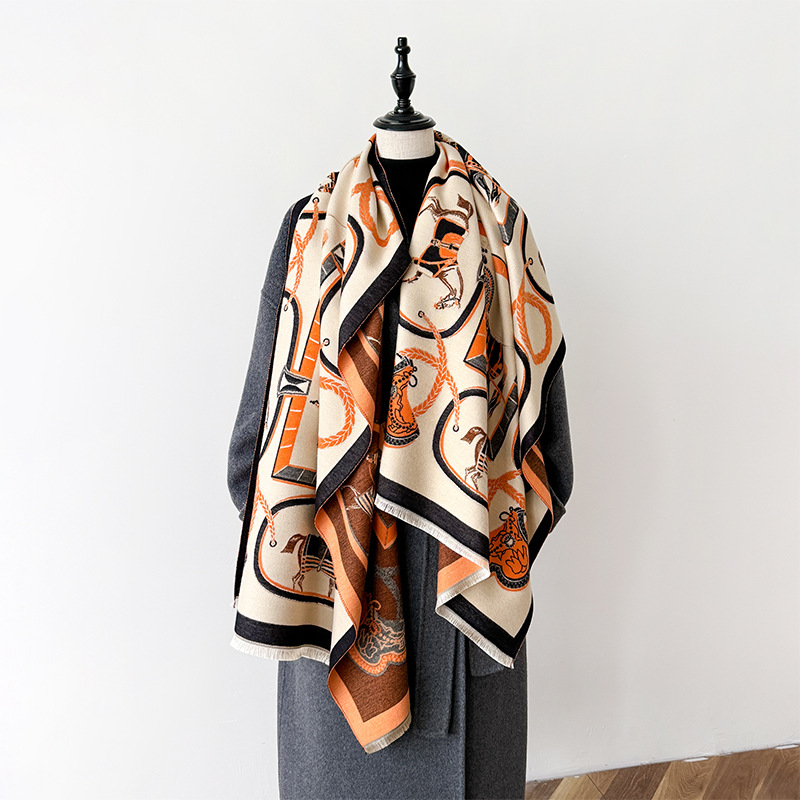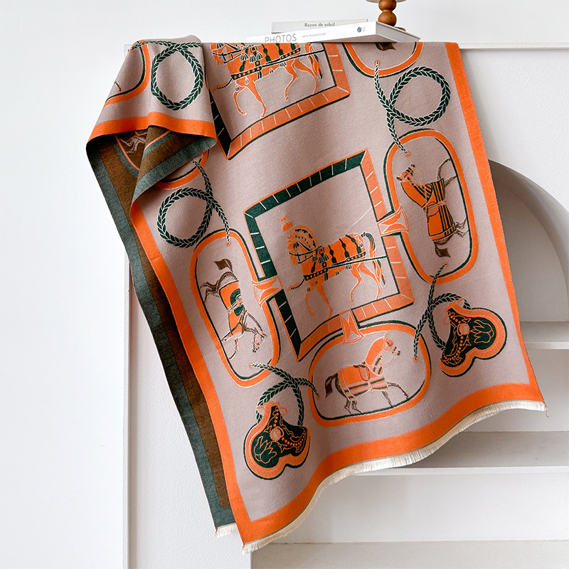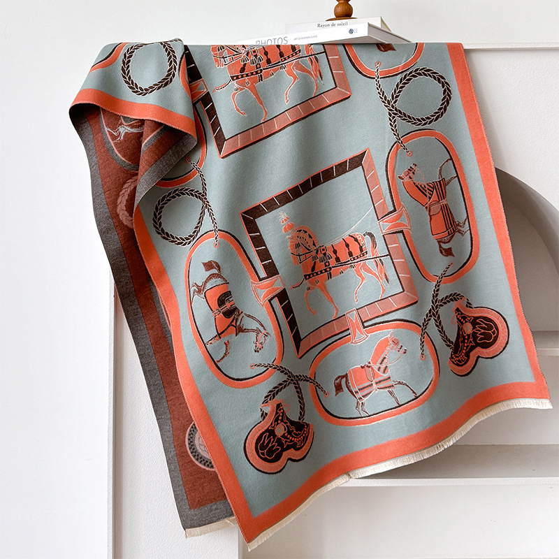 2024 가을과 겨울 새로운 캐시미어 간단한 인쇄 패턴 장식 복고풍 양면 따뜻한 스카프 목도리