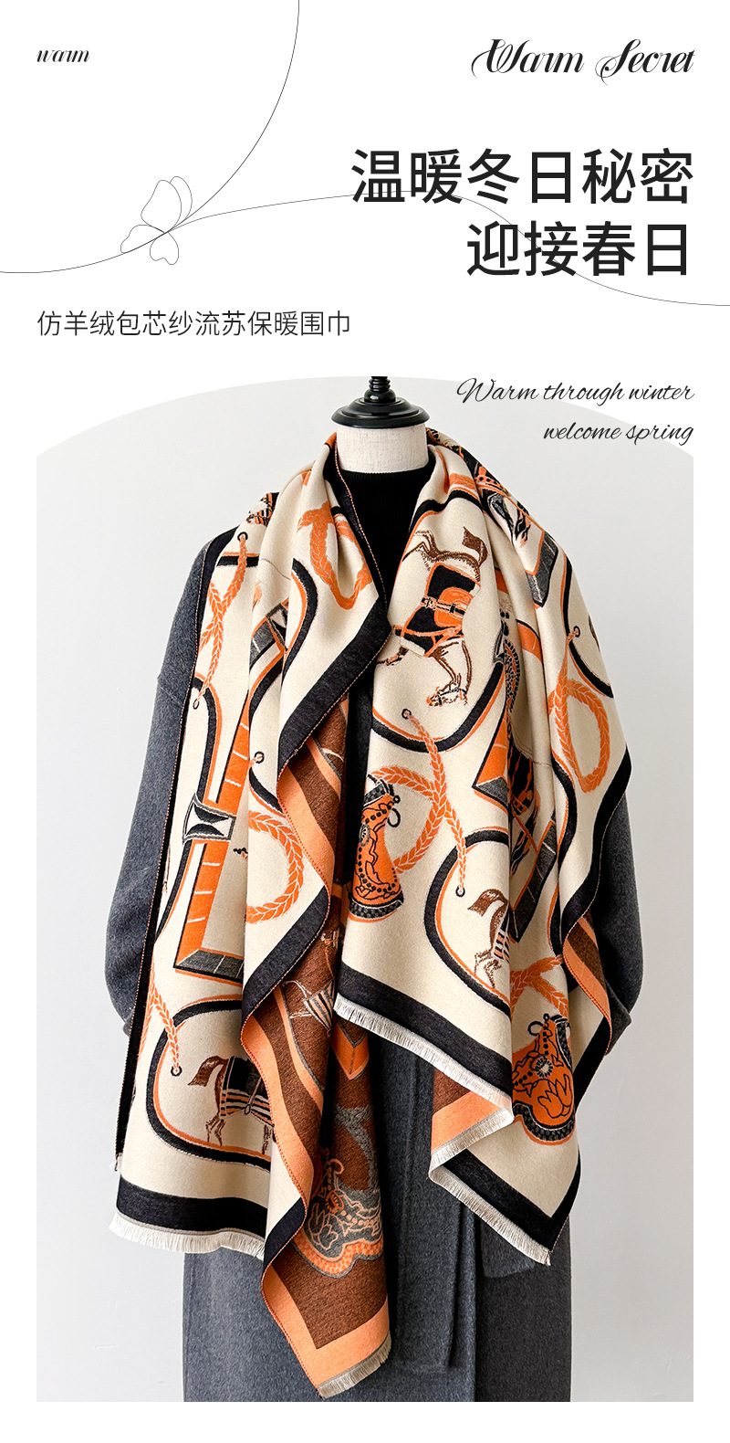 2024 가을과 겨울 새로운 캐시미어 간단한 인쇄 패턴 장식 복고풍 양면 따뜻한 스카프 목도리스토어 가기