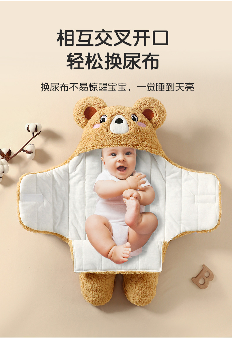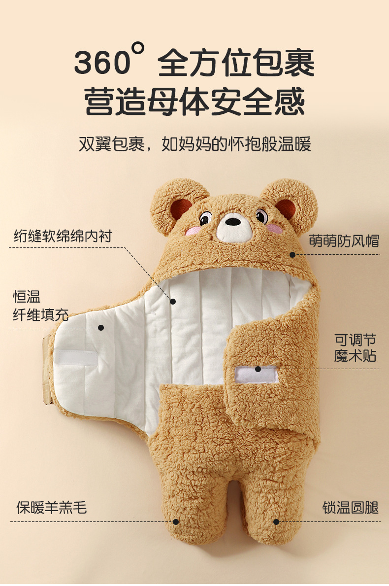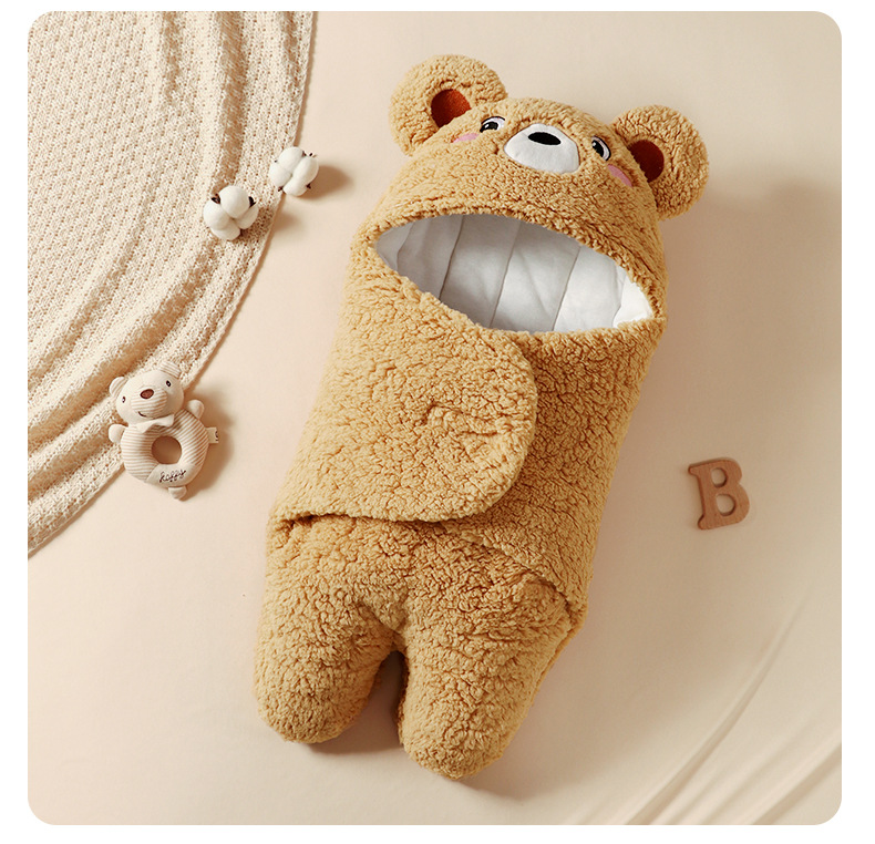 아기 보안 안티 놀라운 슬리핑 백 신생아 가을과 겨울 코튼 양고기 양털 가방 만화 후드 300g 캡 퀼트스토어 가기