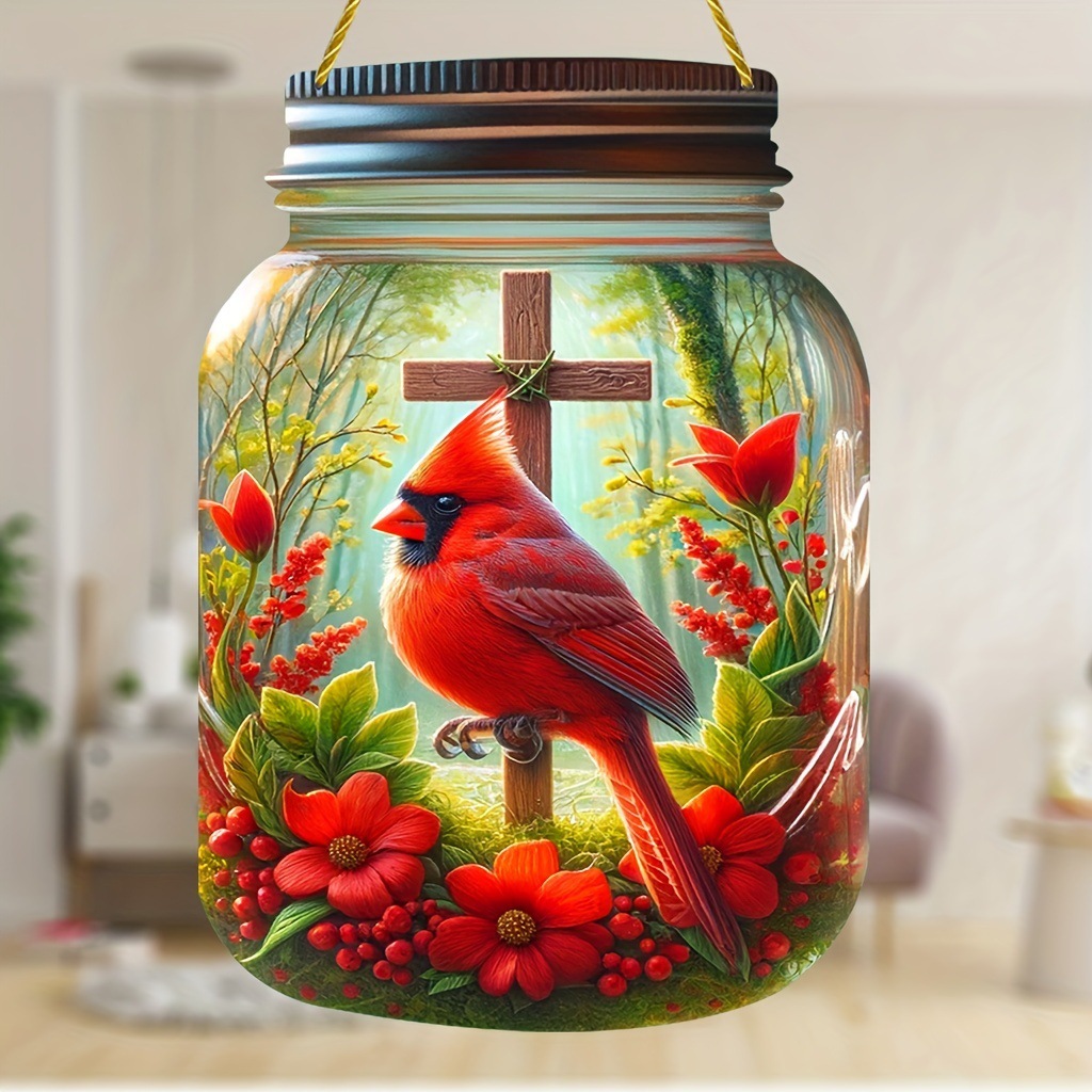 국경 간 폭발 꽃 붉은 새 아크릴 벽 예술 교수형 홈 장식 플라크 가든 메이슨 항아리