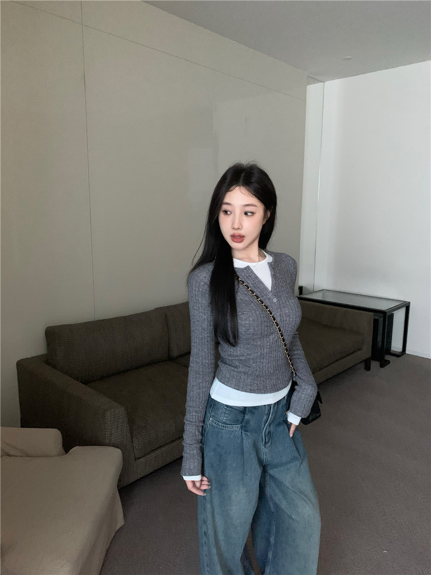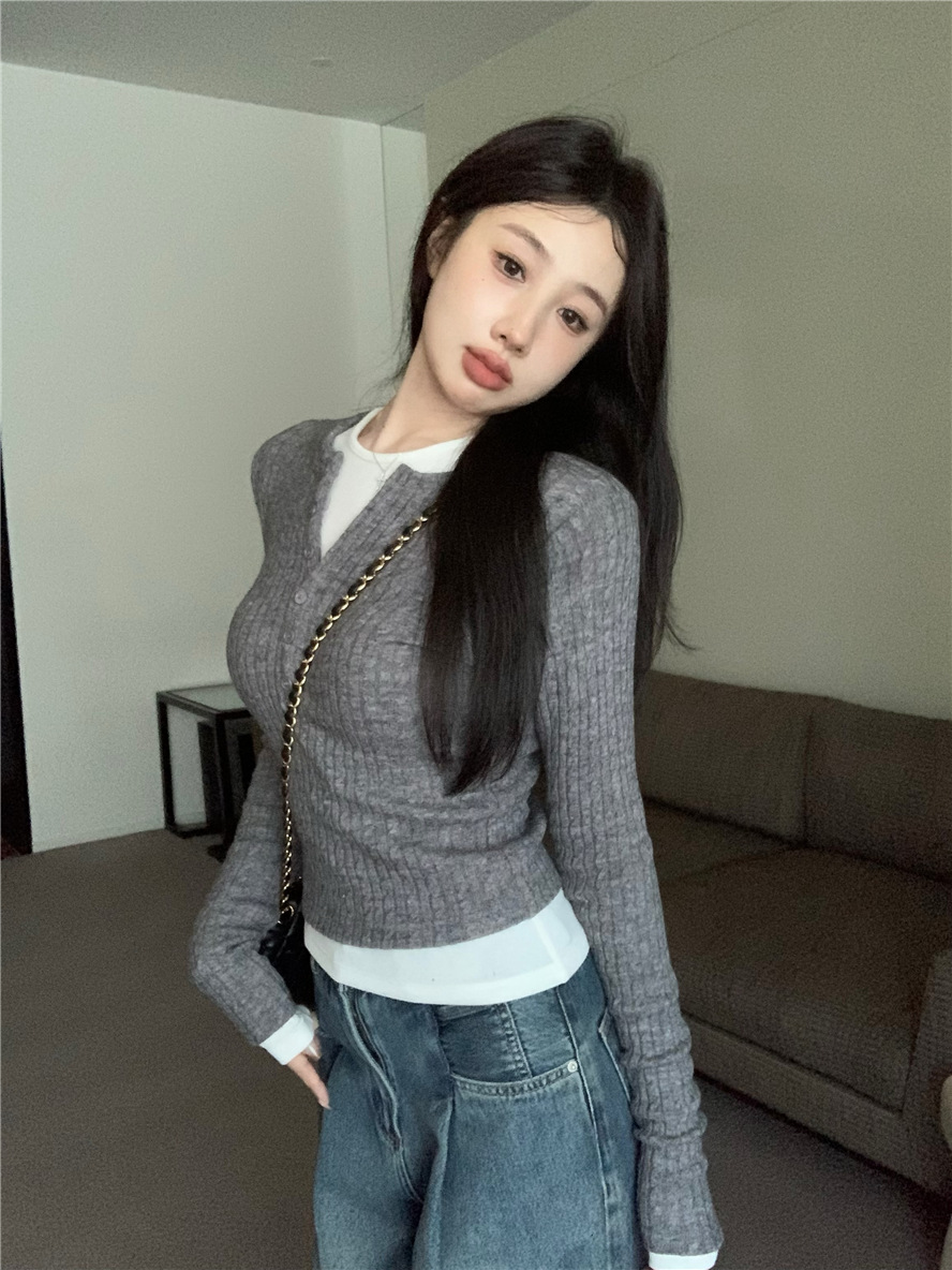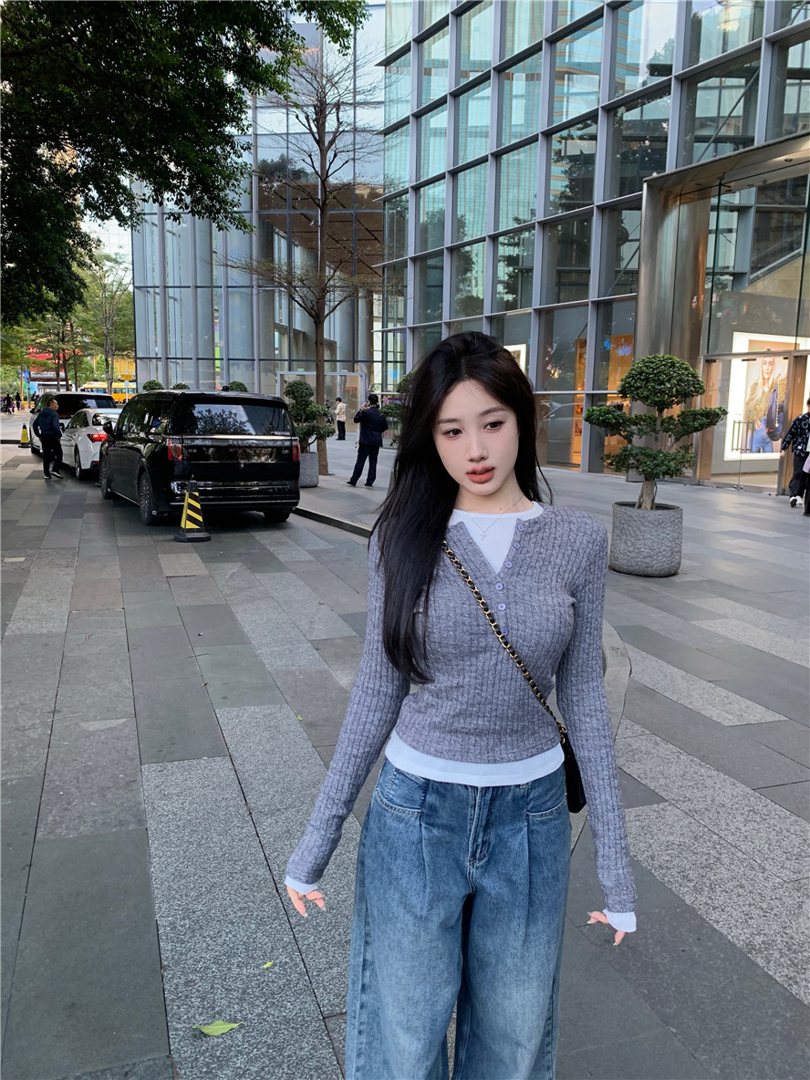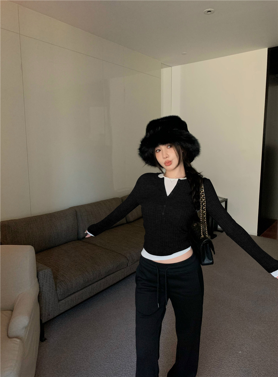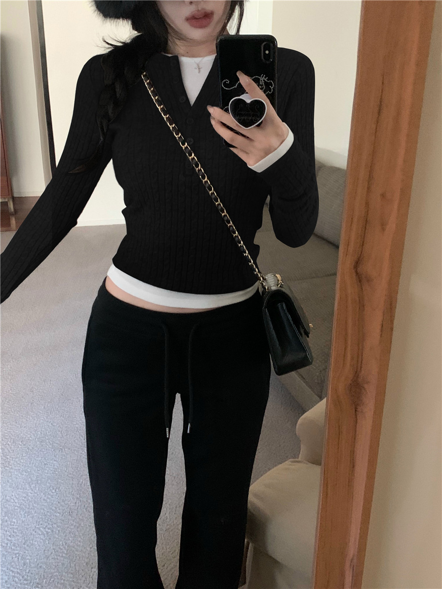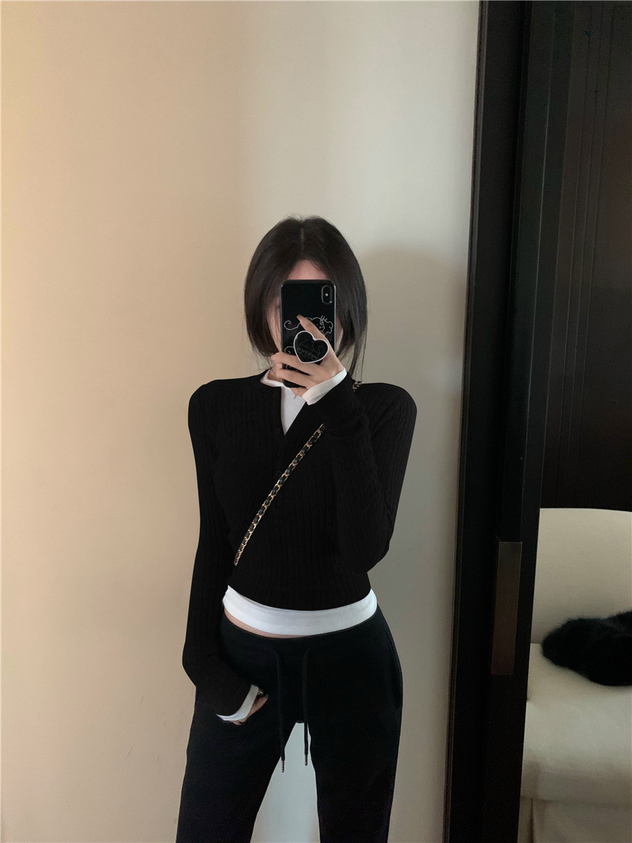 레드 트위스트 스웨터 여성의 가을 빈티지 긴팔 타이트 스웨터 내베이스 셔츠 짧은 하프 오픈 칼라 탑