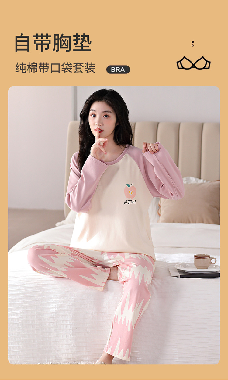 가을과 겨울 잠옷 여성의 긴 소매면 가슴 패드가 통합 된 초대형 가정용 의류 200kg 220kg 5XL스토어 가기