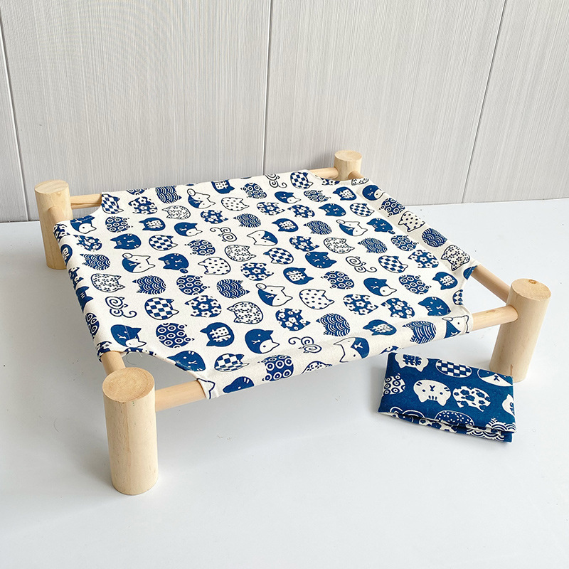 • [천 2장 포함] 흰색 바탕에 파란색 고양이 침대 + 파란색 바탕에 흰색 고양이 천