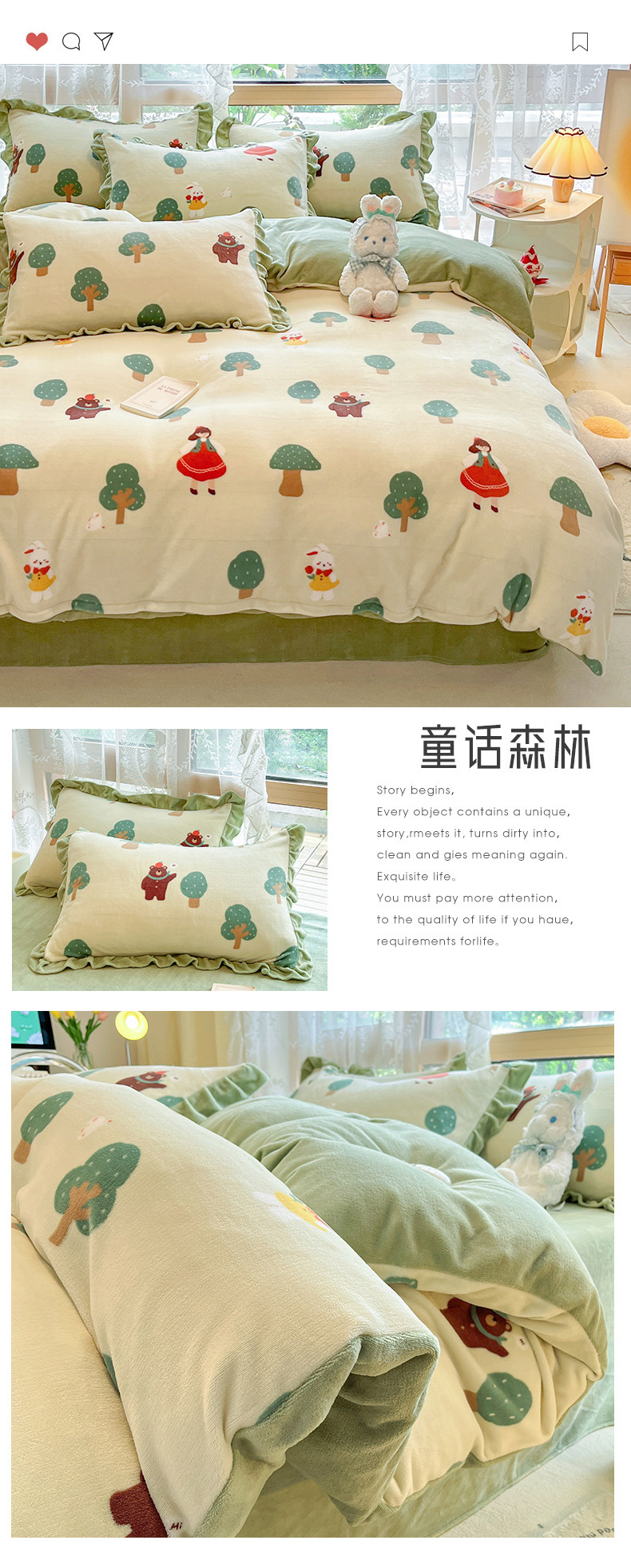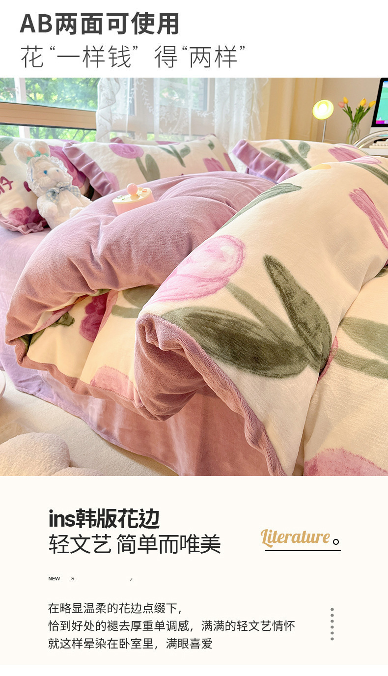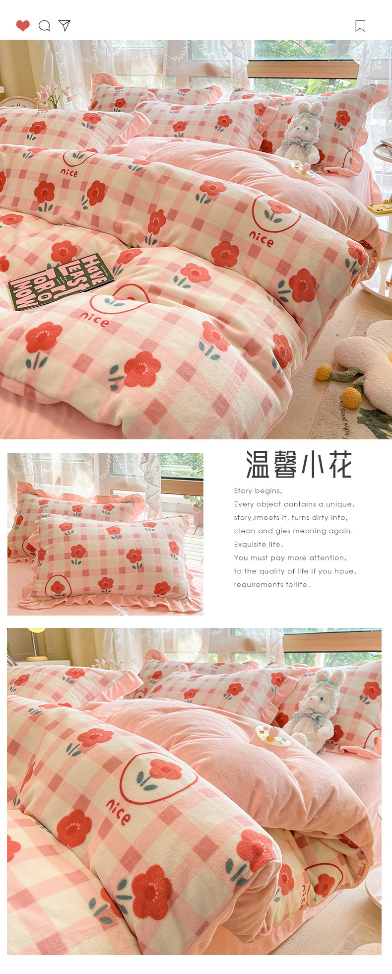 韩版小清新牛奶绒四件套秋冬季加厚宝宝绒床单被套保暖双面珊瑚绒