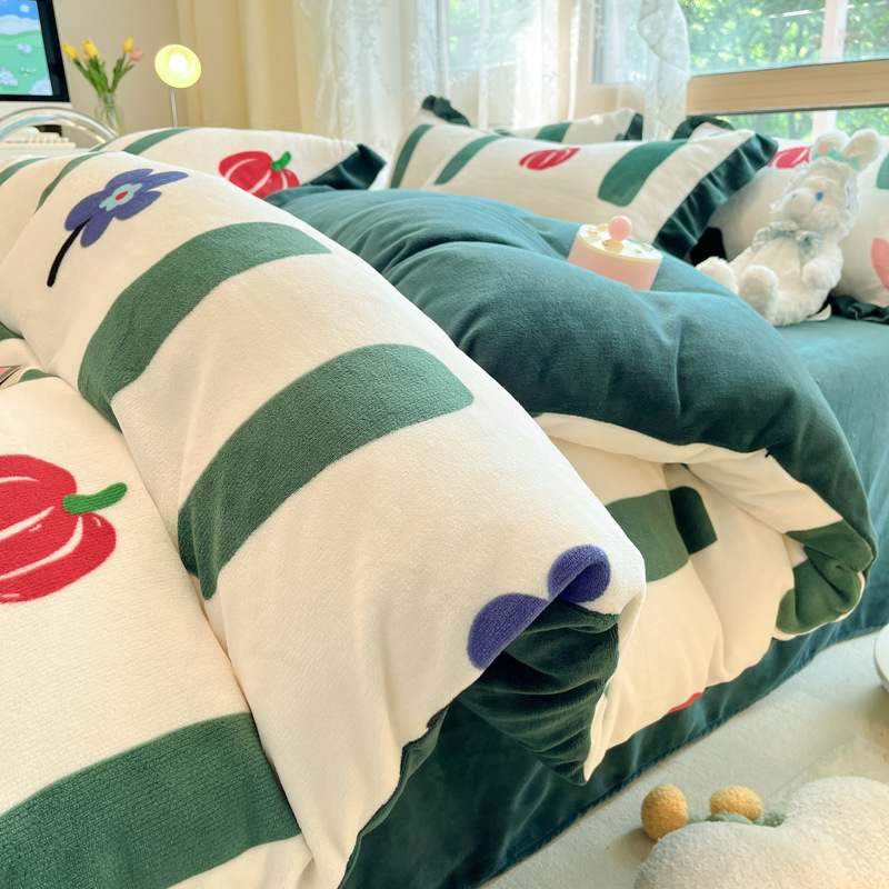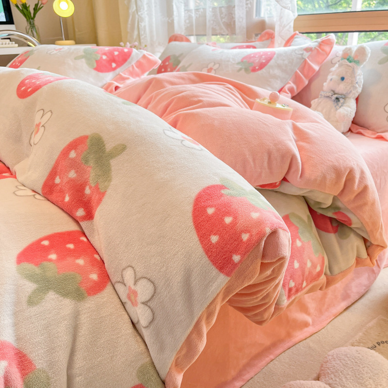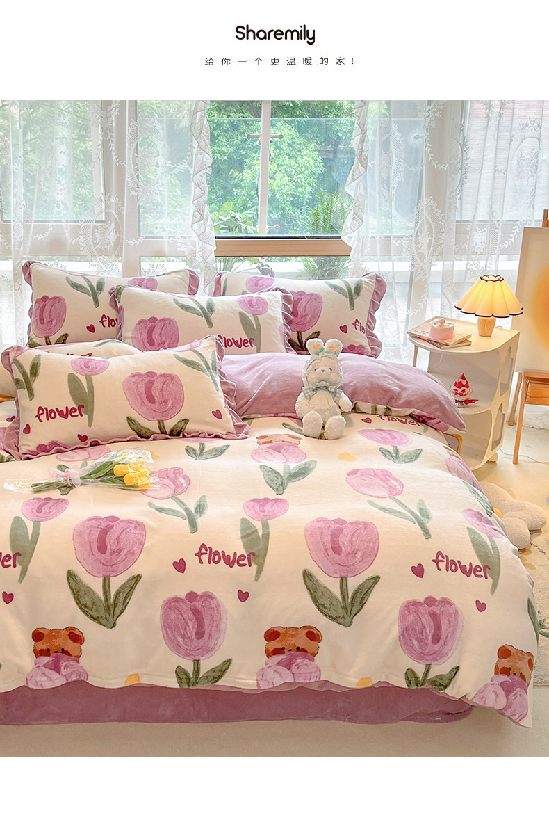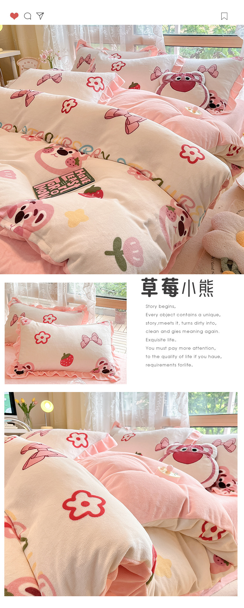 韩版小清新牛奶绒四件套秋冬季加厚宝宝绒床单被套保暖双面珊瑚绒