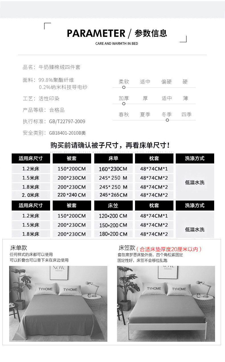 • 1.8m 침대 [시트 4종 세트] - 200×230cm 이불심에 적합