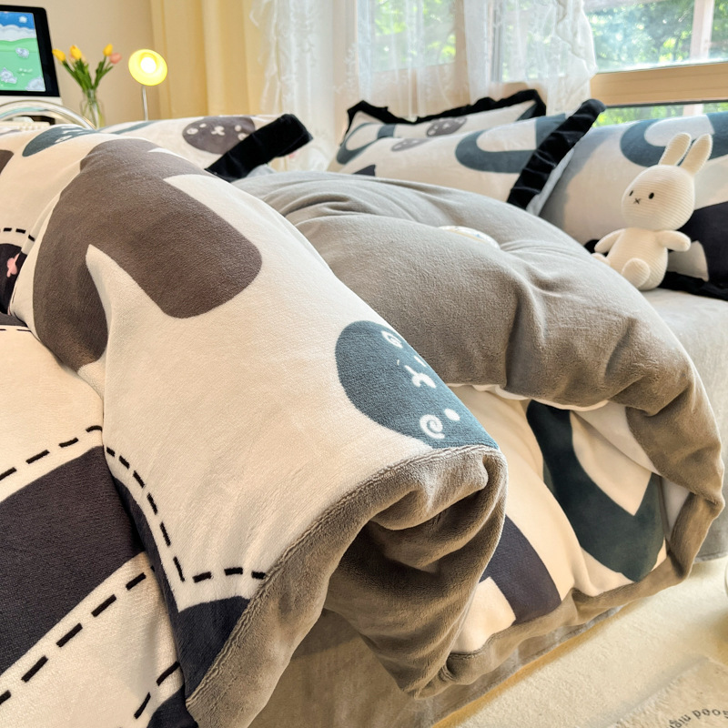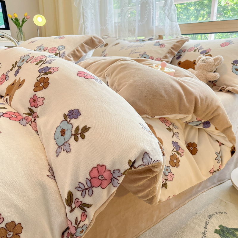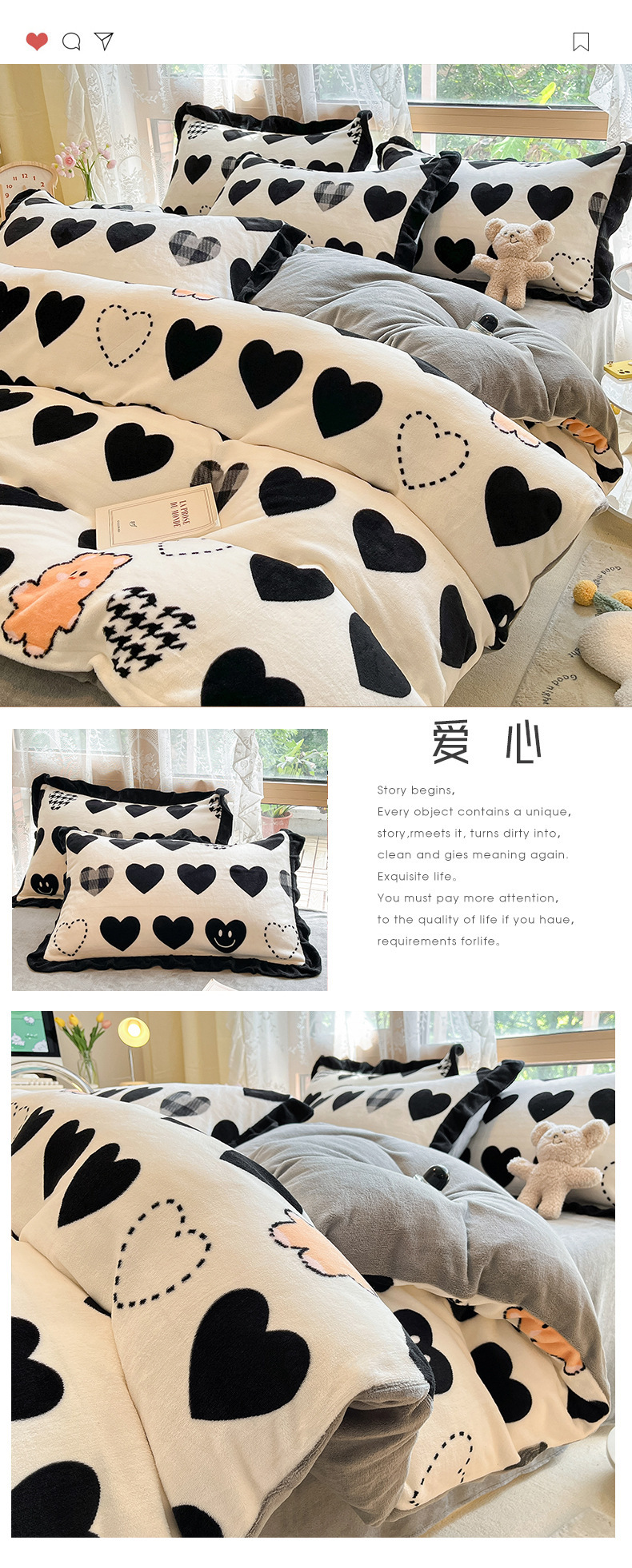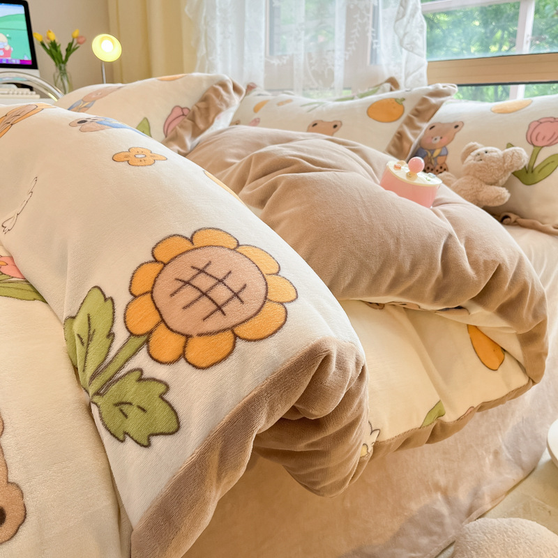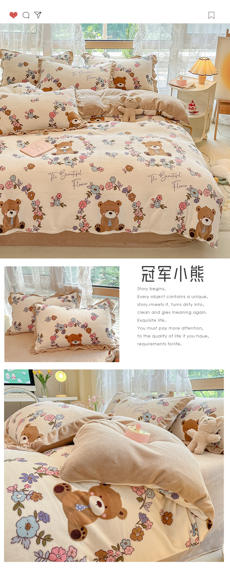 한국식 신선한 우유 벨벳 4 조각 세트 가을과 겨울 두꺼운 아기 벨벳 침대 시트 퀼트 커버 따뜻한 양면 산호 벨벳