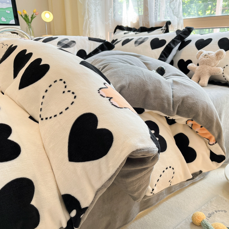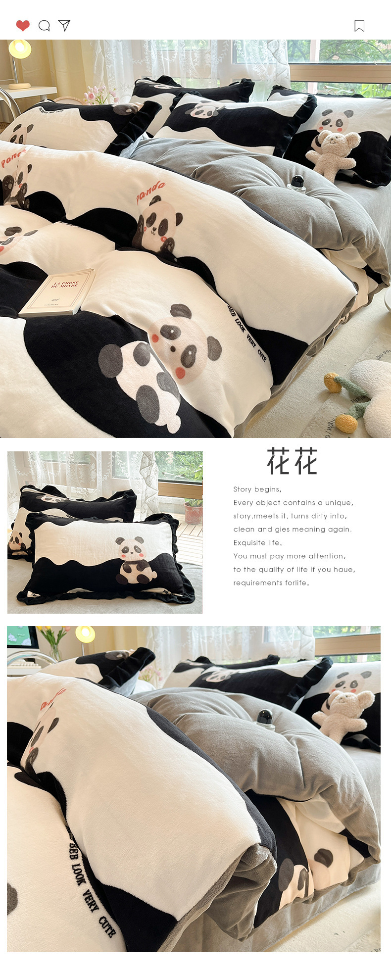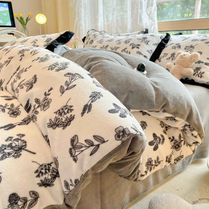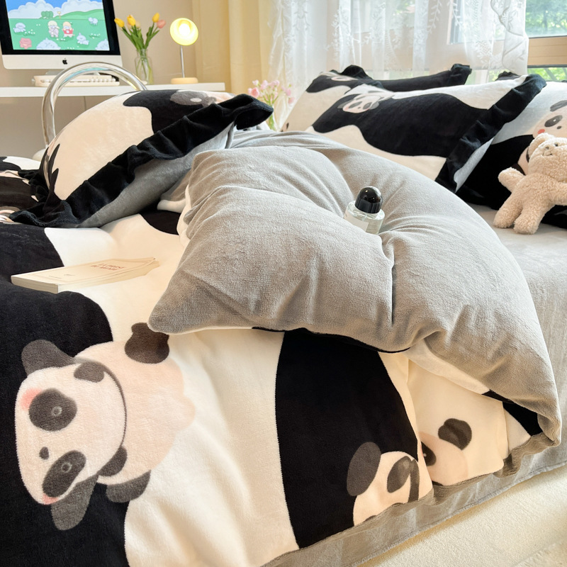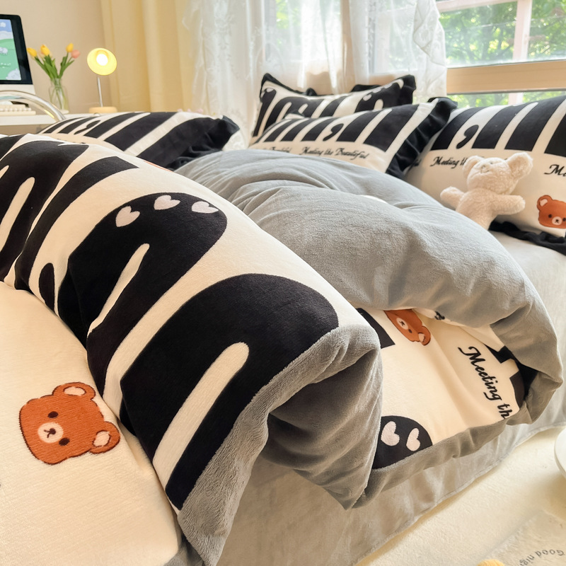 한국식 신선한 우유 벨벳 4 조각 세트 가을과 겨울 두꺼운 아기 벨벳 침대 시트 퀼트 커버 따뜻한 양면 산호 벨벳