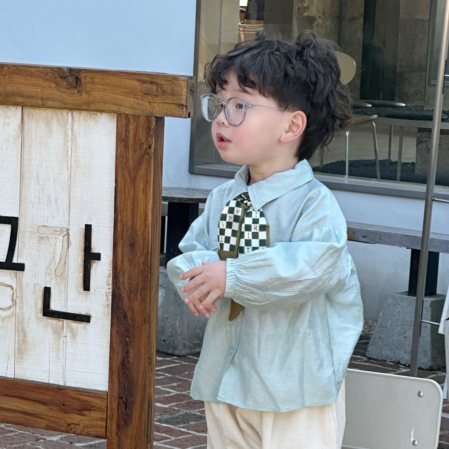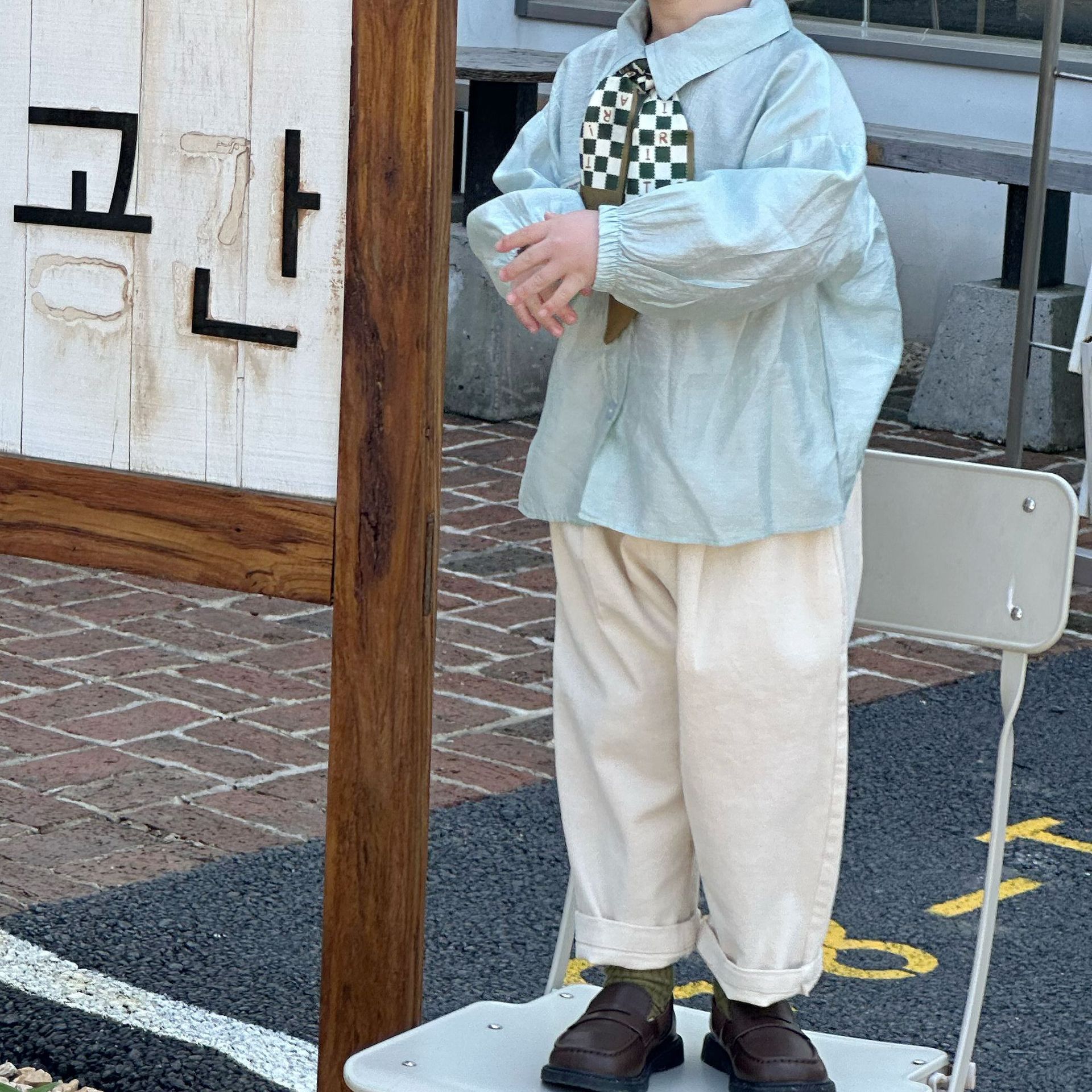 두꺼운 아동복 어린이 3 종 세트 봄과 가을 새로운 일본과 한국 소년 셔츠 양복 조끼 바지 세트 아기 생일 복장스토어 가기