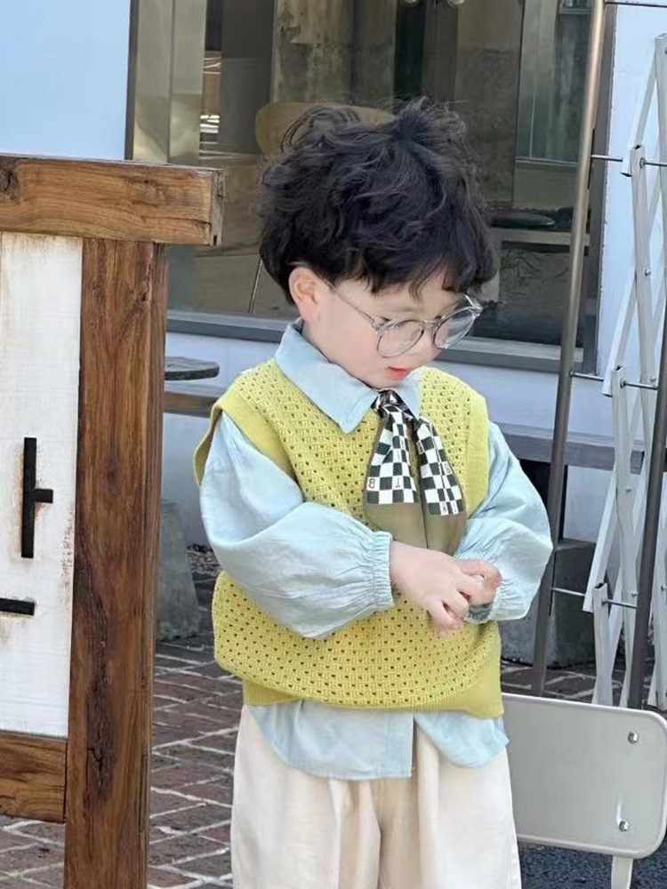 두꺼운 아동복 어린이 3 종 세트 봄과 가을 새로운 일본과 한국 소년 셔츠 양복 조끼 바지 세트 아기 생일 복장
