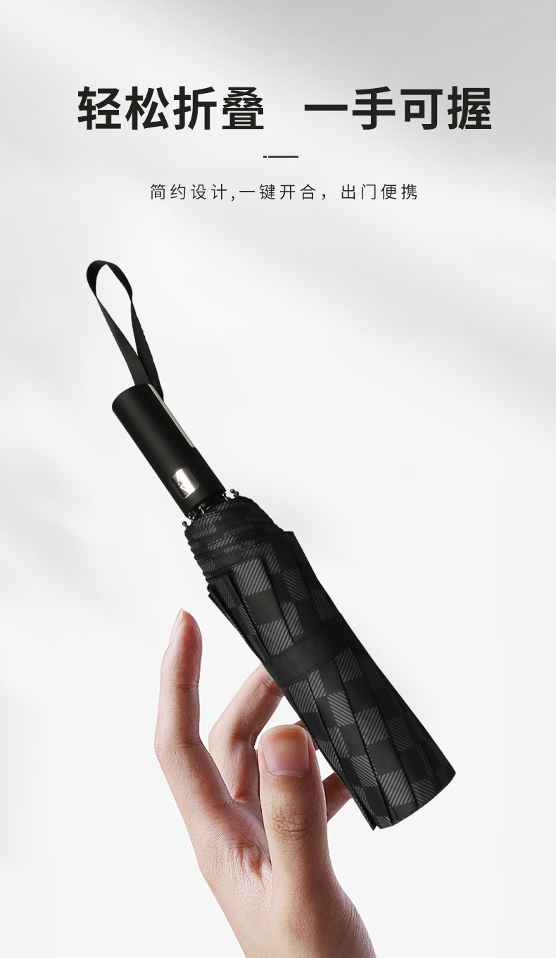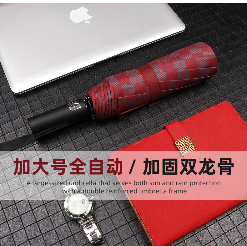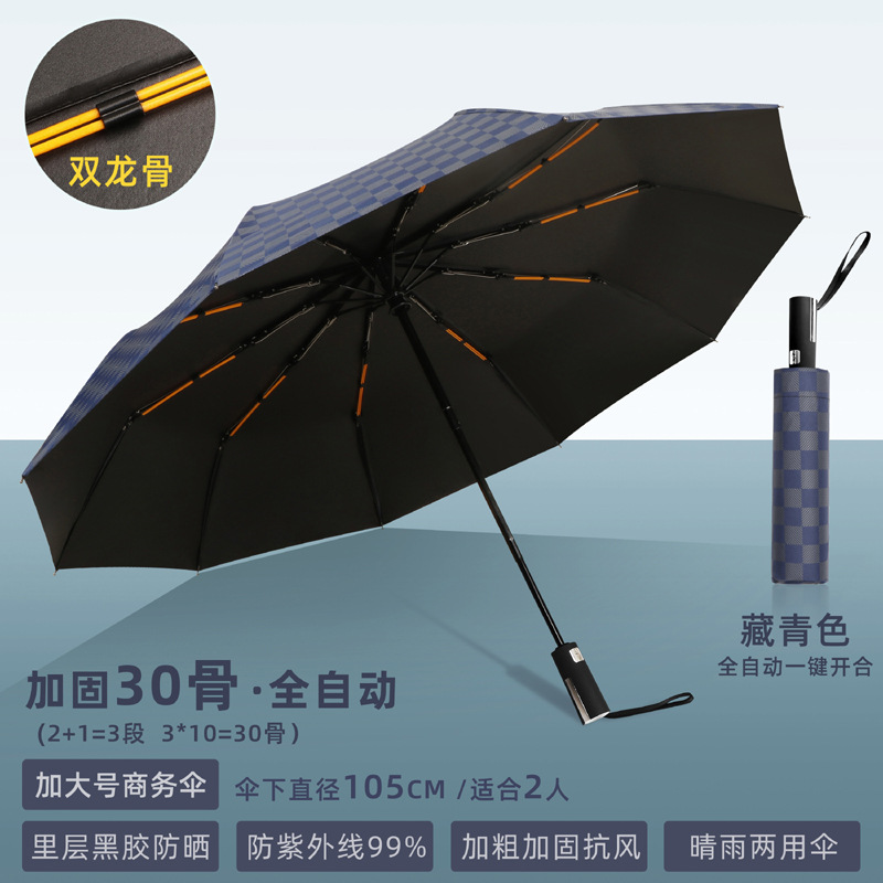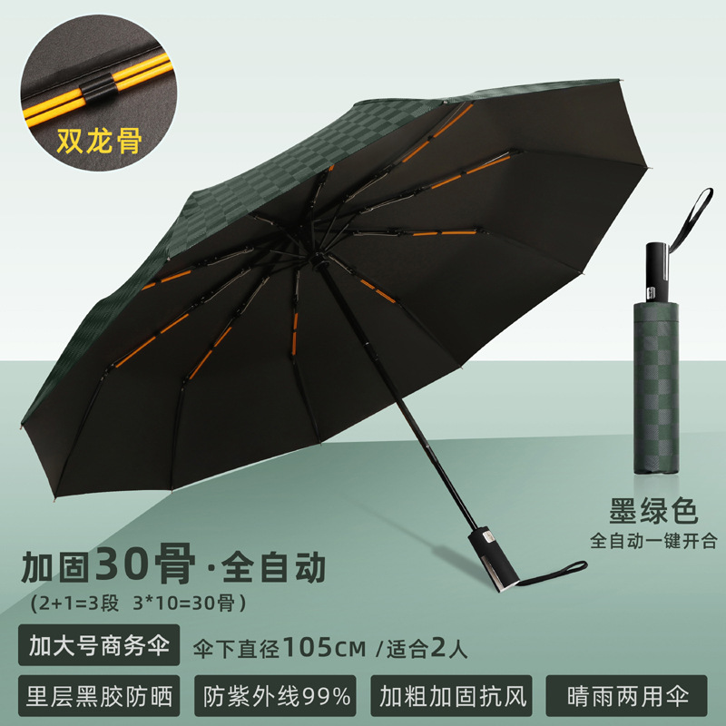 24-뼈 완전 자동 우산 더블 드래곤 뼈 남자 우산 맑고 비오는 이중 사용 안티 스톰 블랙 접착제 태양 그늘