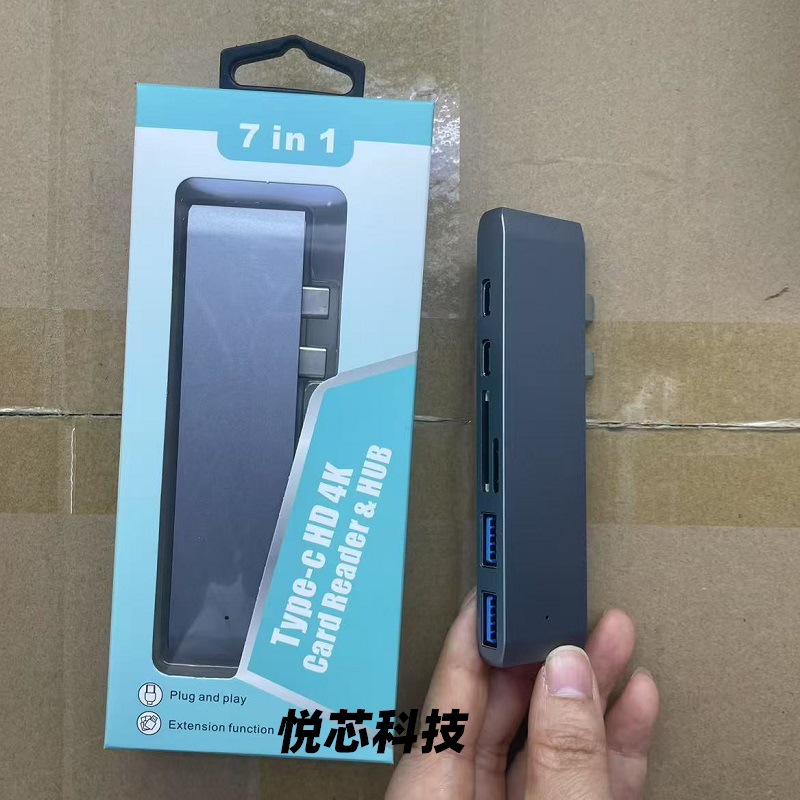 다기능 듀얼 헤드 USB3.0 HUB 허브 SD/TF 카드 리더 확장 7 in -1 type-c 도킹 스테이션