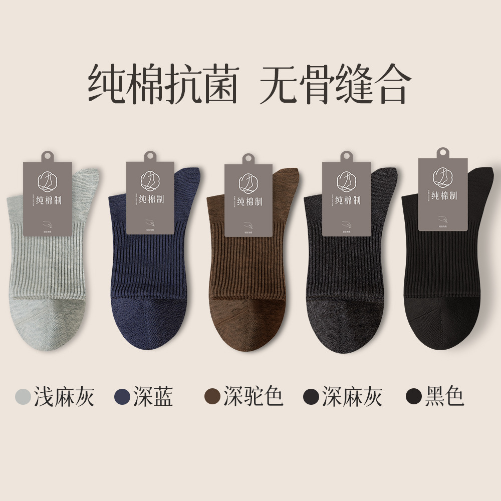 [7A 항균 탈취제] 양말 면화 남성 중간관 가을과 겨울 뼈없는 땀 흡수 통기성 비즈니스 캐주얼 스타킹