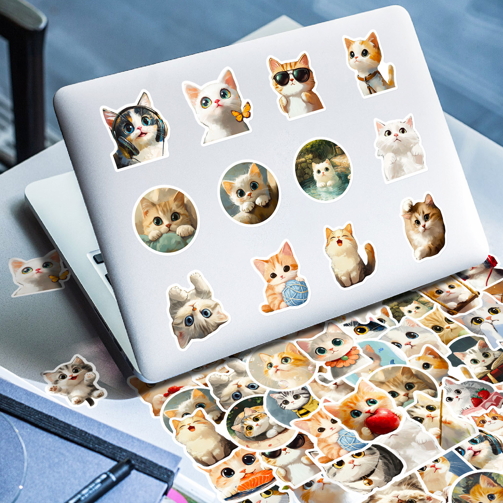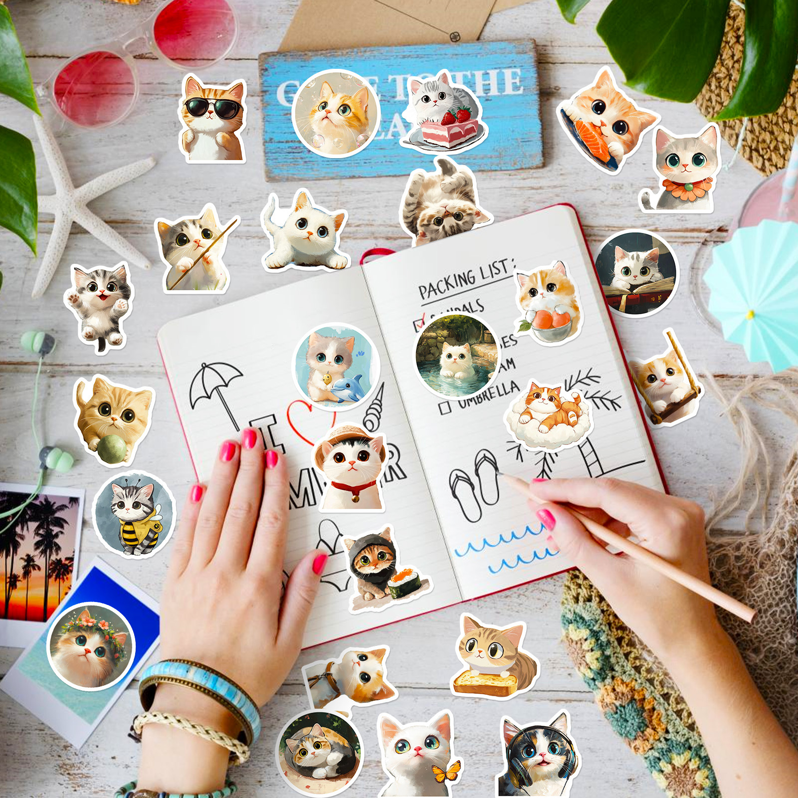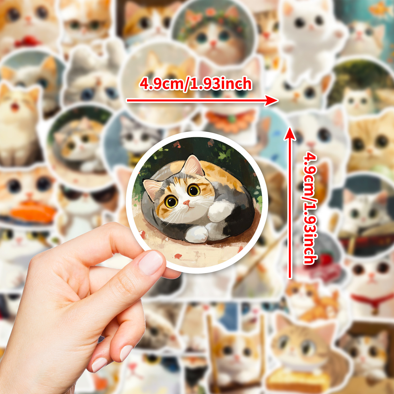 50 귀여운 만화 고양이 낙서 스티커 유화 둥근 얼굴 새끼 고양이 방수 장식 스티커 아마존 대외 무역