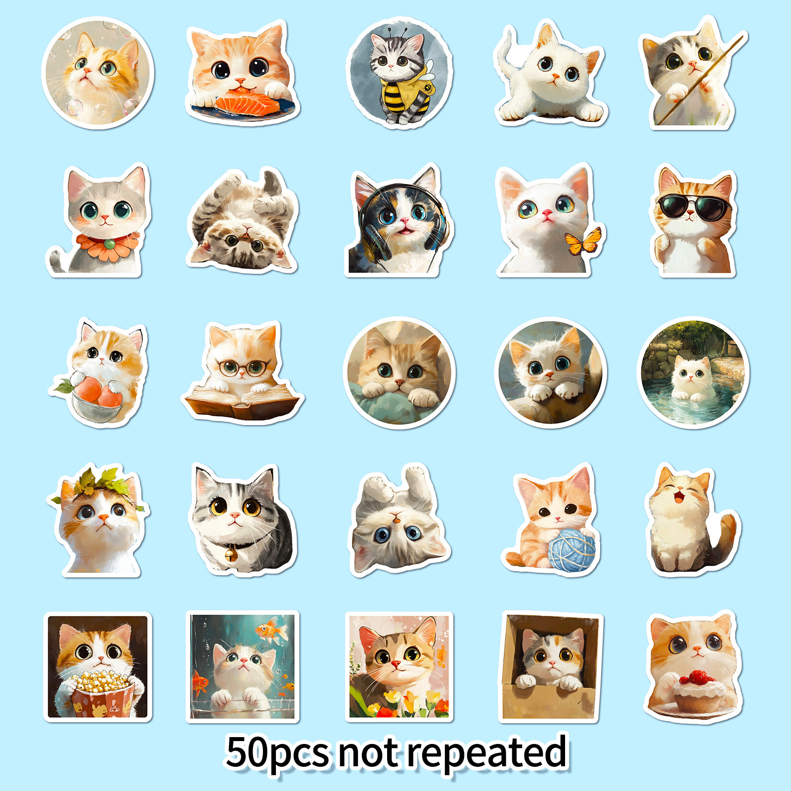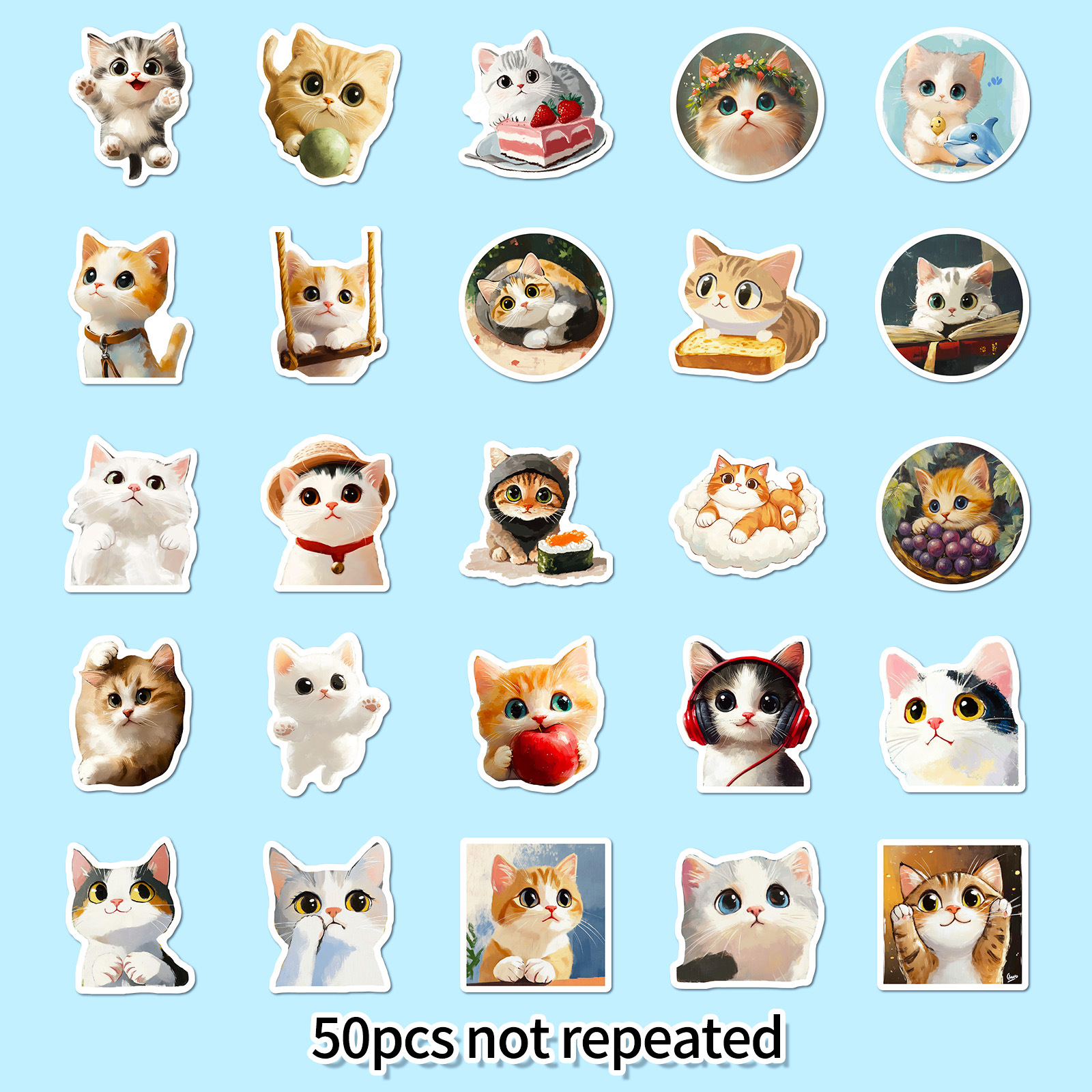 50 귀여운 만화 고양이 낙서 스티커 유화 둥근 얼굴 새끼 고양이 방수 장식 스티커 아마존 대외 무역스토어 가기