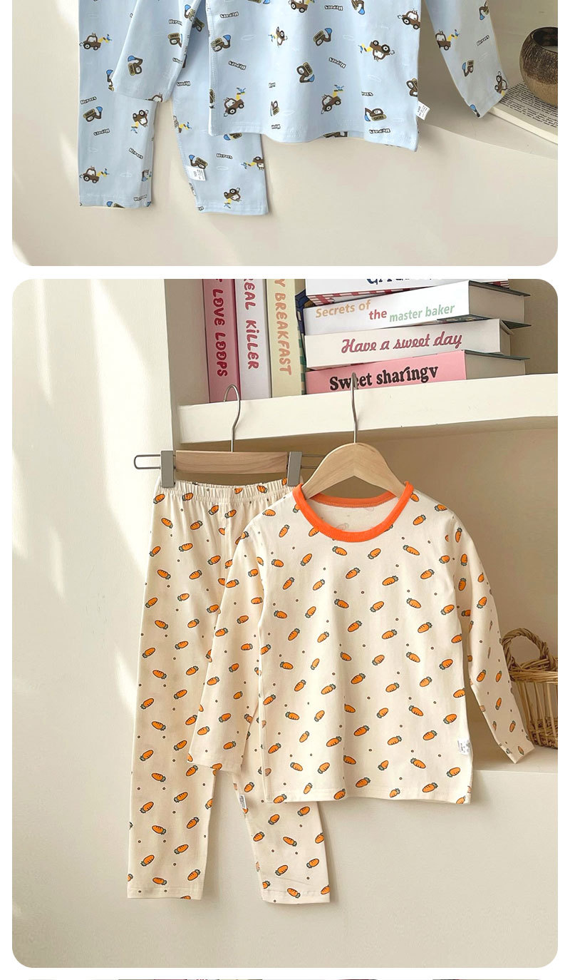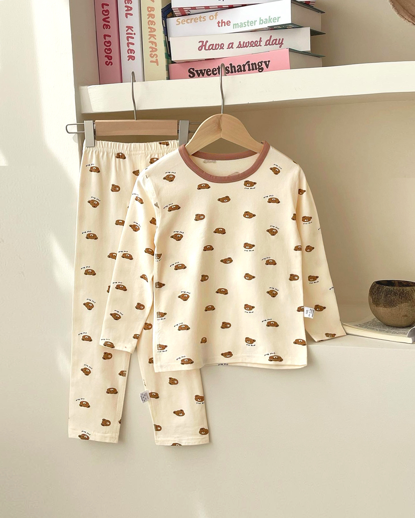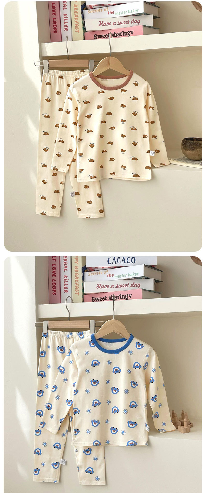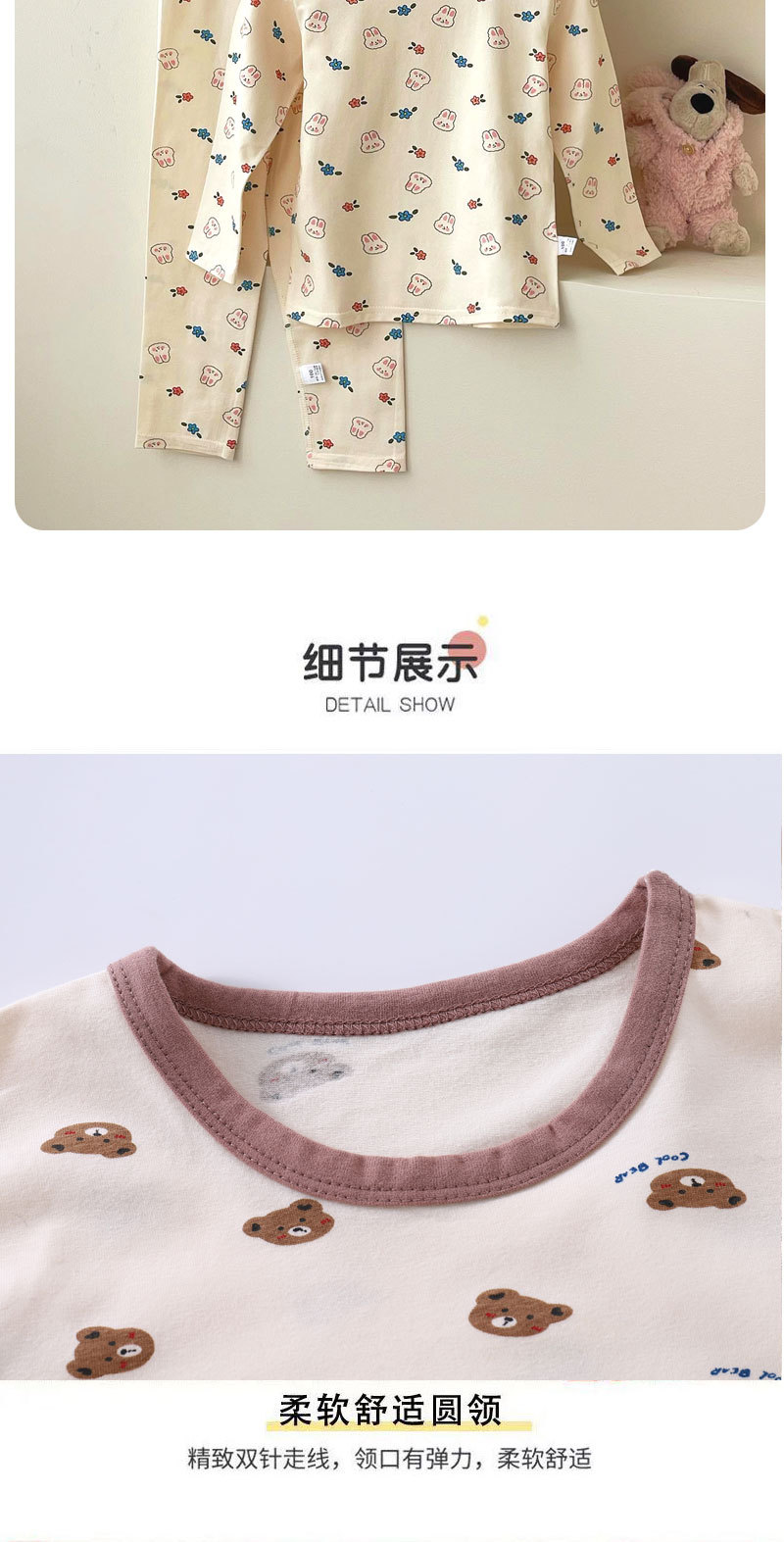 어린이 가을 옷과 바지 속옷 세트 뼈없는 샌딩 라이크라 크고 중간 크기의 아기 소년과 소녀 면 파자마 홈 옷스토어 가기