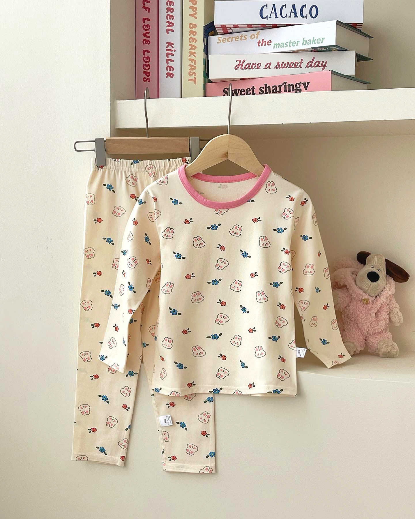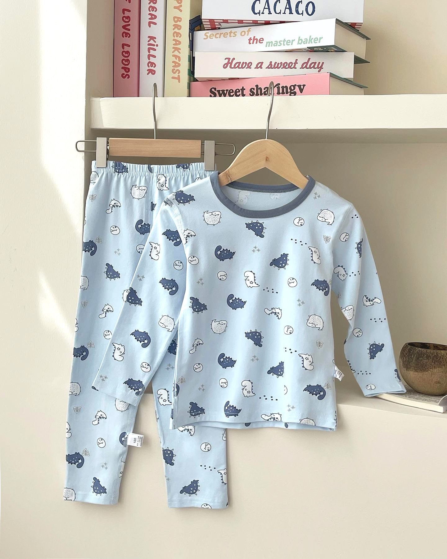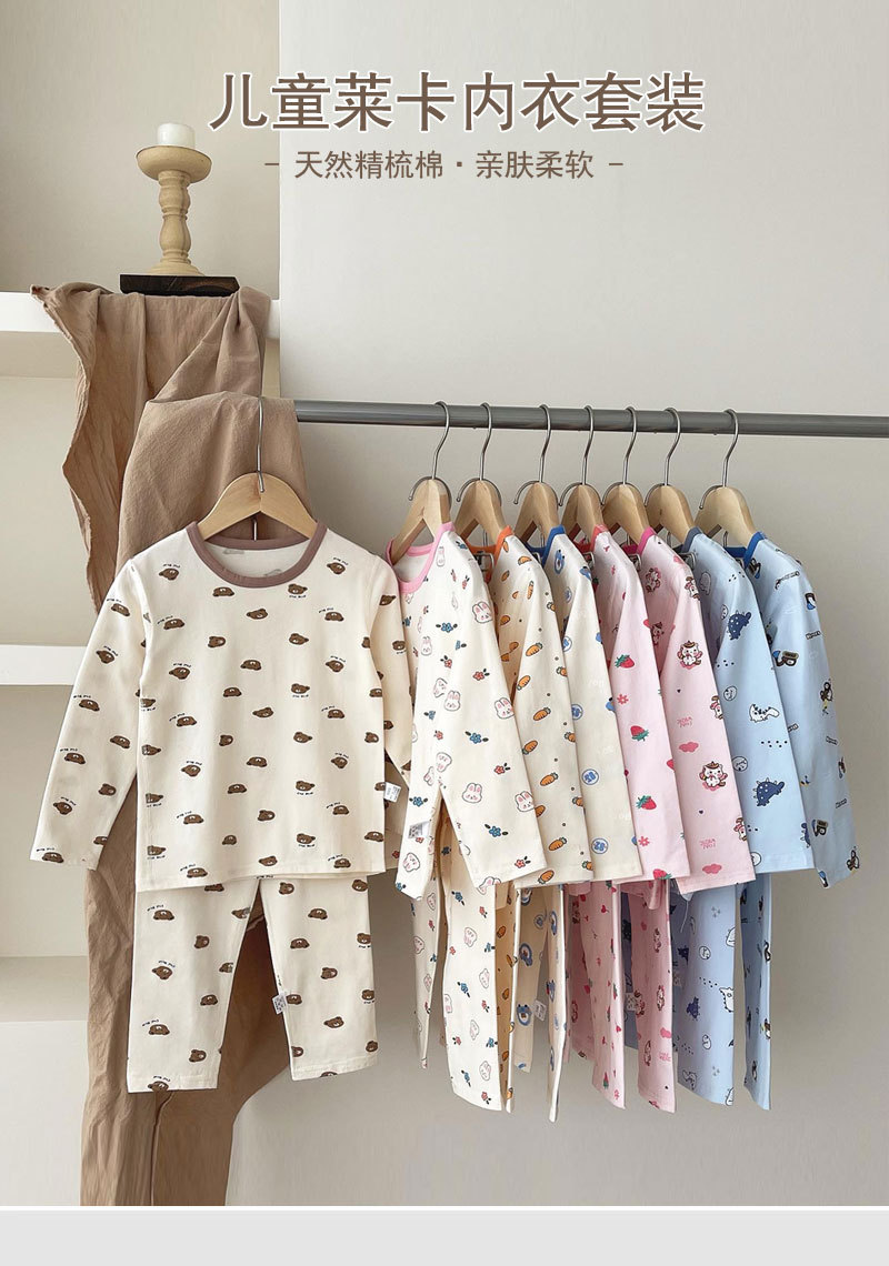어린이 가을 옷과 바지 속옷 세트 뼈없는 샌딩 라이크라 크고 중간 크기의 아기 소년과 소녀 면 파자마 홈 옷스토어 가기