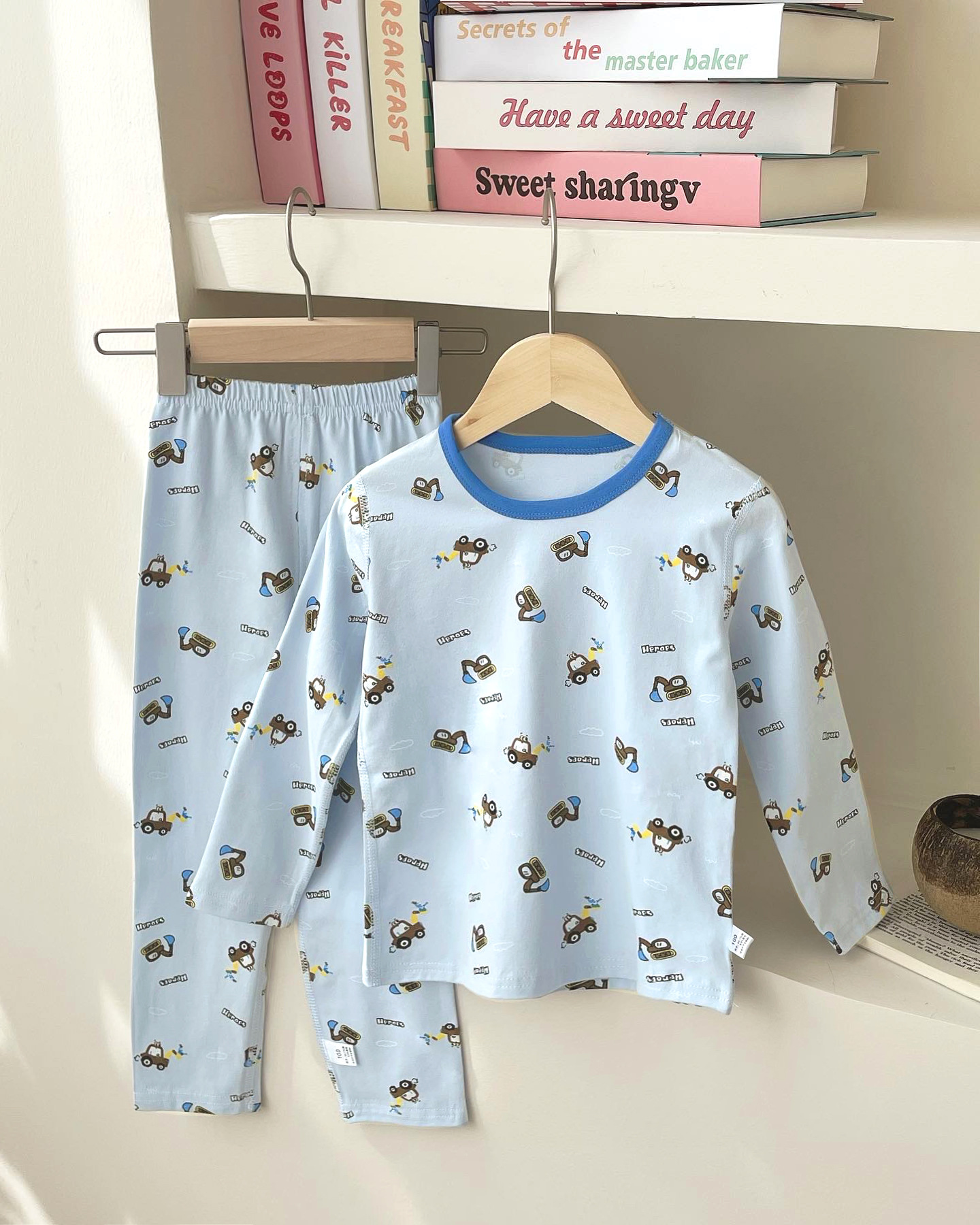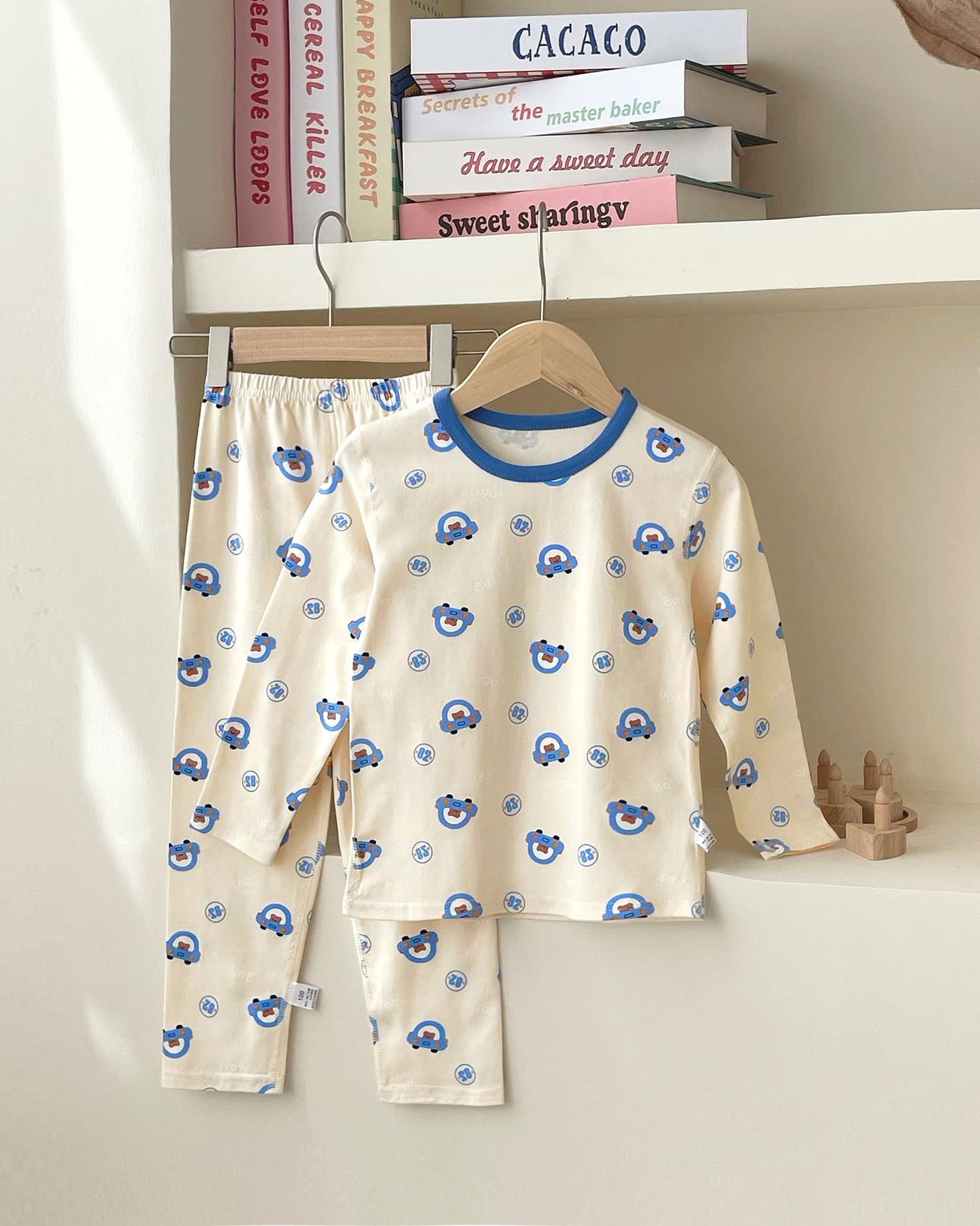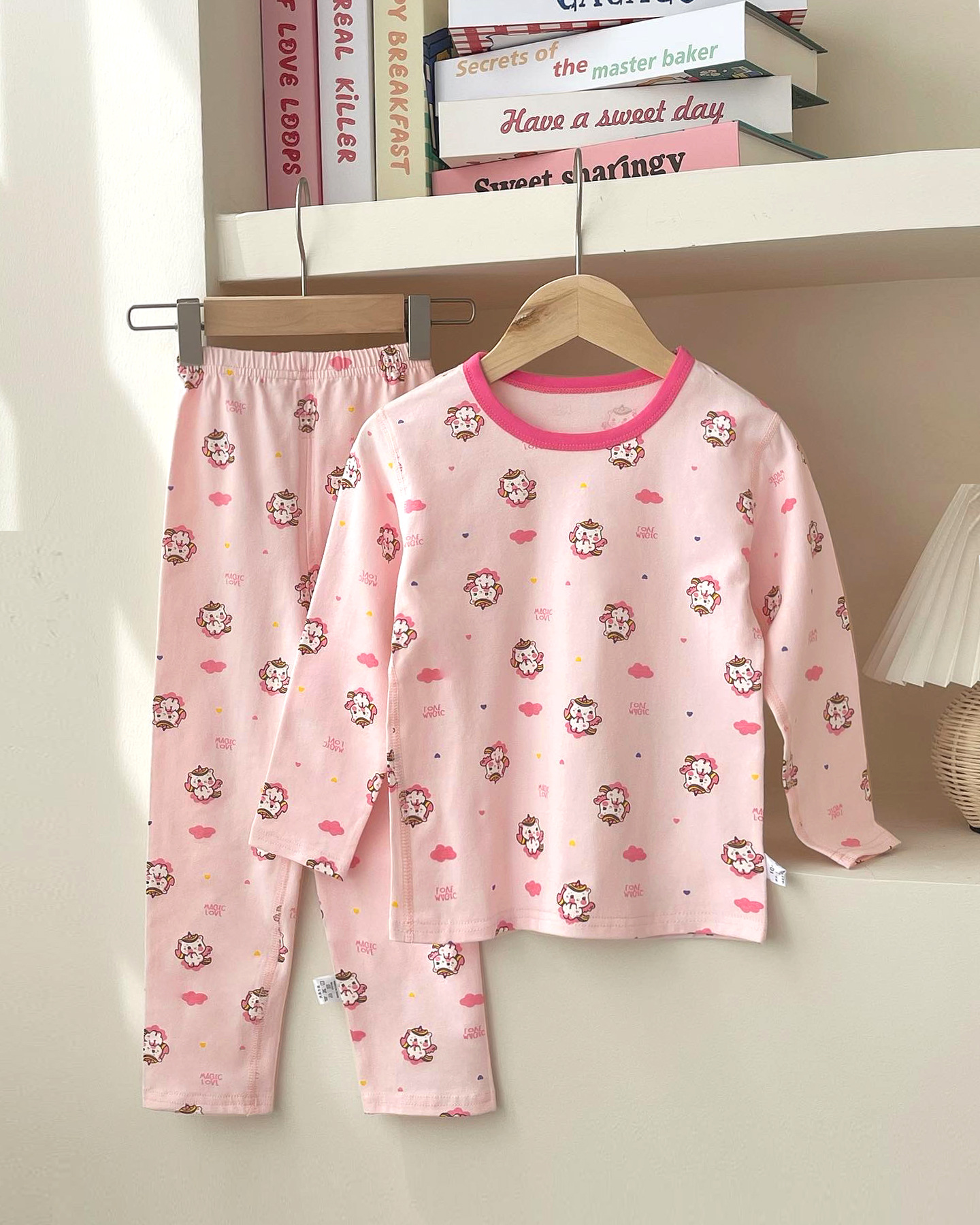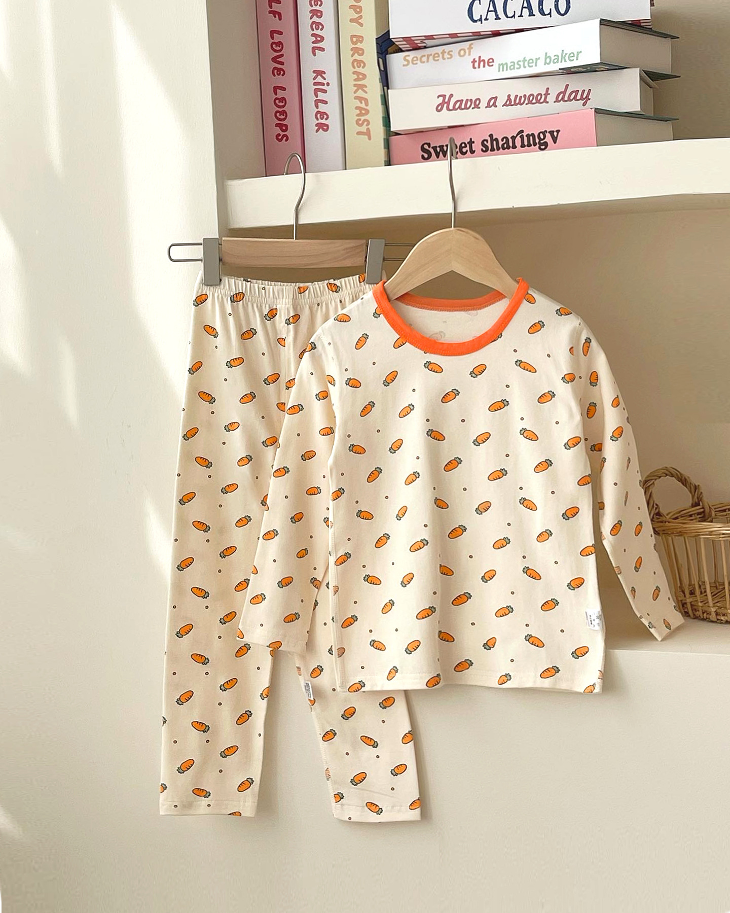 어린이 가을 옷과 바지 속옷 세트 뼈없는 샌딩 라이크라 크고 중간 크기의 아기 소년과 소녀 면 파자마 홈 옷스토어 가기