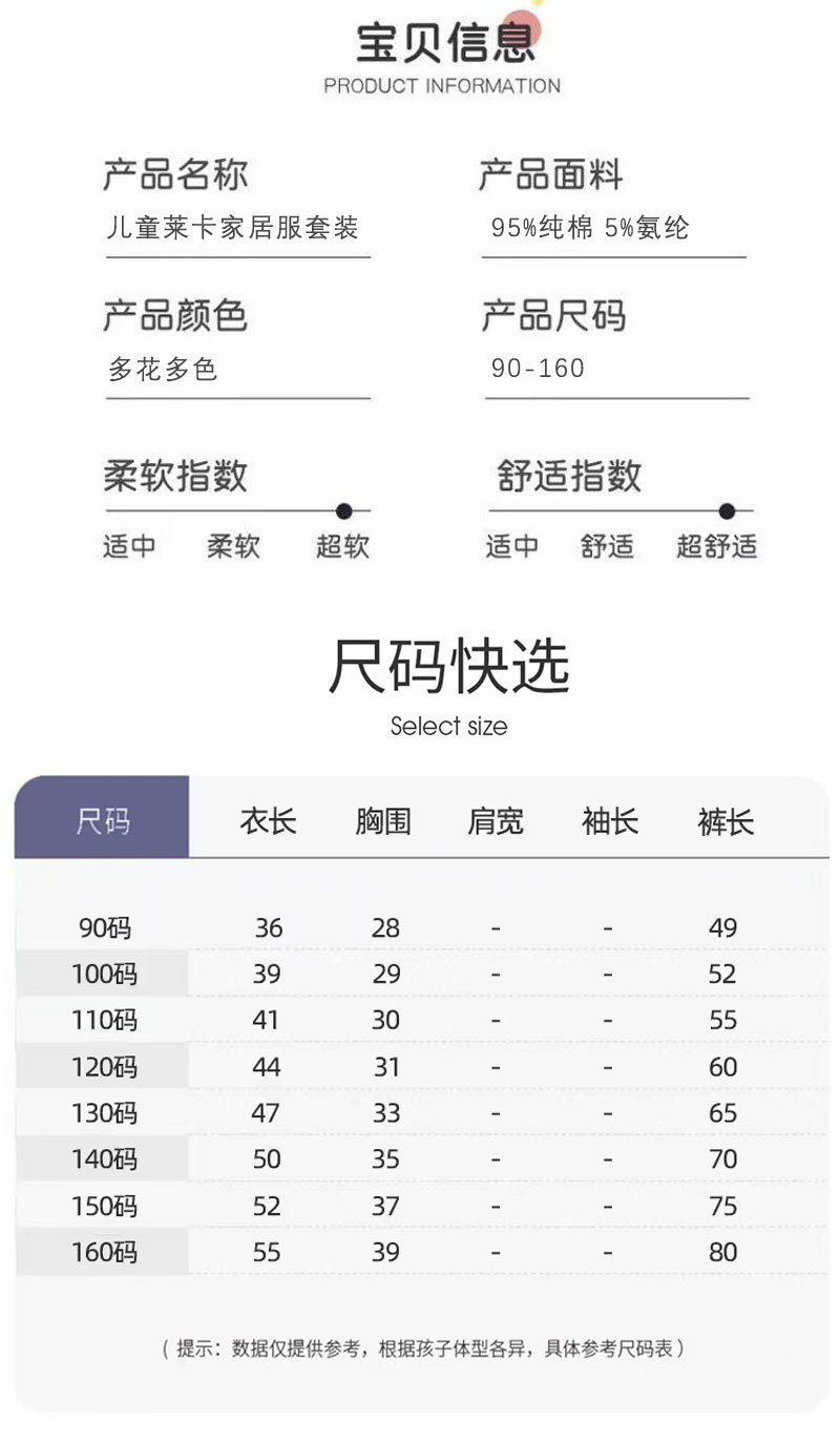 어린이 가을 옷과 바지 속옷 세트 뼈없는 샌딩 라이크라 크고 중간 크기의 아기 소년과 소녀 면 파자마 홈 옷