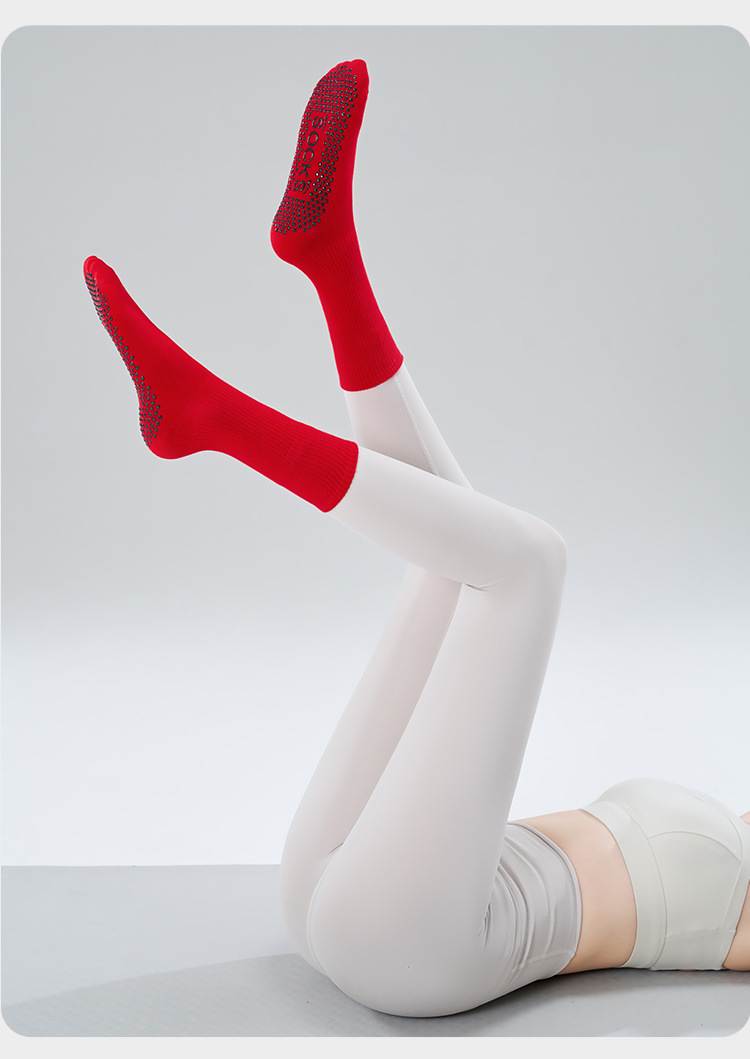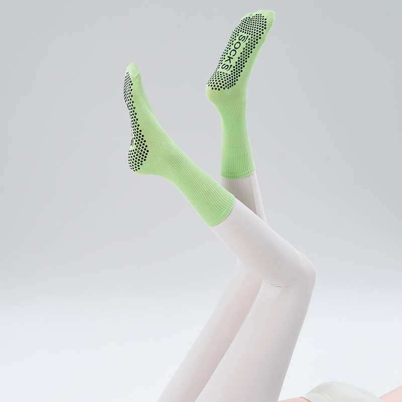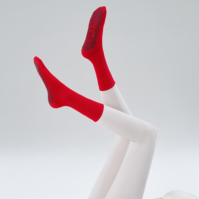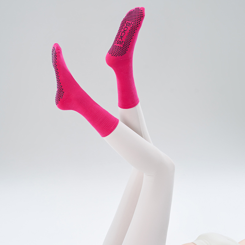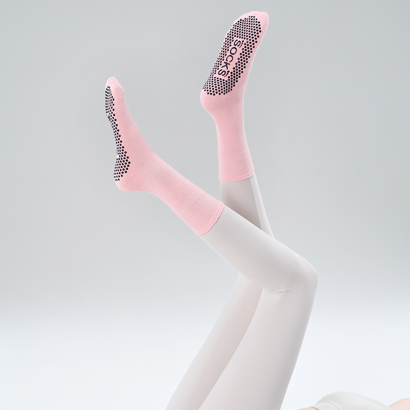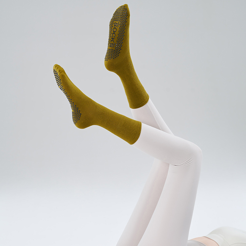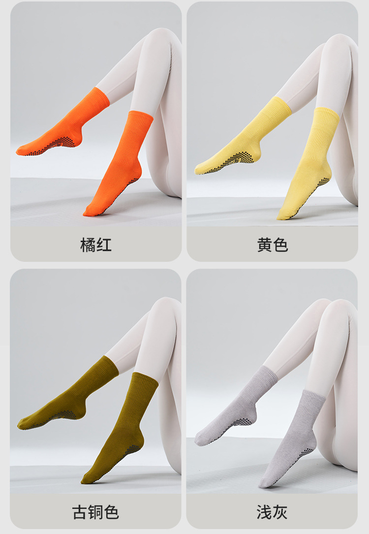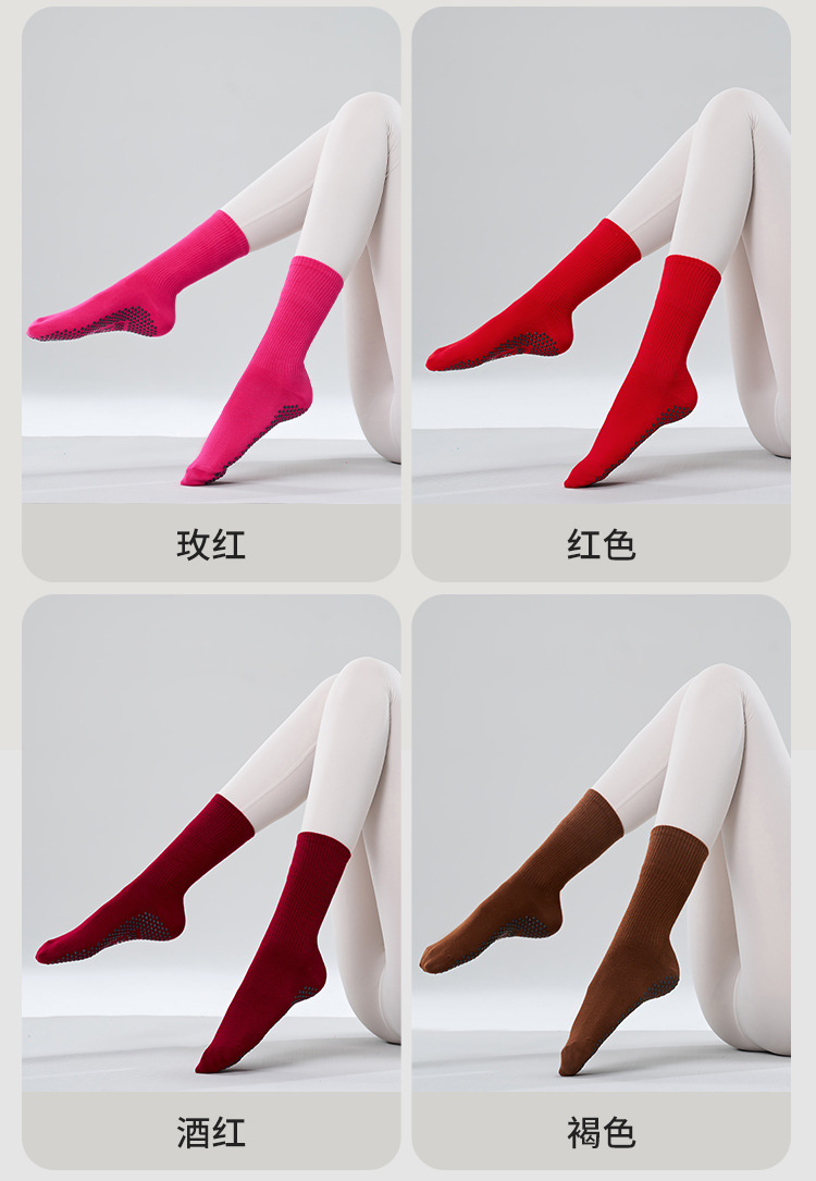 가을 겨울 신년 요가 및 필라테스용 특수 양말, 중간 길이 미끄럼 방지 점착 스포츠 피트니스 단색 양말, 해외 도매스토어 가기