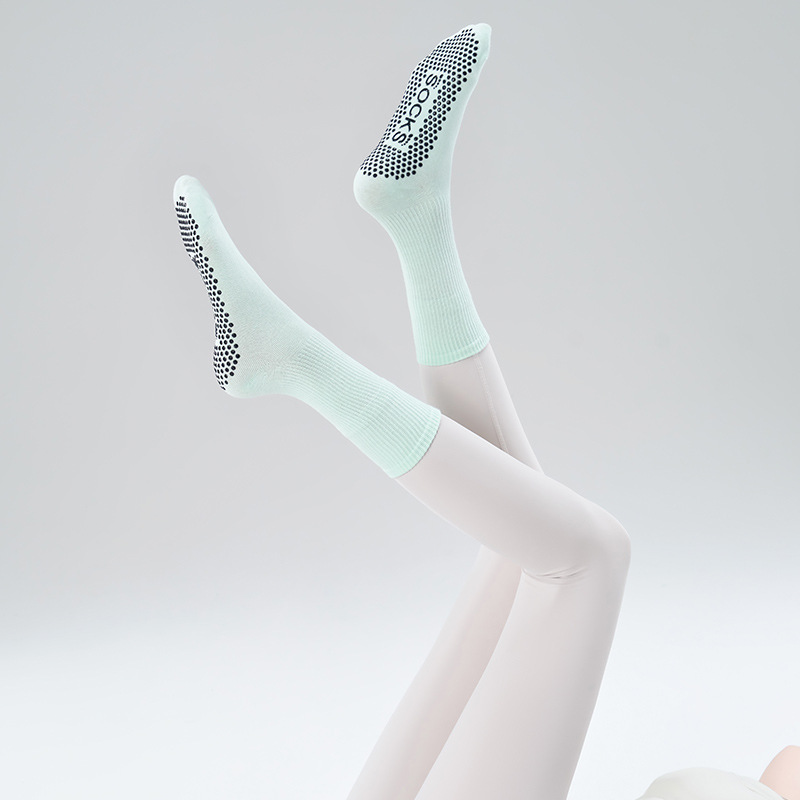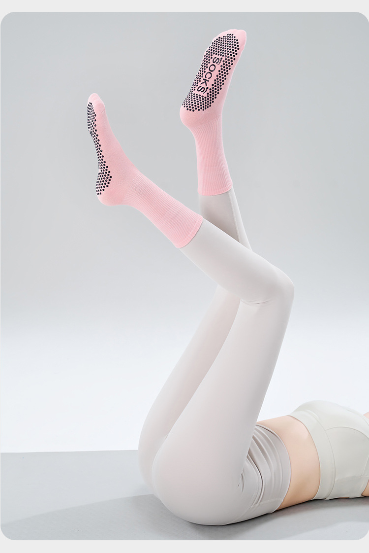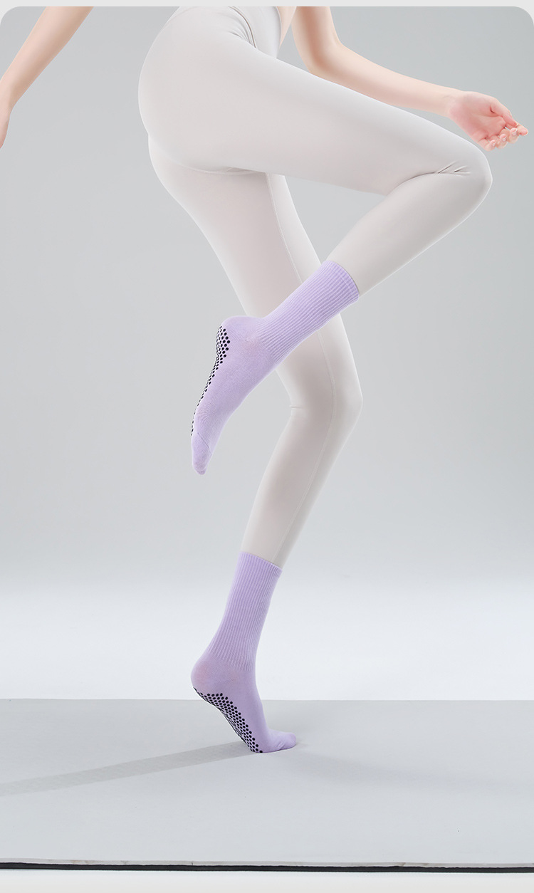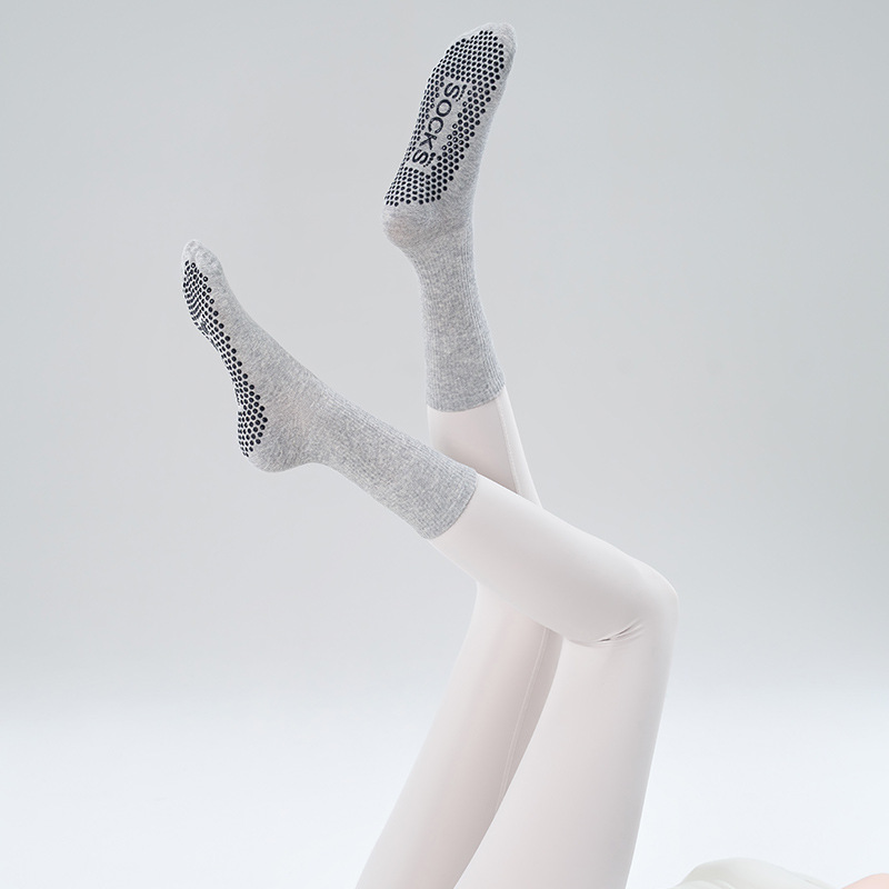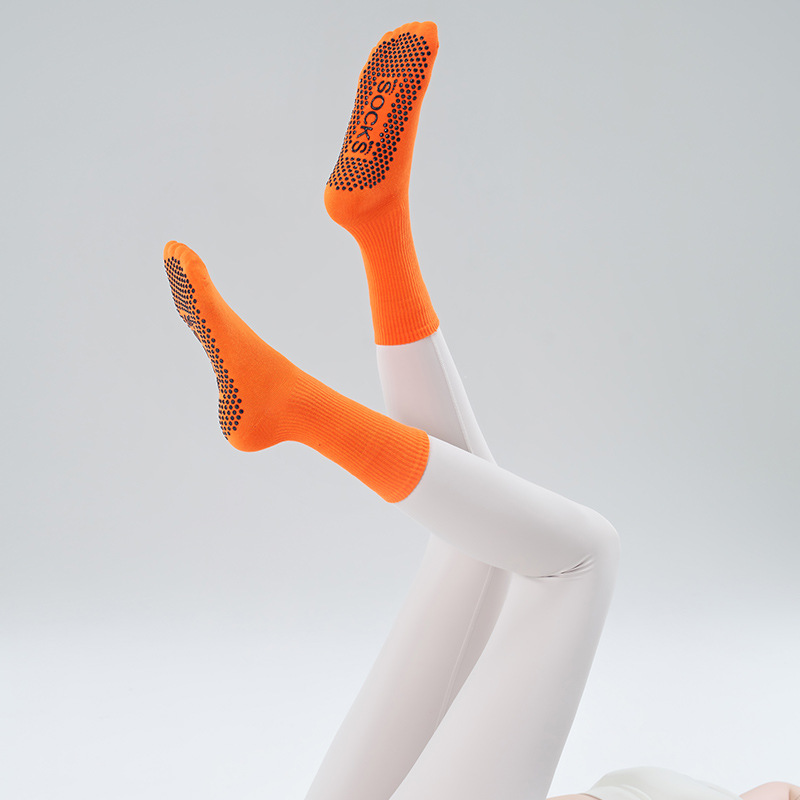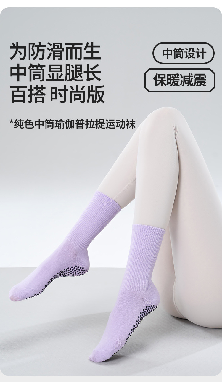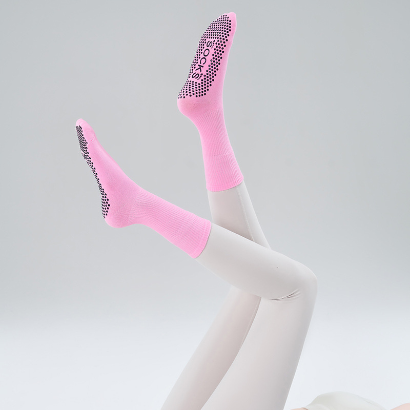 가을 겨울 신년 요가 및 필라테스용 특수 양말, 중간 길이 미끄럼 방지 점착 스포츠 피트니스 단색 양말, 해외 도매스토어 가기