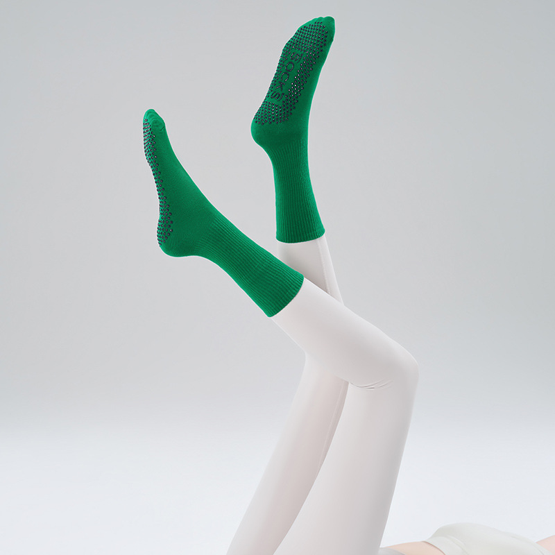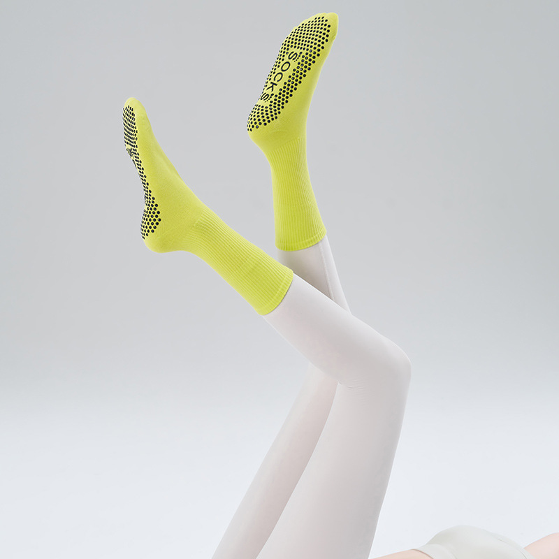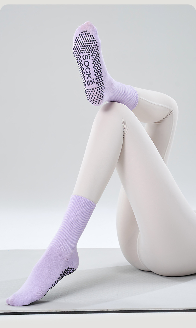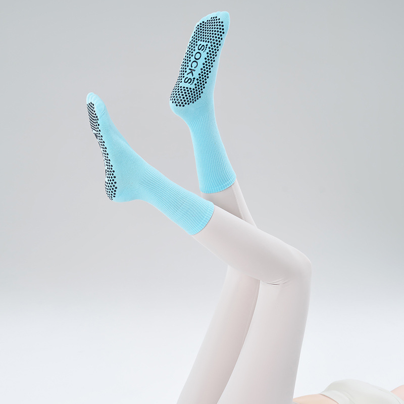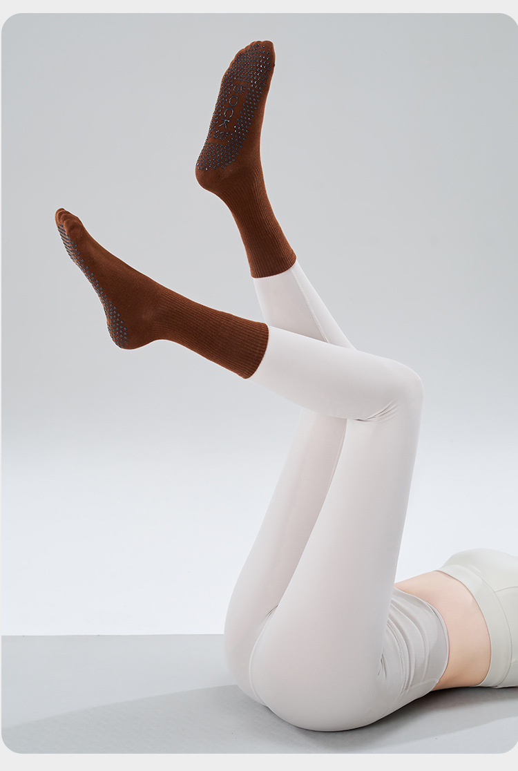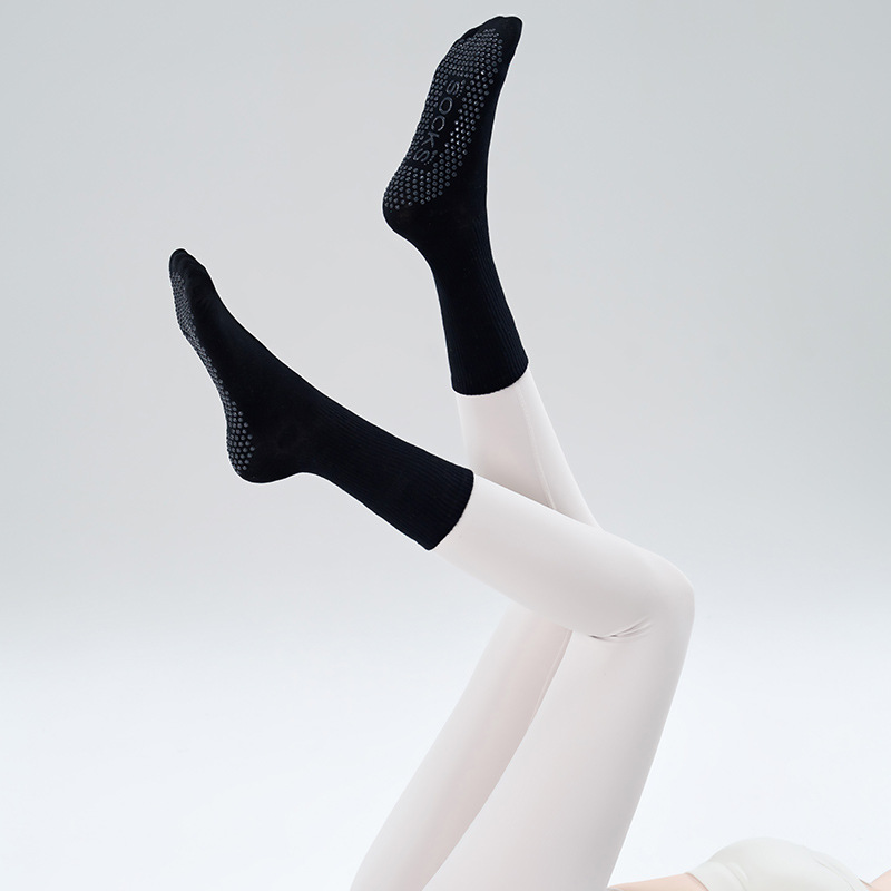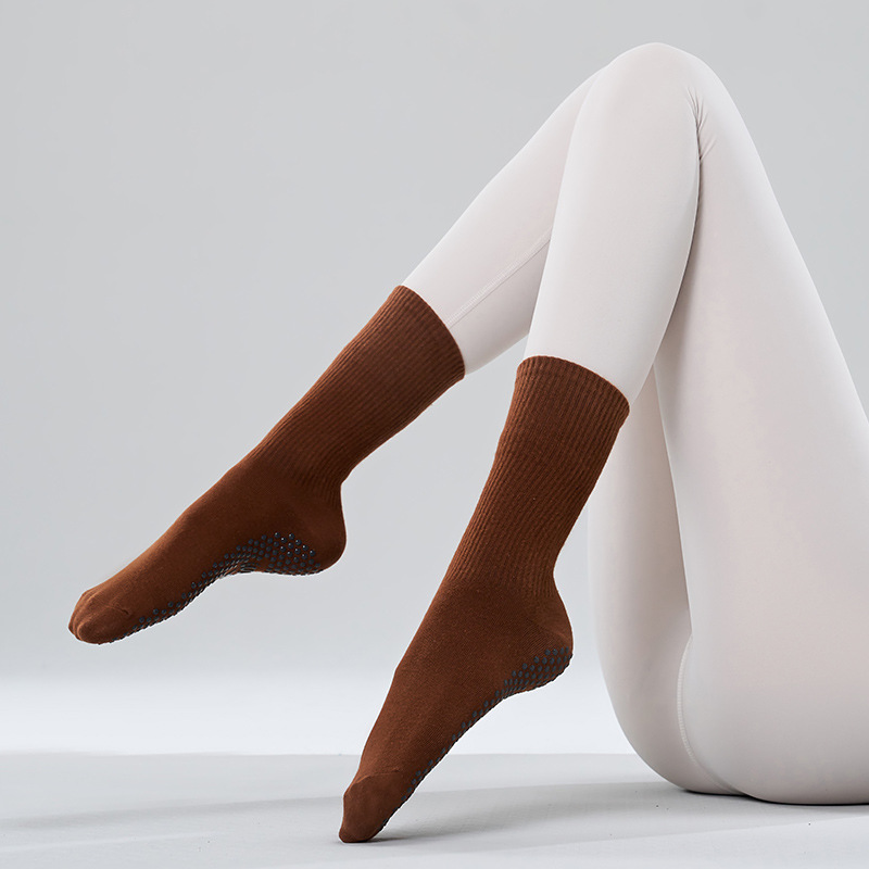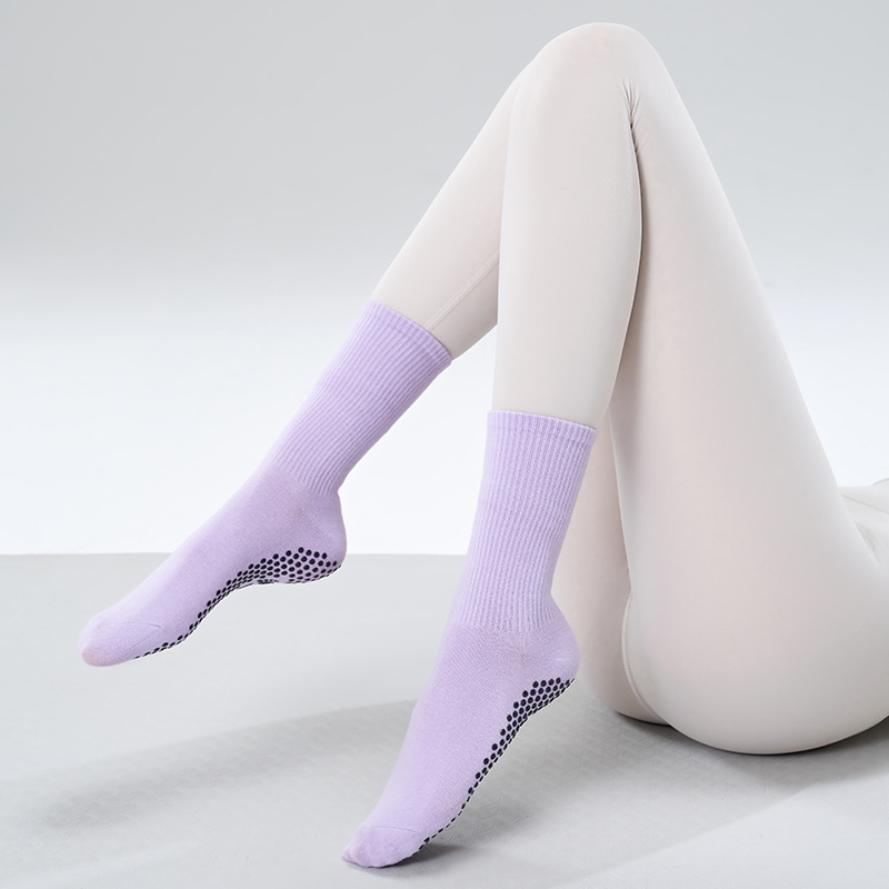 가을 겨울 신년 요가 및 필라테스용 특수 양말, 중간 길이 미끄럼 방지 점착 스포츠 피트니스 단색 양말, 해외 도매스토어 가기