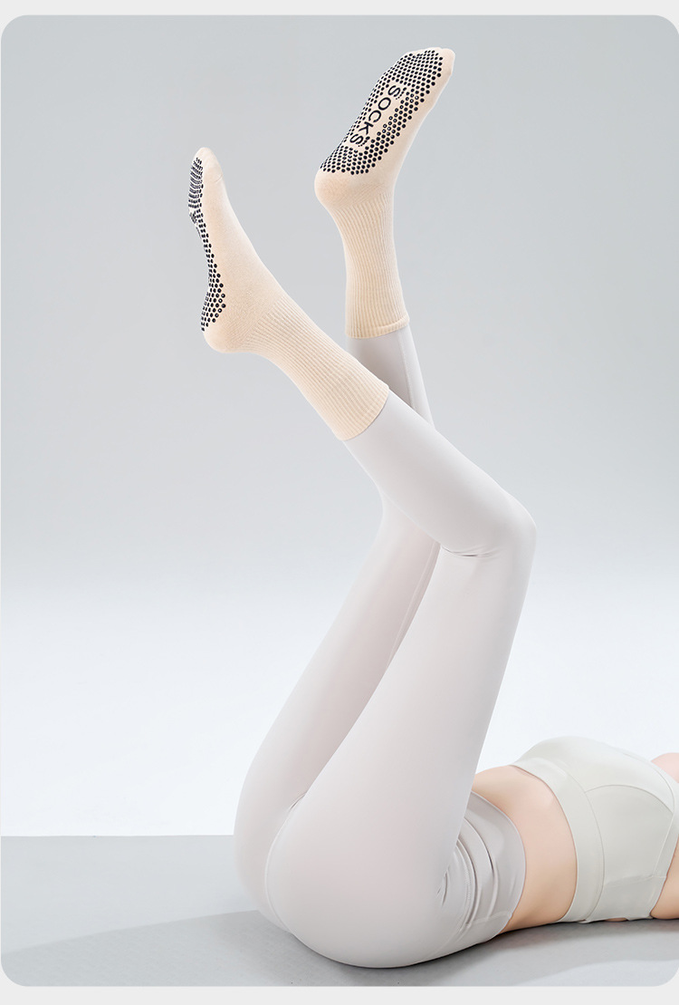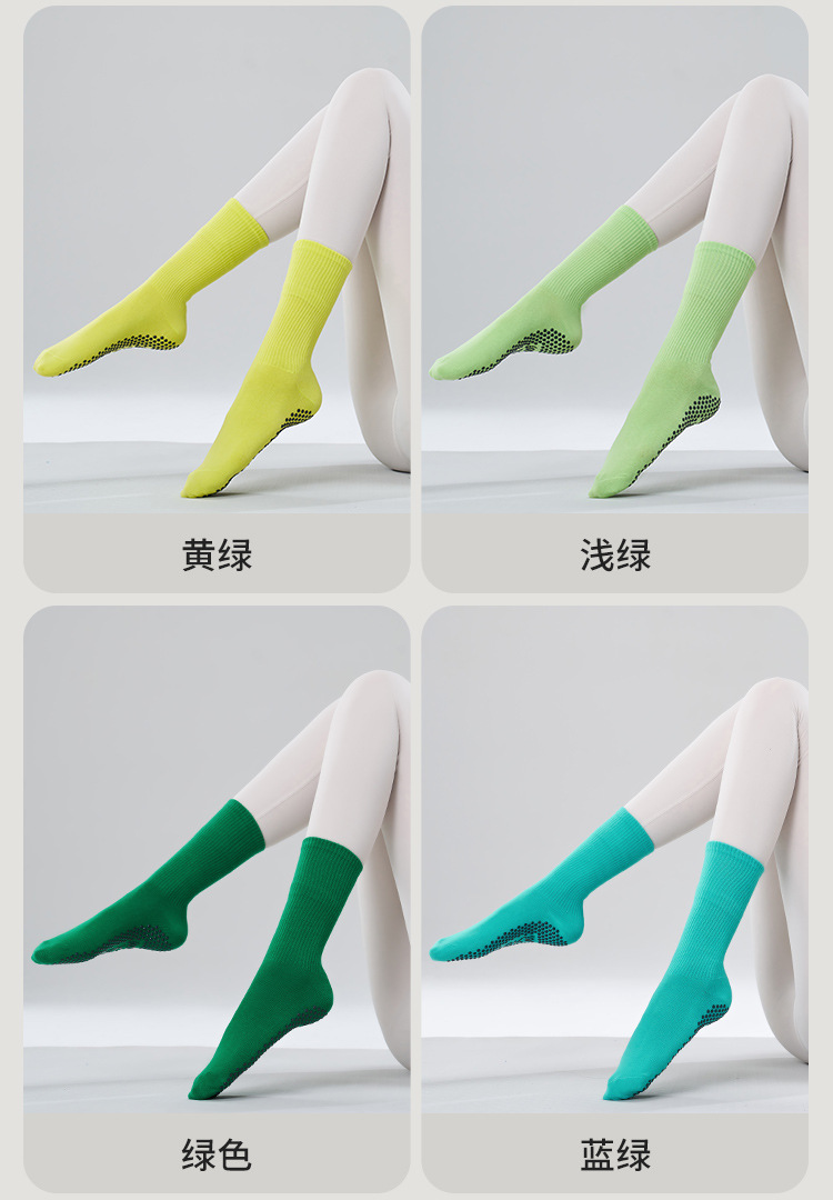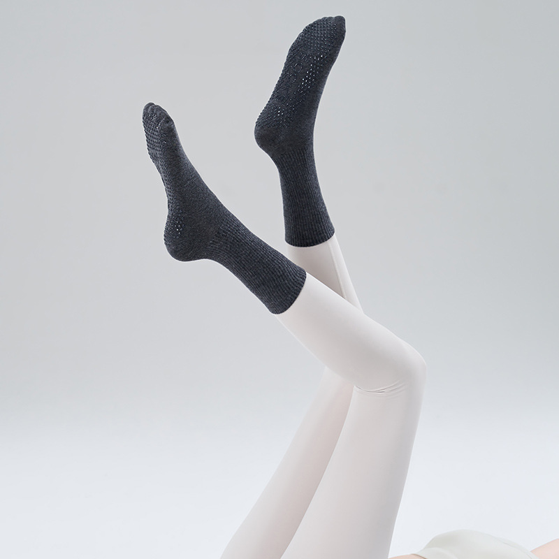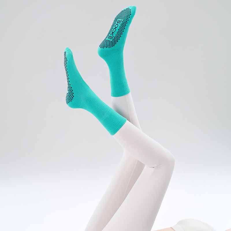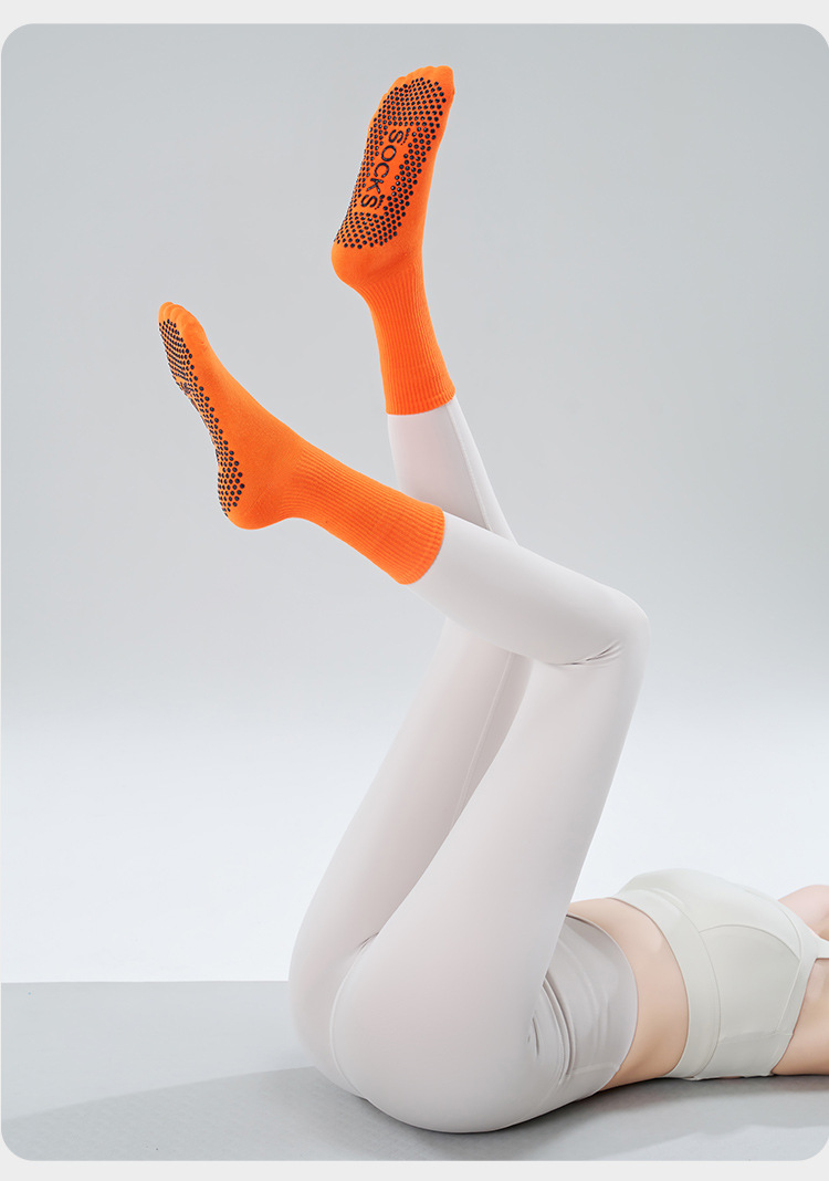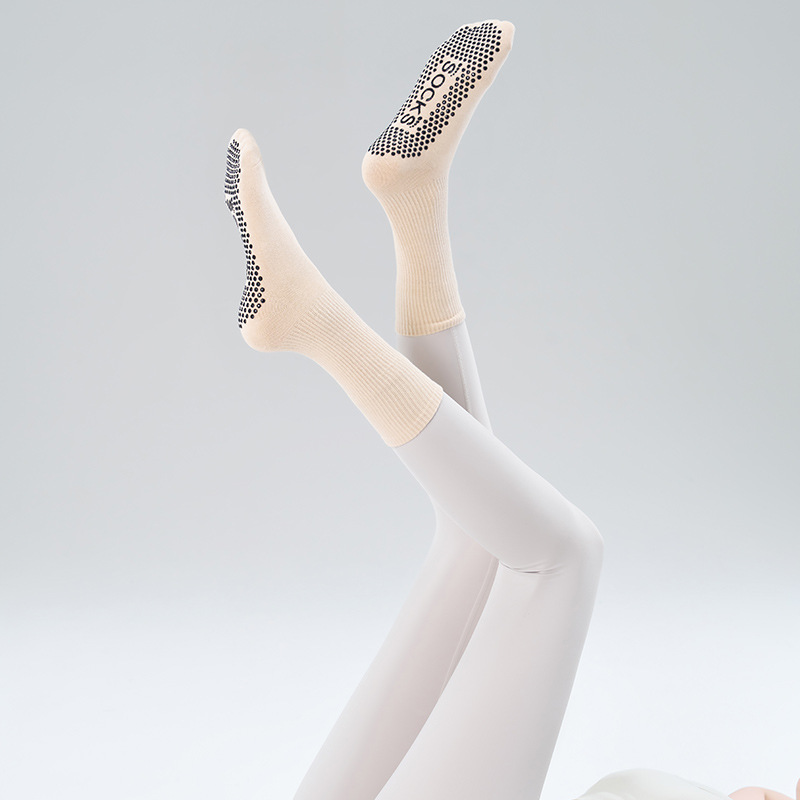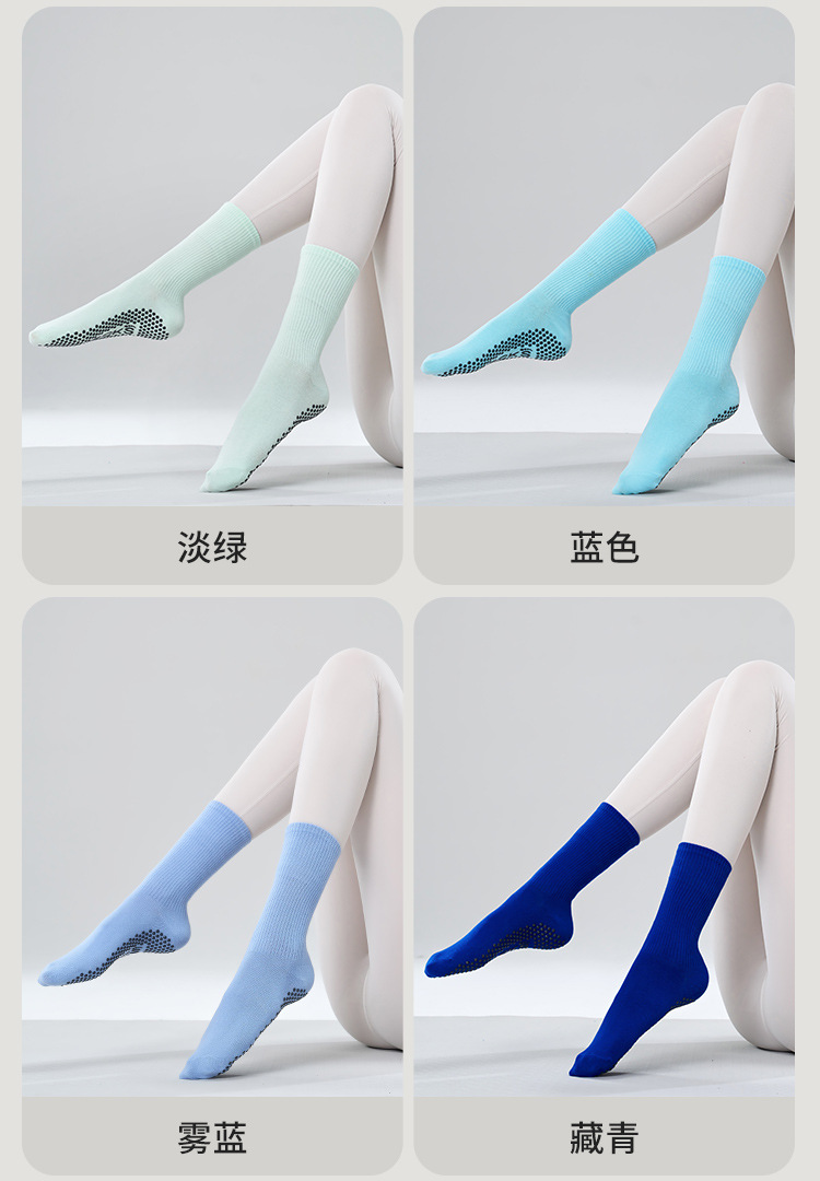 가을 겨울 신년 요가 및 필라테스용 특수 양말, 중간 길이 미끄럼 방지 점착 스포츠 피트니스 단색 양말, 해외 도매스토어 가기