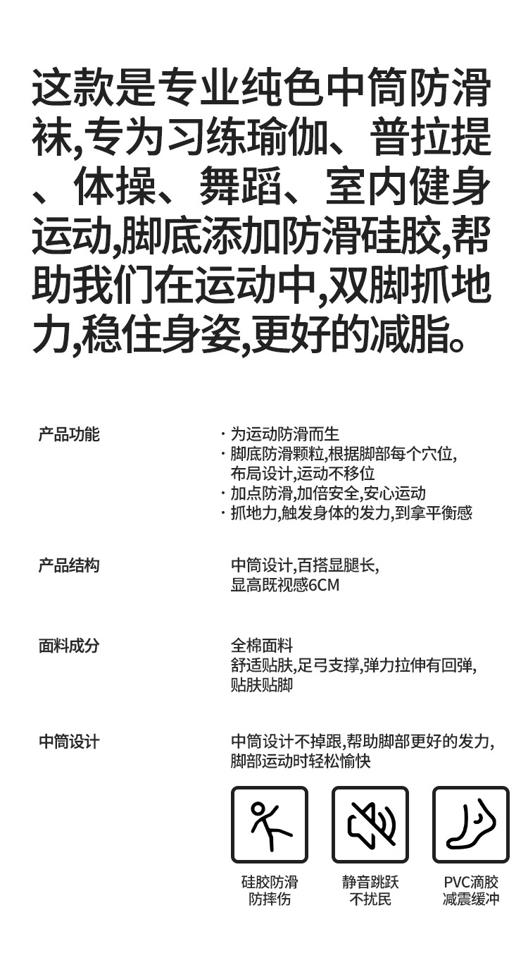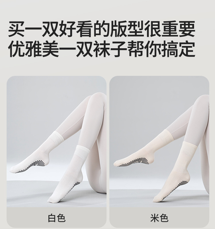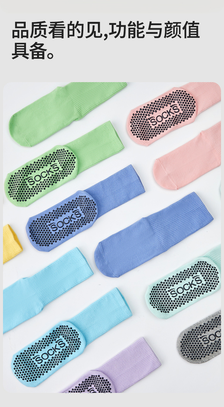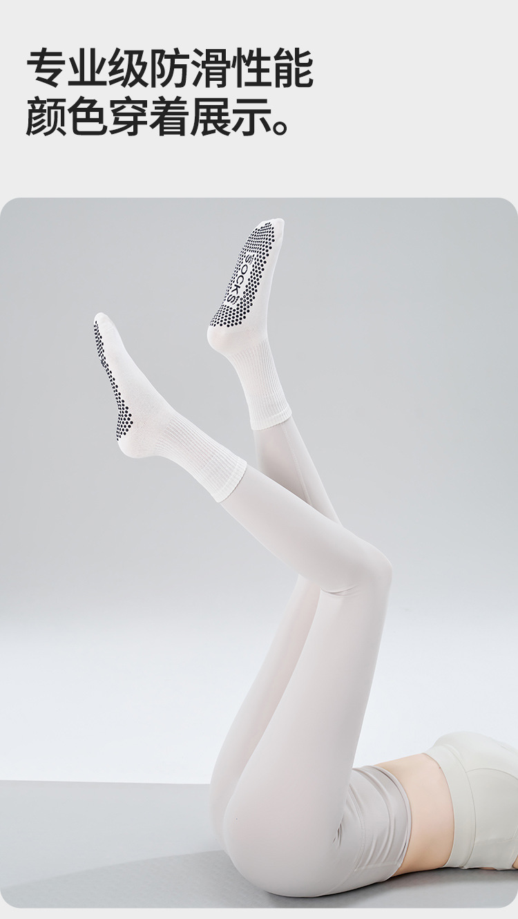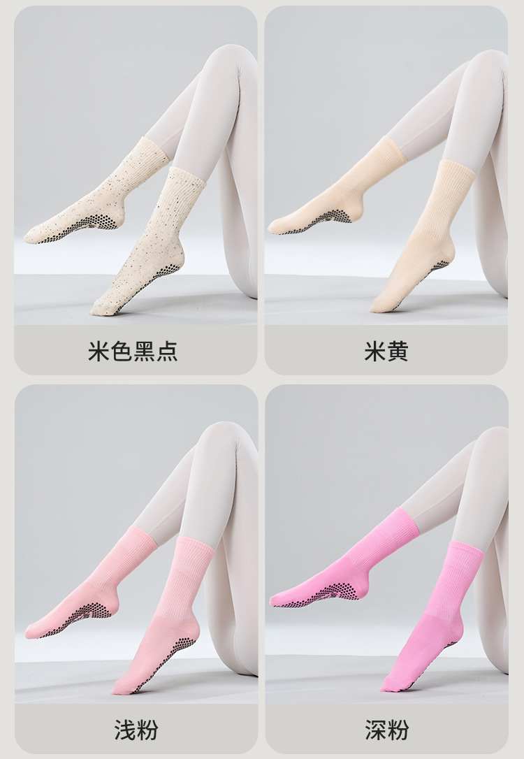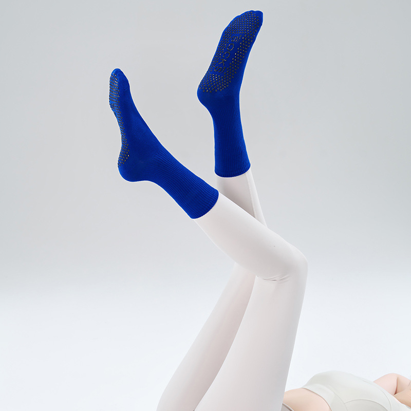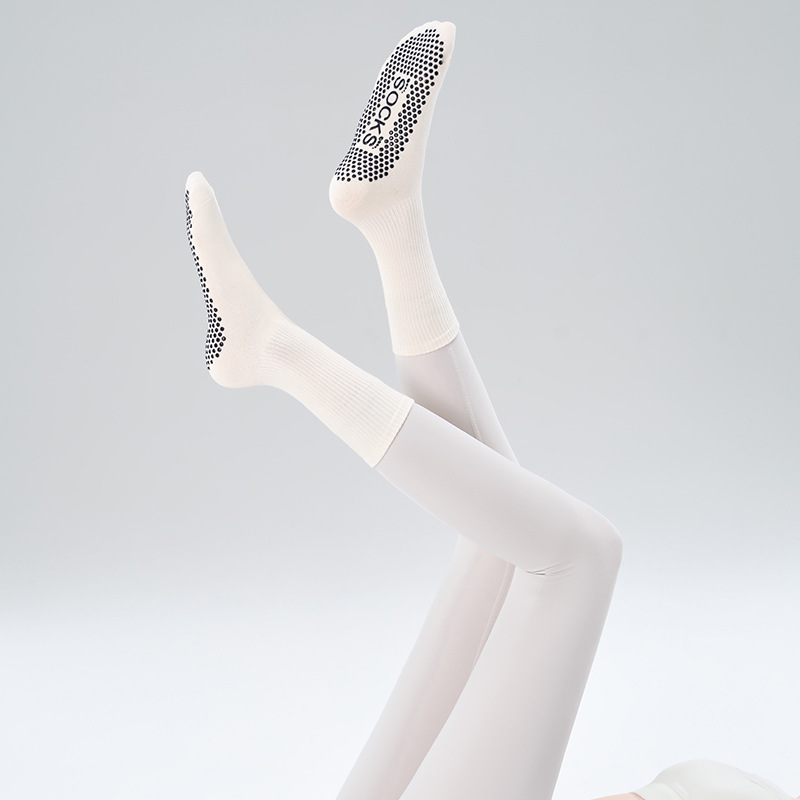 가을 겨울 신년 요가 및 필라테스용 특수 양말, 중간 길이 미끄럼 방지 점착 스포츠 피트니스 단색 양말, 해외 도매스토어 가기