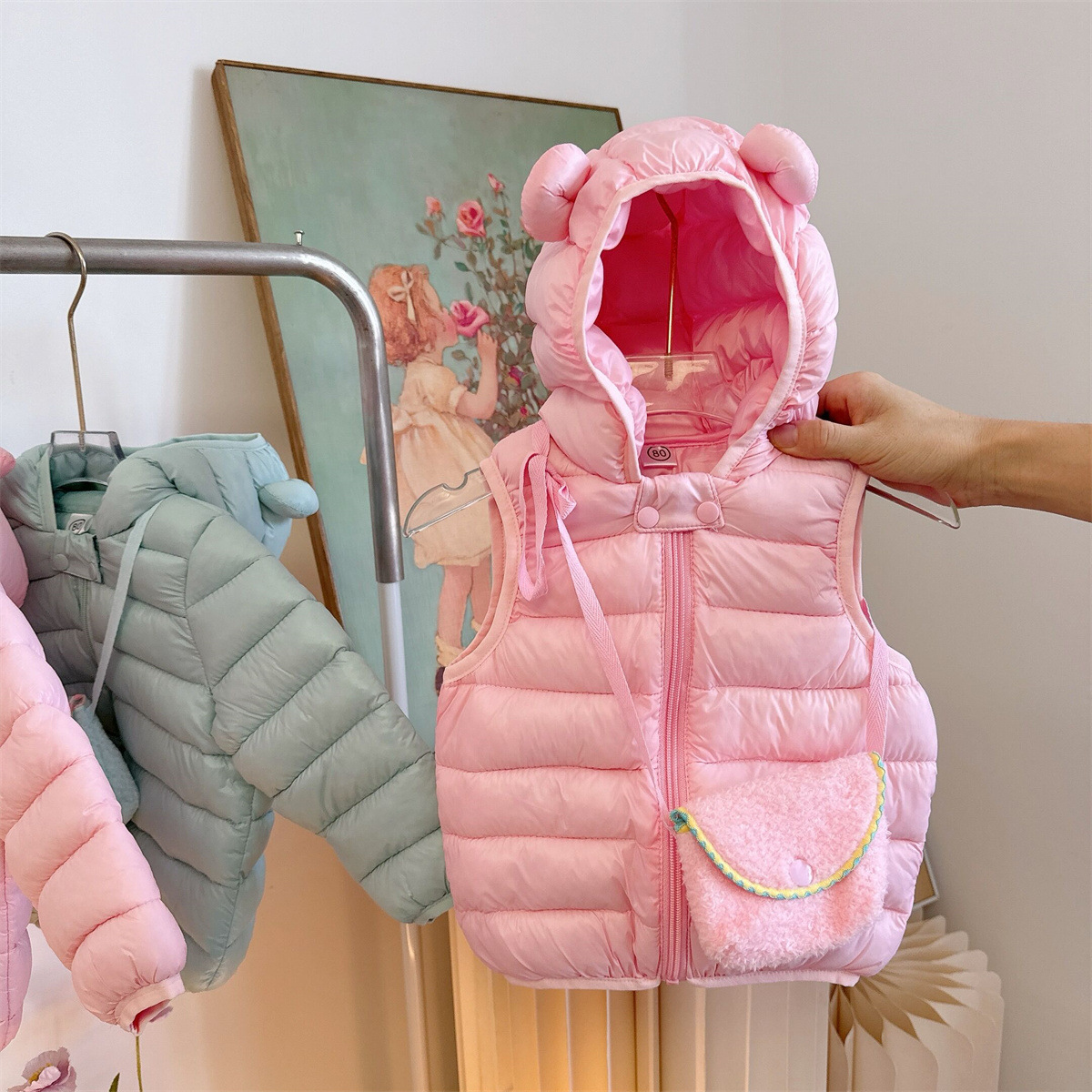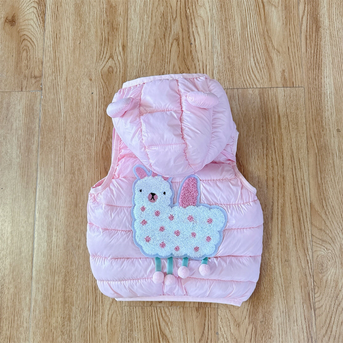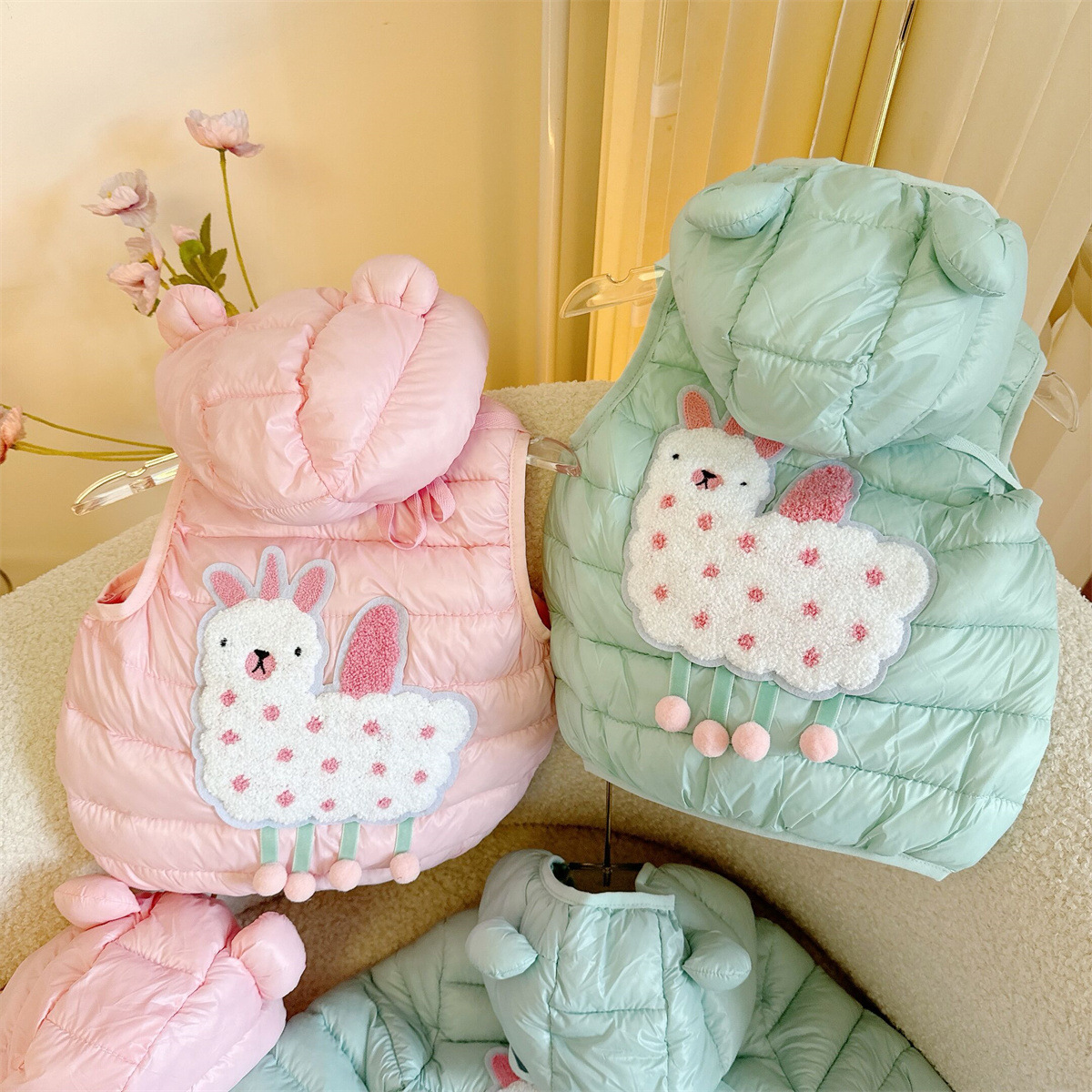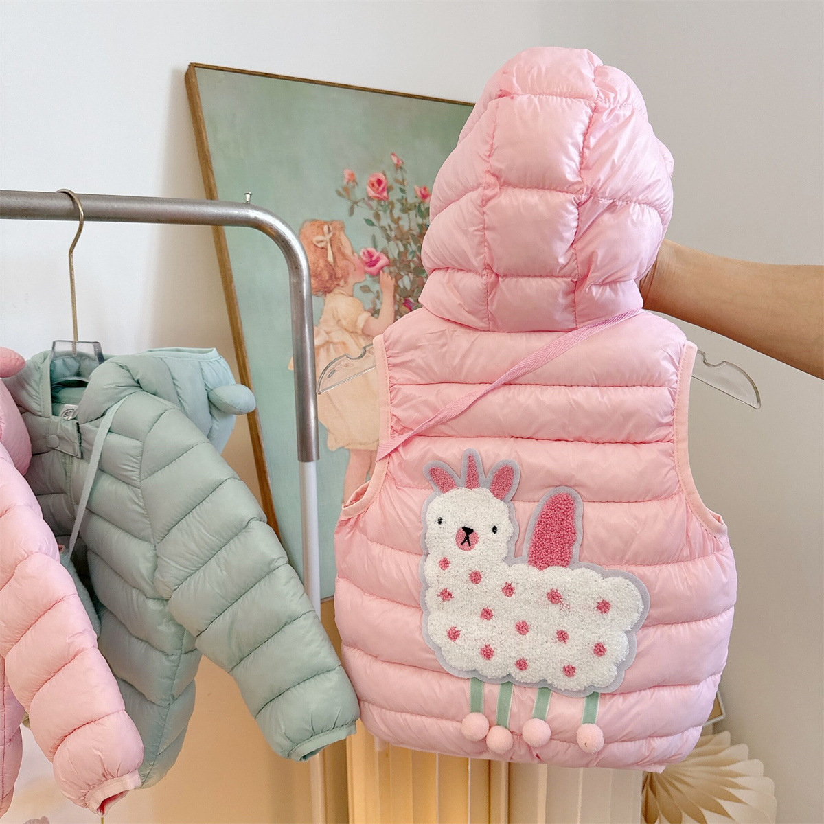 어린이 착용 24 겨울 새 아동복 어린이 다운 코튼 조끼 소녀 아기 귀여운 알파카 후드 조끼 배달 가방스토어 가기