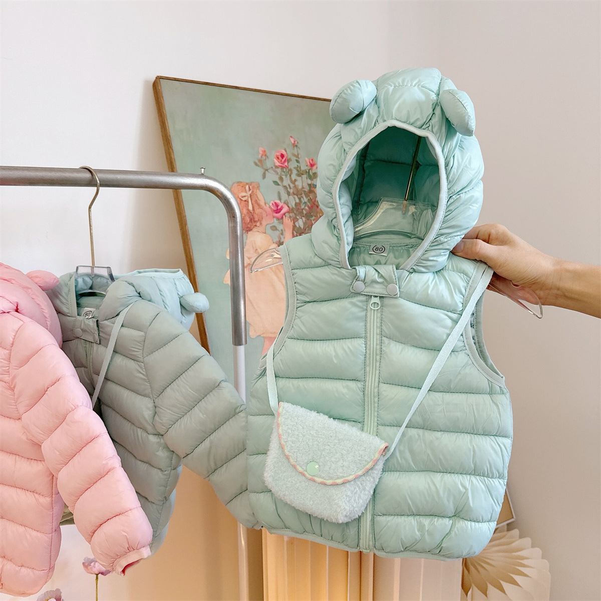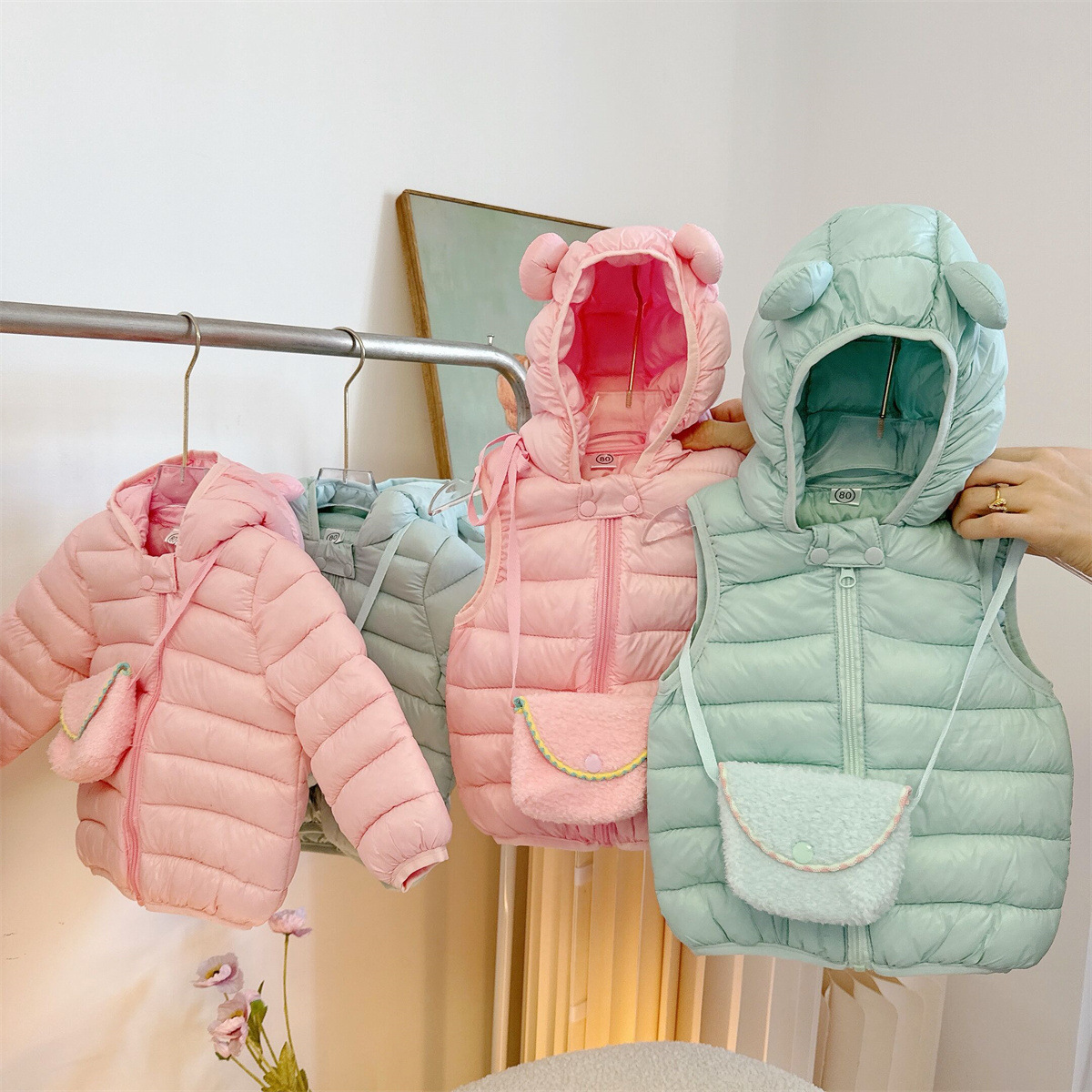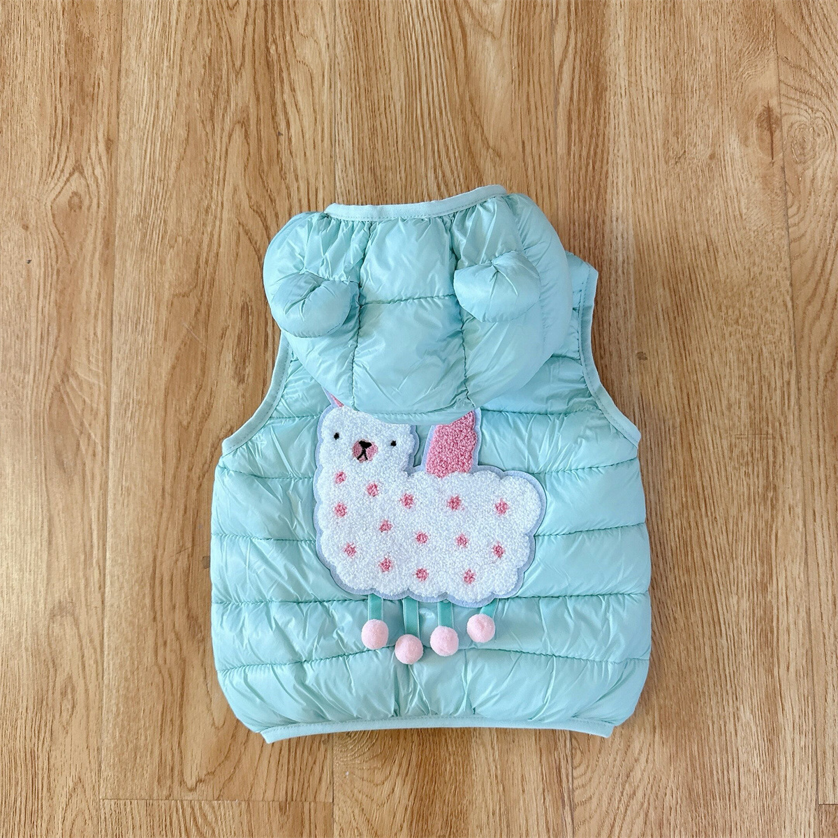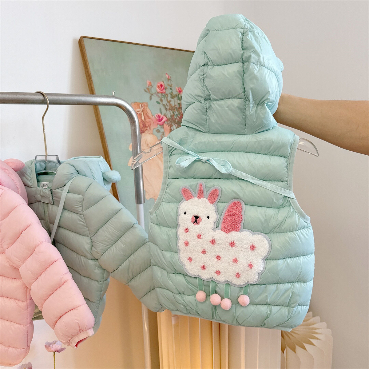 어린이 착용 24 겨울 새 아동복 어린이 다운 코튼 조끼 소녀 아기 귀여운 알파카 후드 조끼 배달 가방스토어 가기