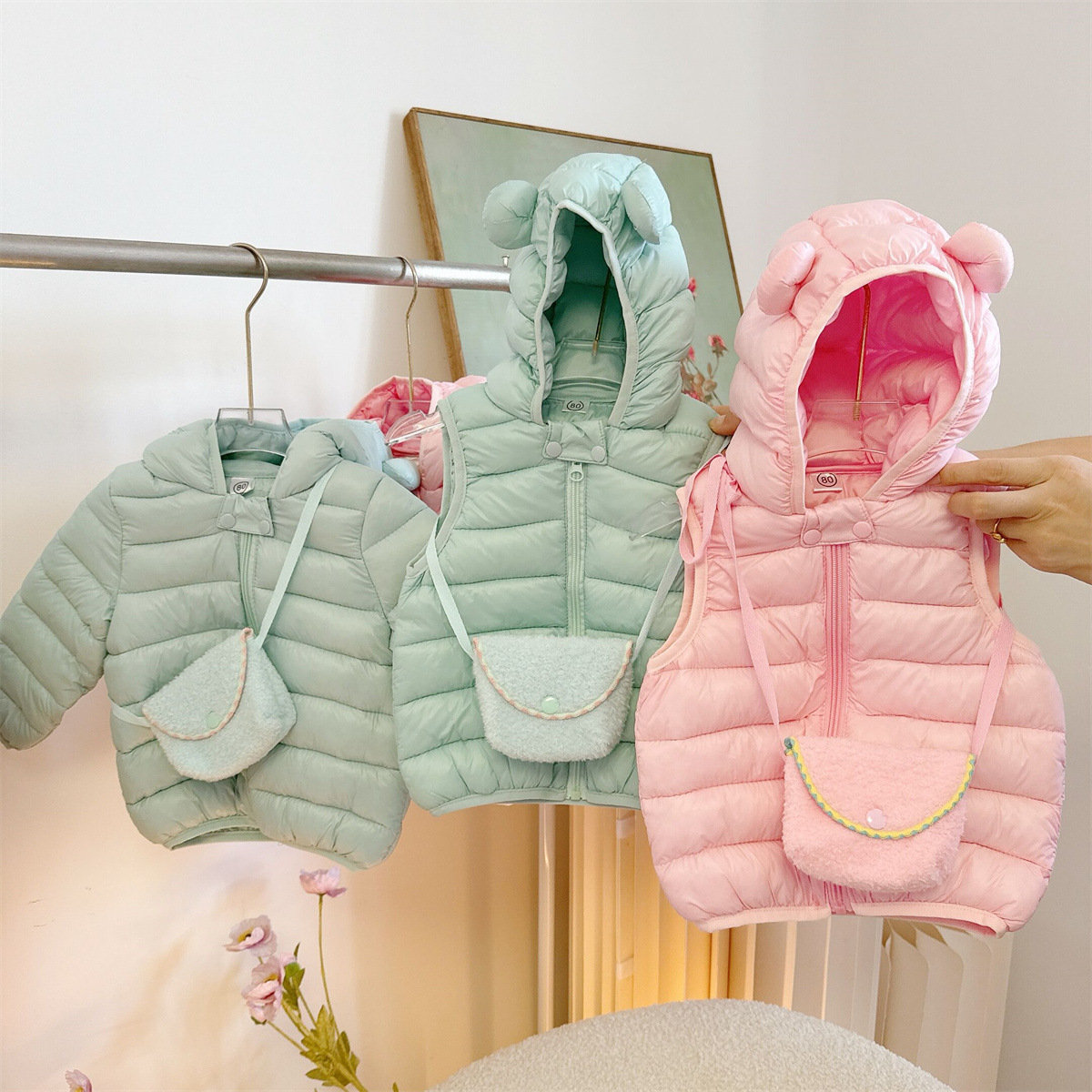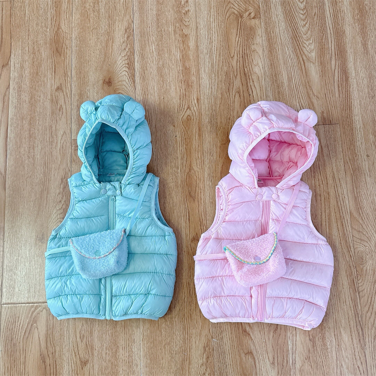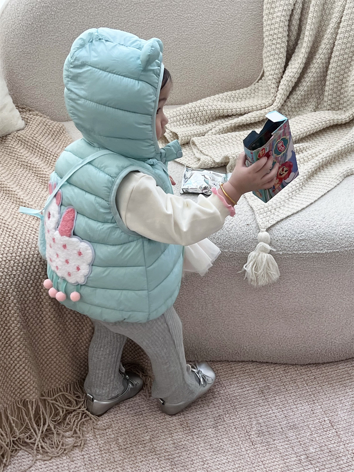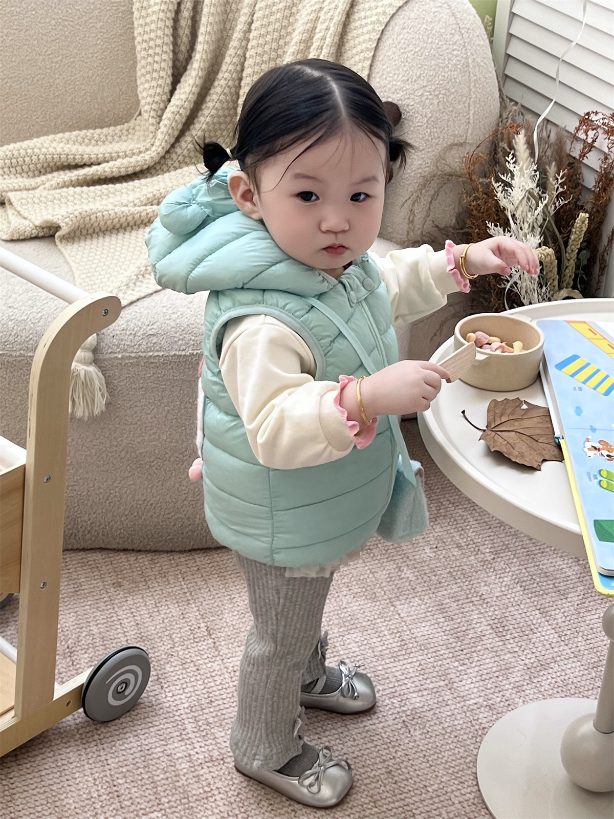 어린이 착용 24 겨울 새 아동복 어린이 다운 코튼 조끼 소녀 아기 귀여운 알파카 후드 조끼 배달 가방스토어 가기