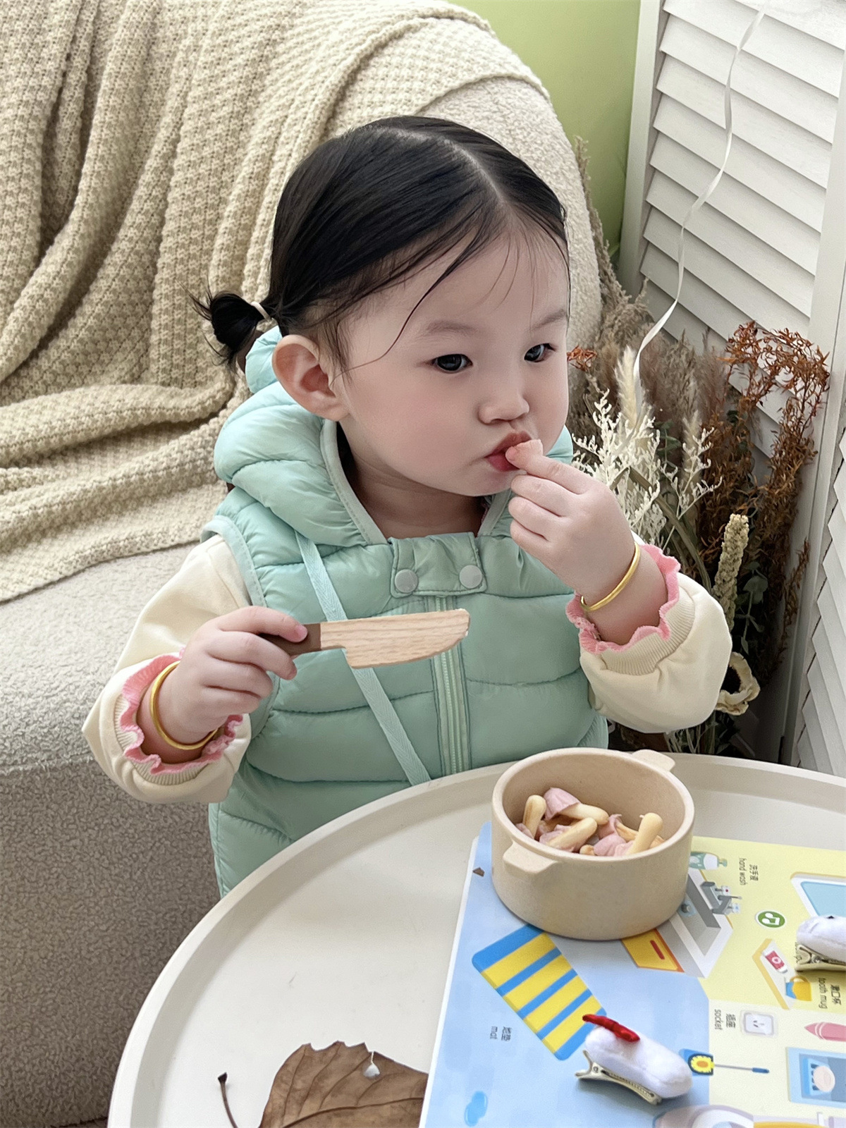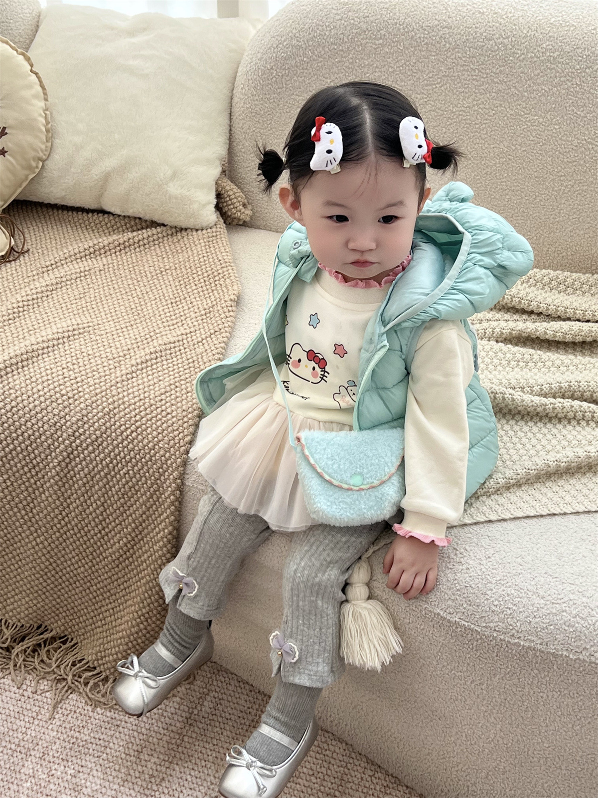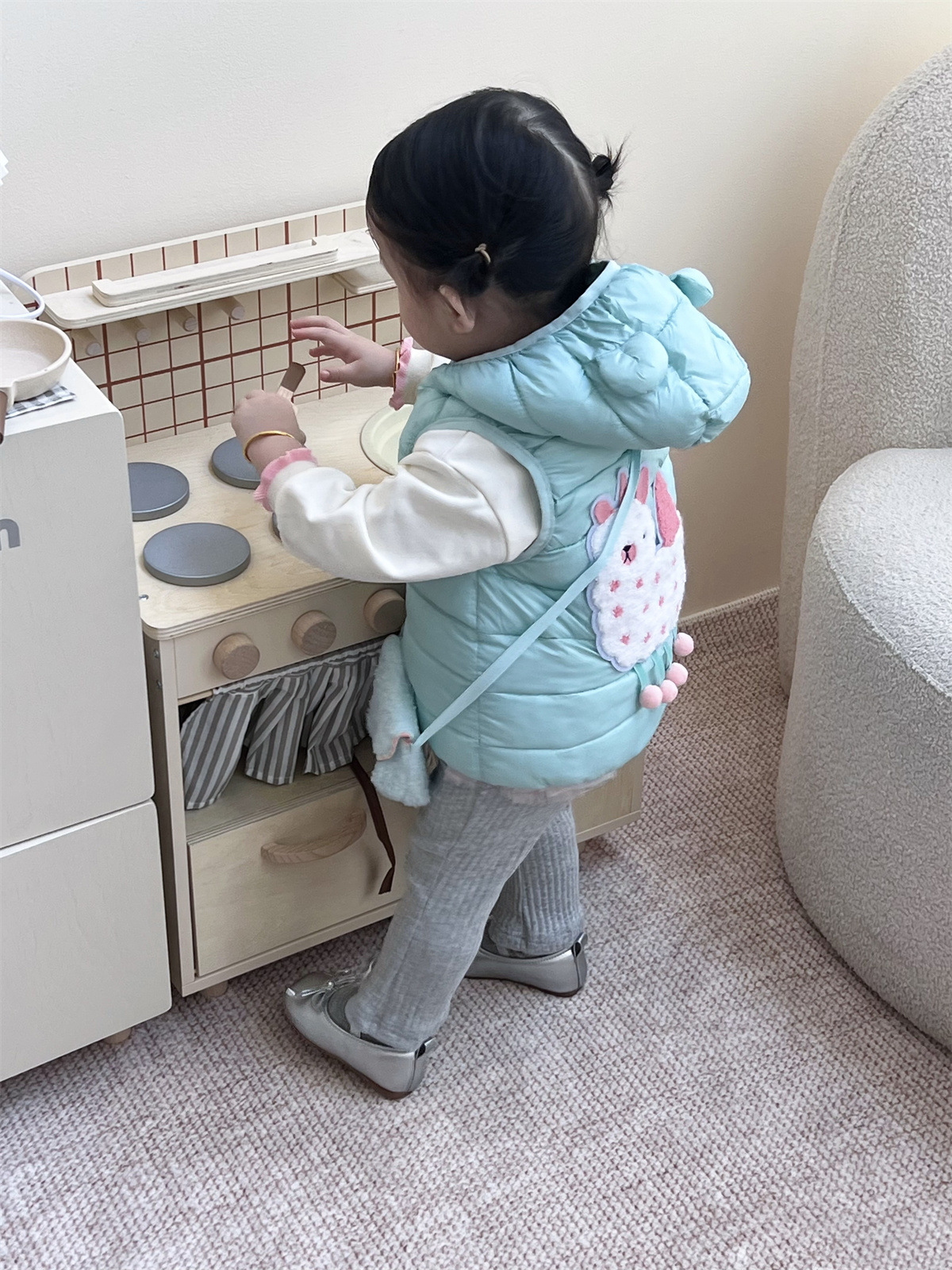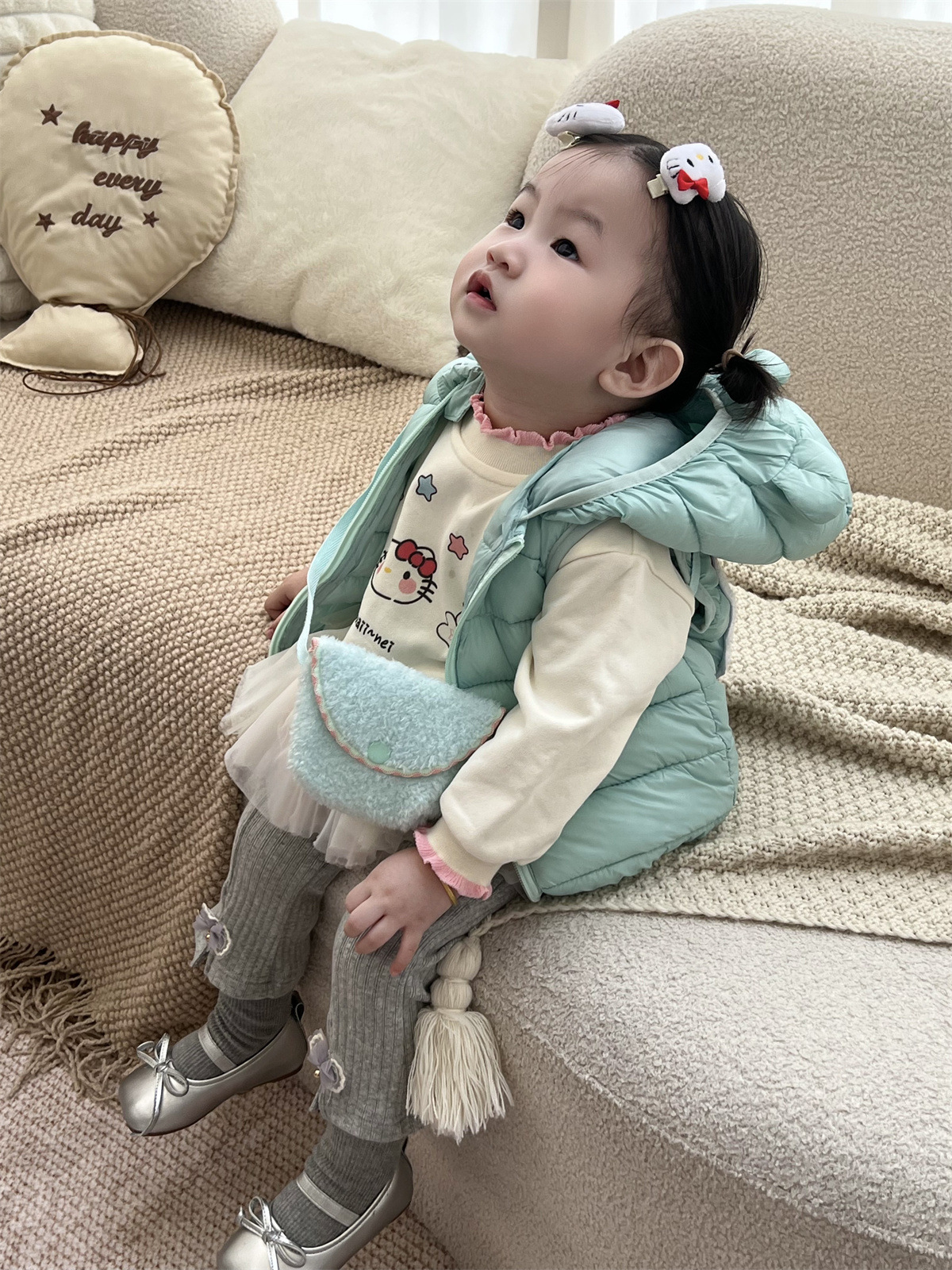 어린이 착용 24 겨울 새 아동복 어린이 다운 코튼 조끼 소녀 아기 귀여운 알파카 후드 조끼 배달 가방스토어 가기