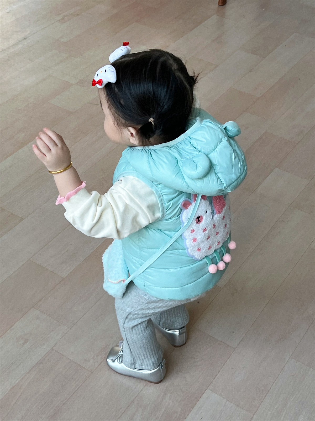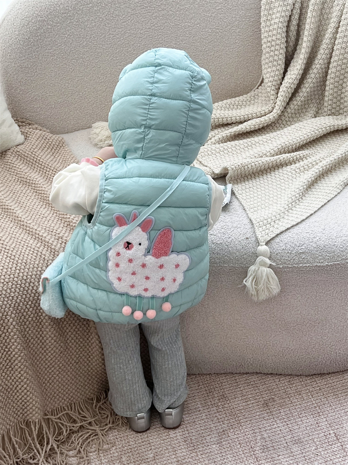 어린이 착용 24 겨울 새 아동복 어린이 다운 코튼 조끼 소녀 아기 귀여운 알파카 후드 조끼 배달 가방