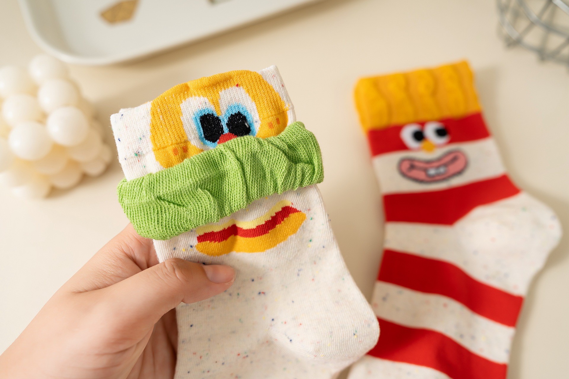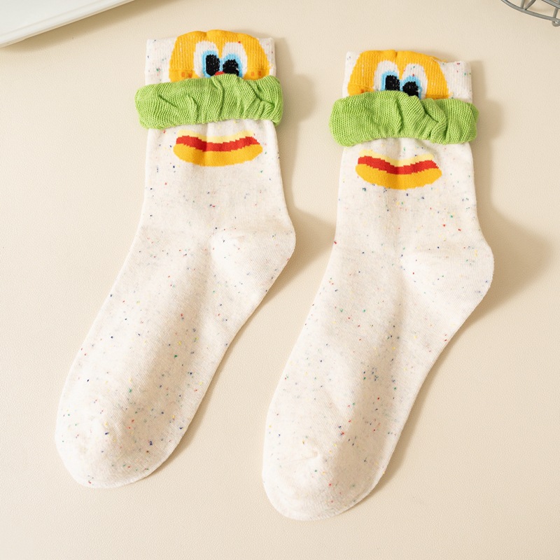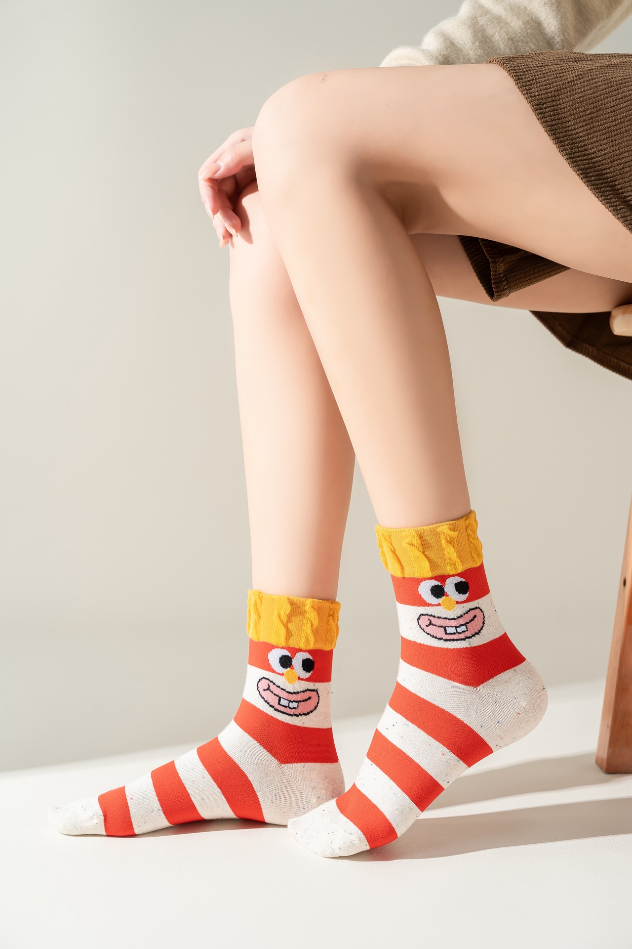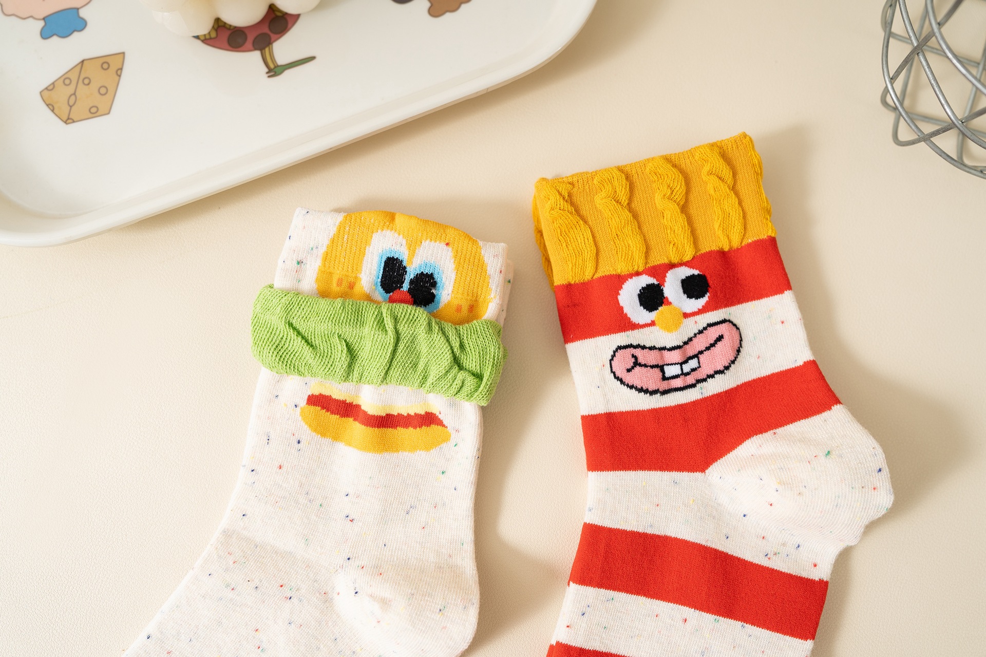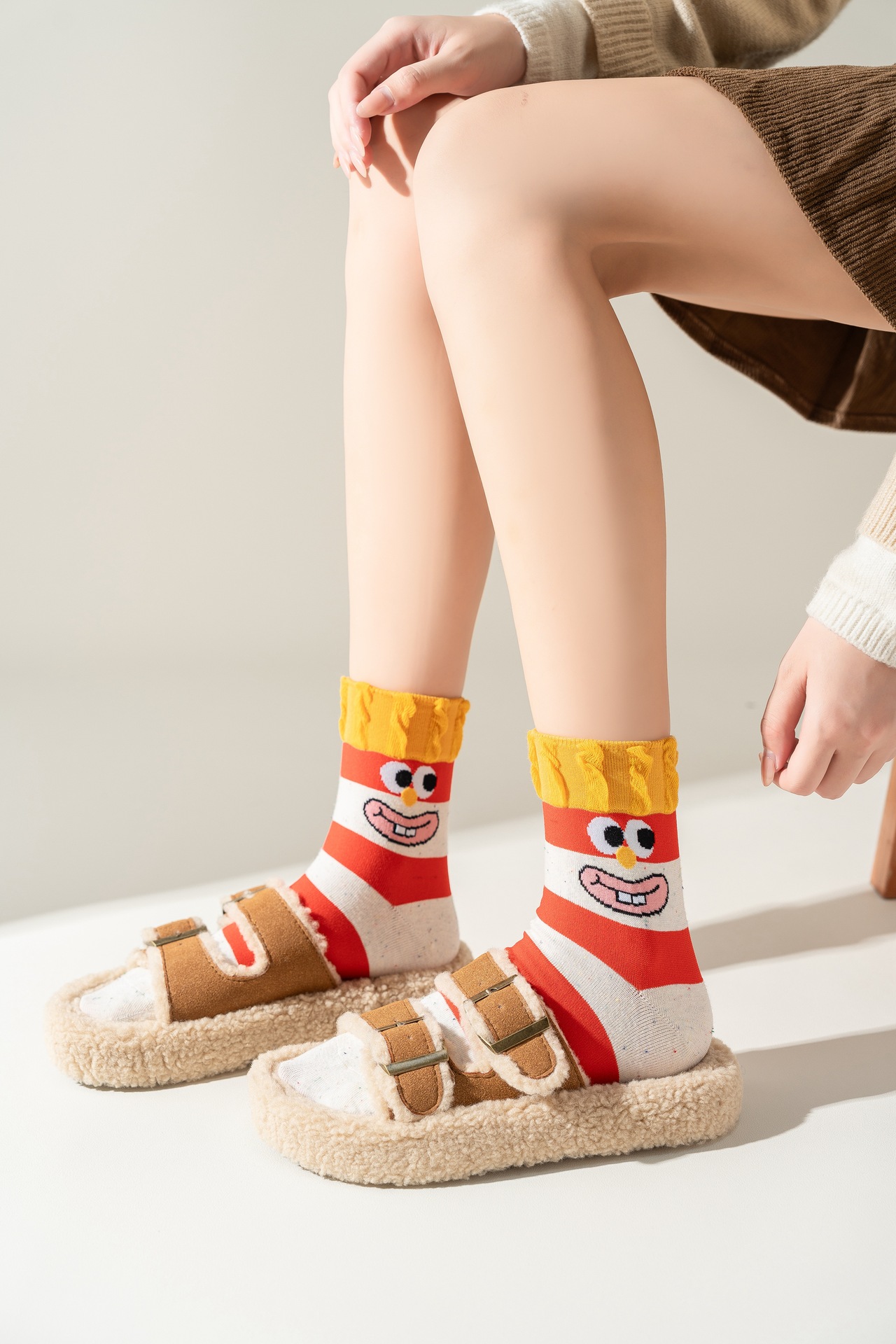 프랑스 프라이 양말 여성의 봄과 가을 귀여운 만화 코튼 중간 길이의 양말 재미 유행 디자인 센스 니쉬 스타킹